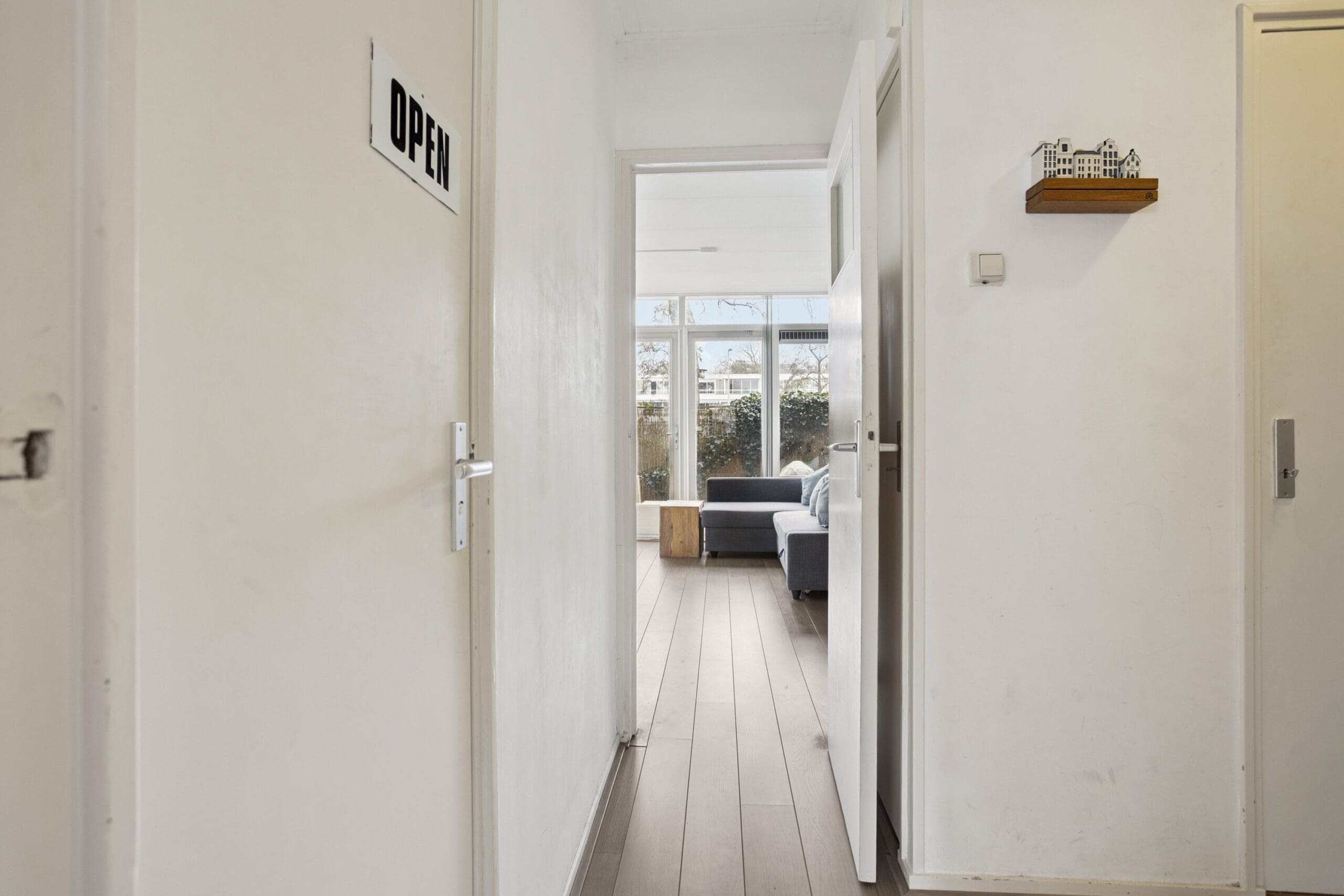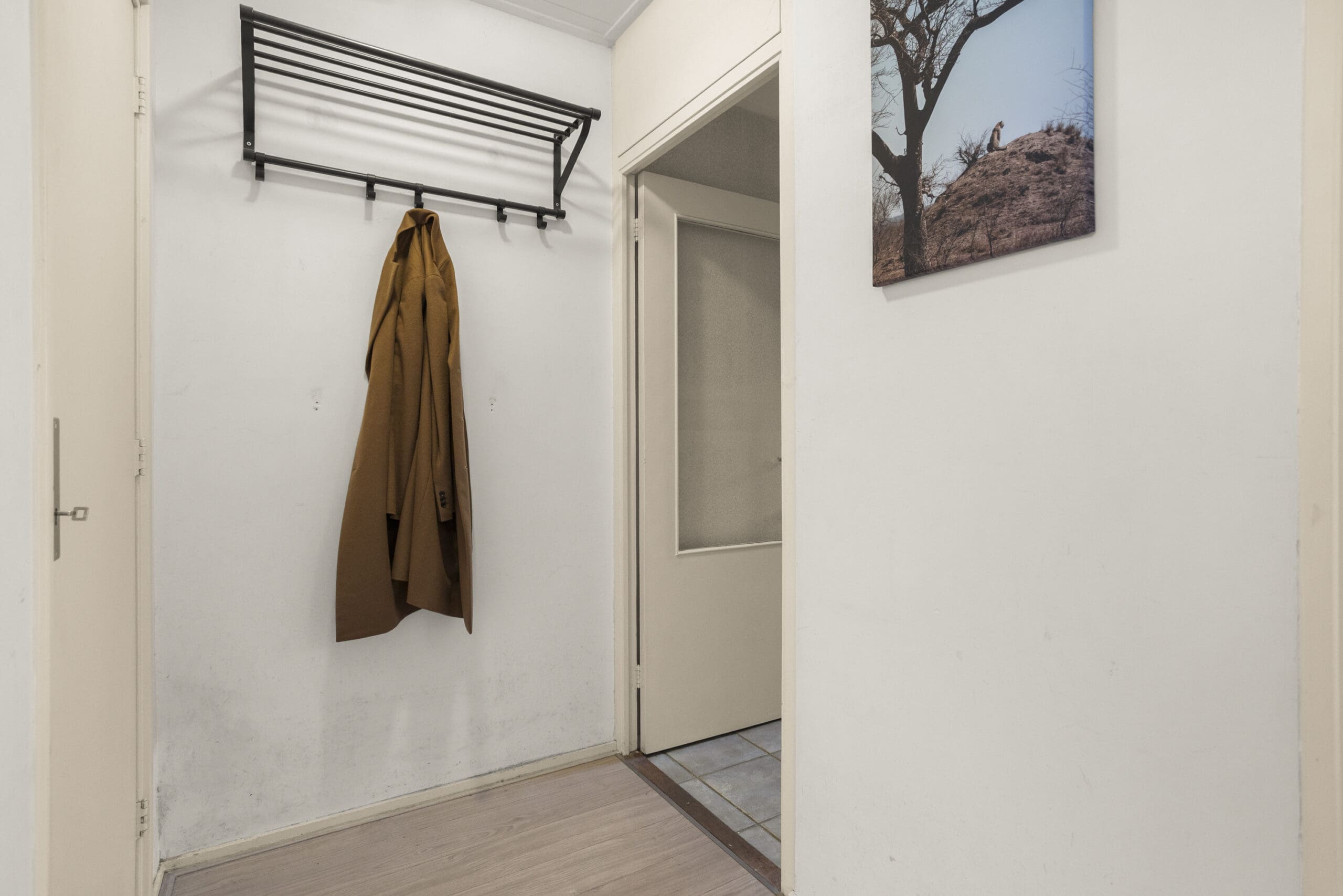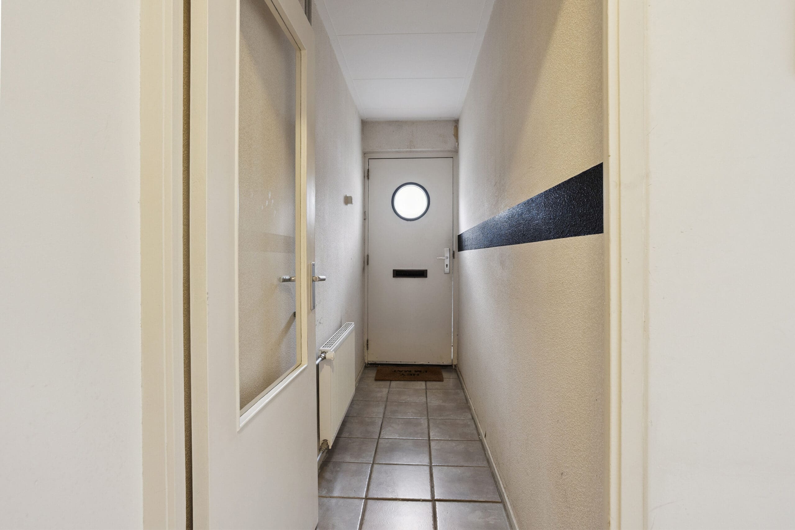 Via de eigen voordeur kom je binnen in de hal, die toegang geeft tot alle vertrekken. Hier is ruimte voor een garderobe en bevindt zich tevens de meterkast.