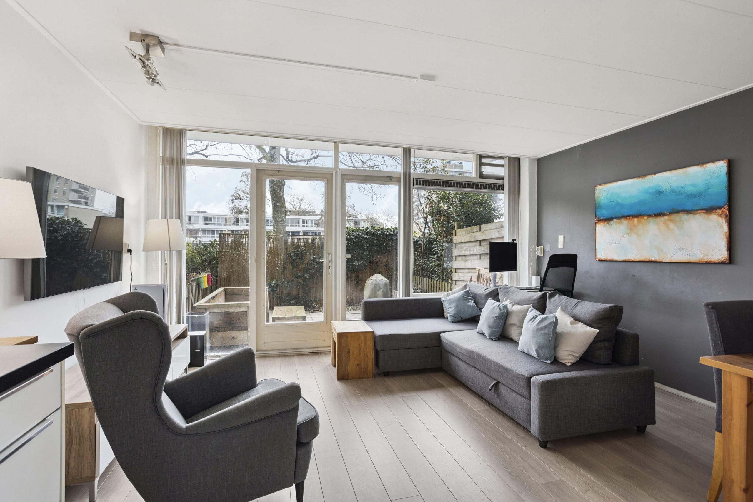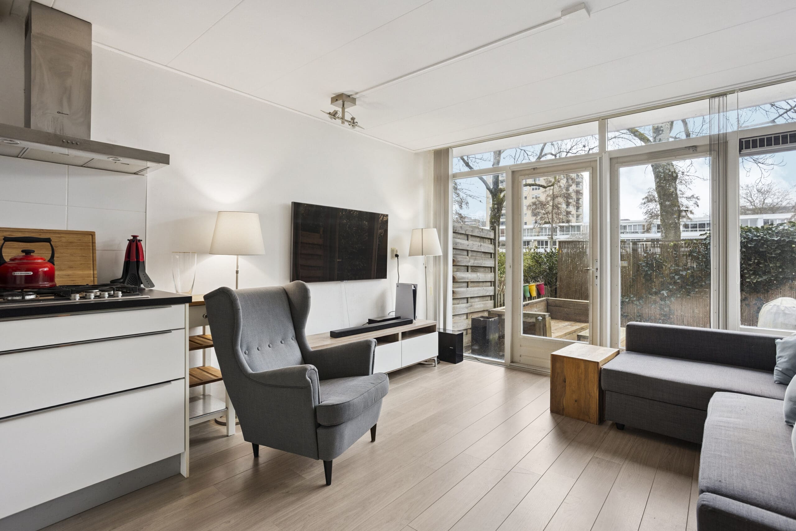 This well-laid-out apartment with a spacious garden is within walking distance of the Zuidas, yet at the same time located in a quiet, green residential area. An ideal home for first-time buyers looking for the best of both worlds. With a separate bedroom, a bright living room with open kitchen, an external storage unit, and perpetually prepaid leasehold, this is a worry-free home.