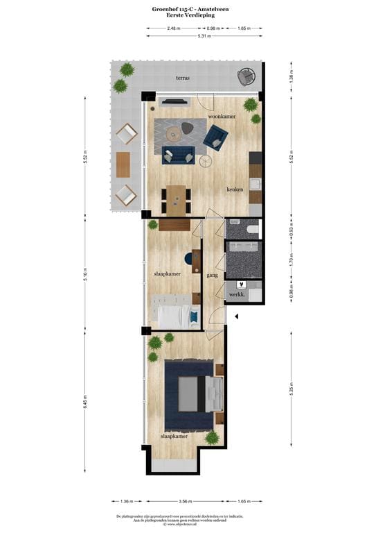 Centrally located above the covered and fully modernized Groenhof shopping center in Amstelveen. The shopping center offers a complete and varied range of shops, including two large supermarkets, various specialty stores, a lunchroom, a clinic, a large optician, and a beauty salon.
