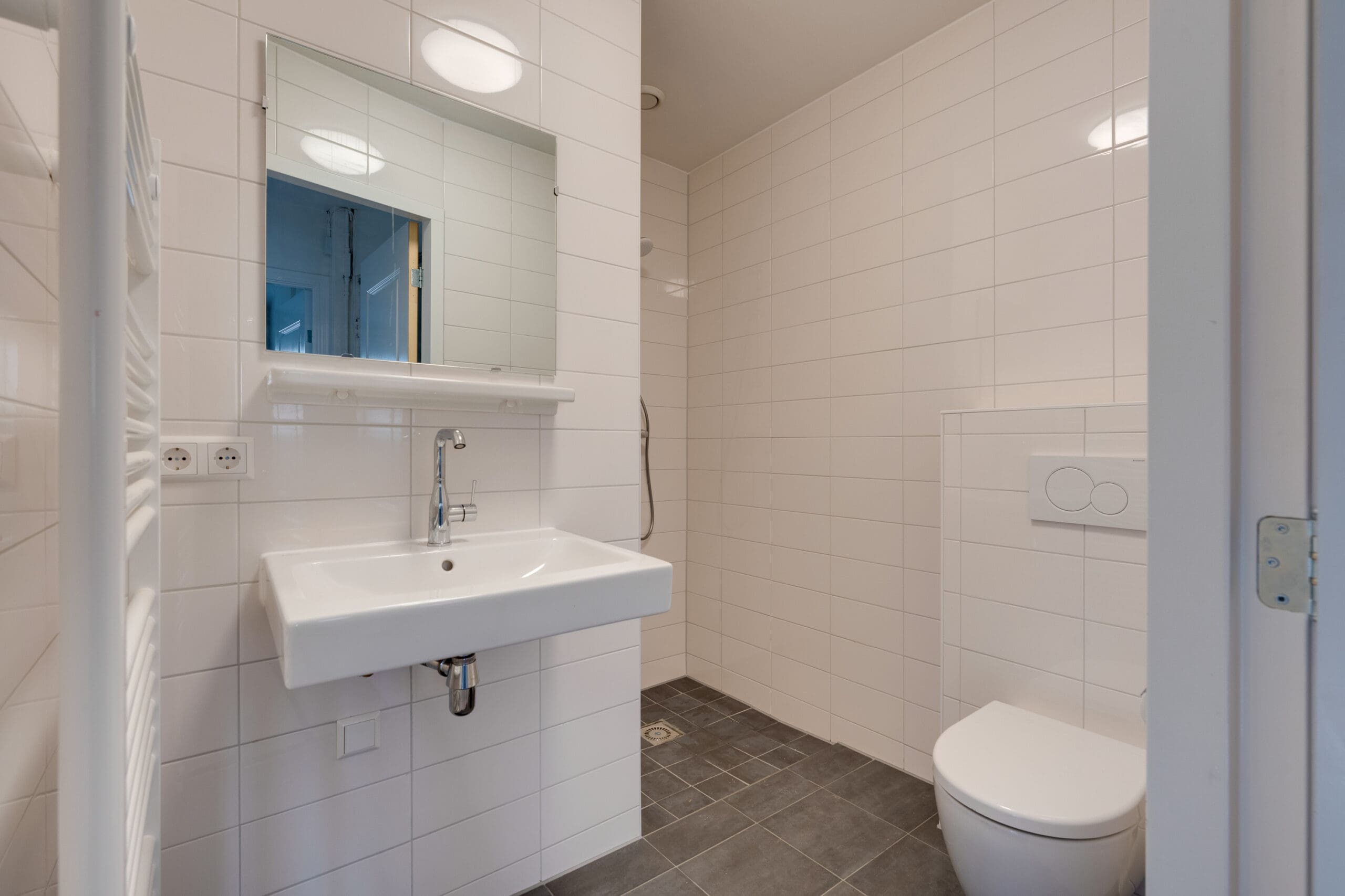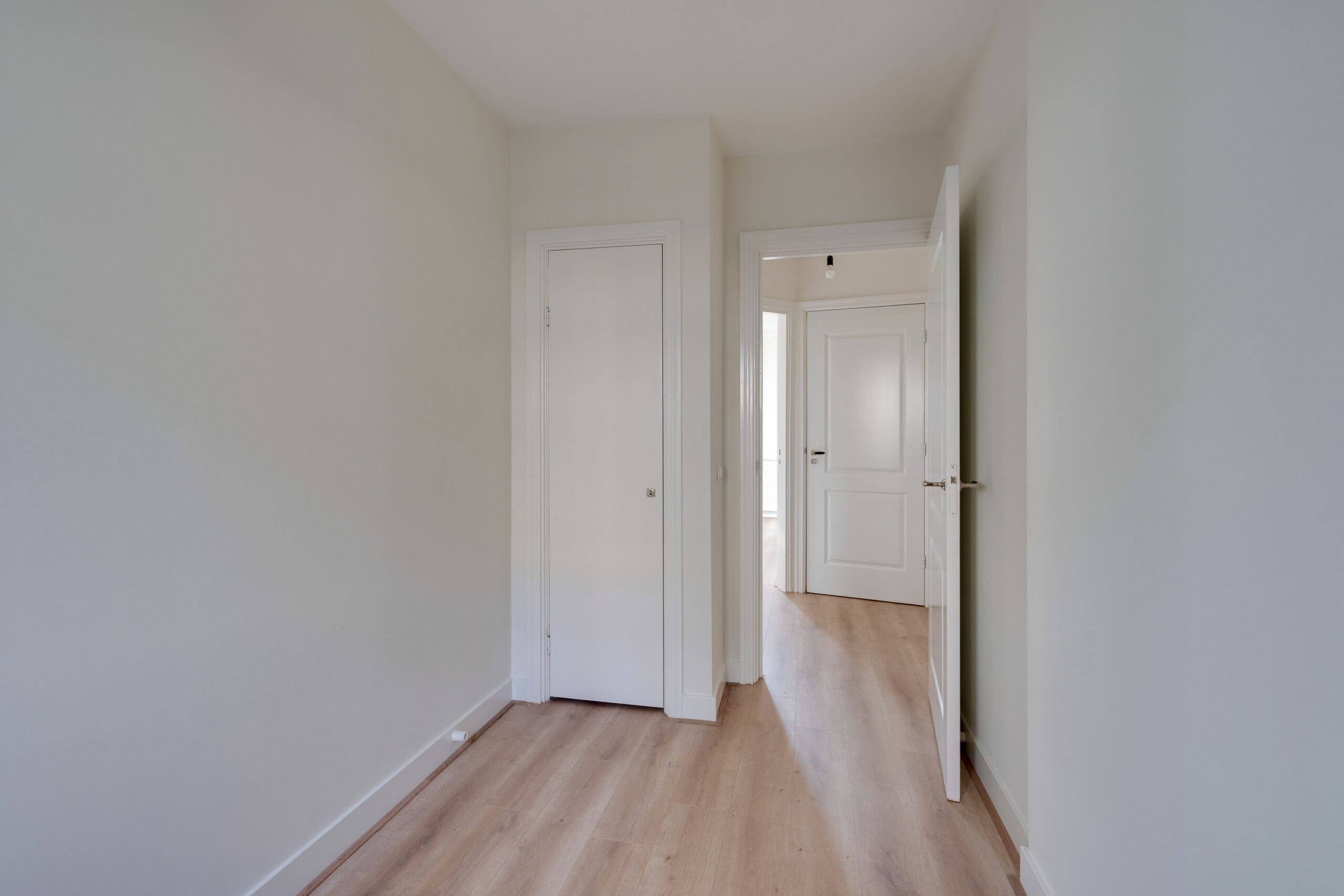 De twee slaapkamers zijn gelegen aan de voorzijde van de woning en voorzien van verduisterende overgordijnen. De badkamer is voorzien van een inloopdouche, zwevend toilet, wastafel met spiegel en planchet en een design radiator. Centraal in de woning bevindt zich een bergruimte met wasmachineaansluiting.