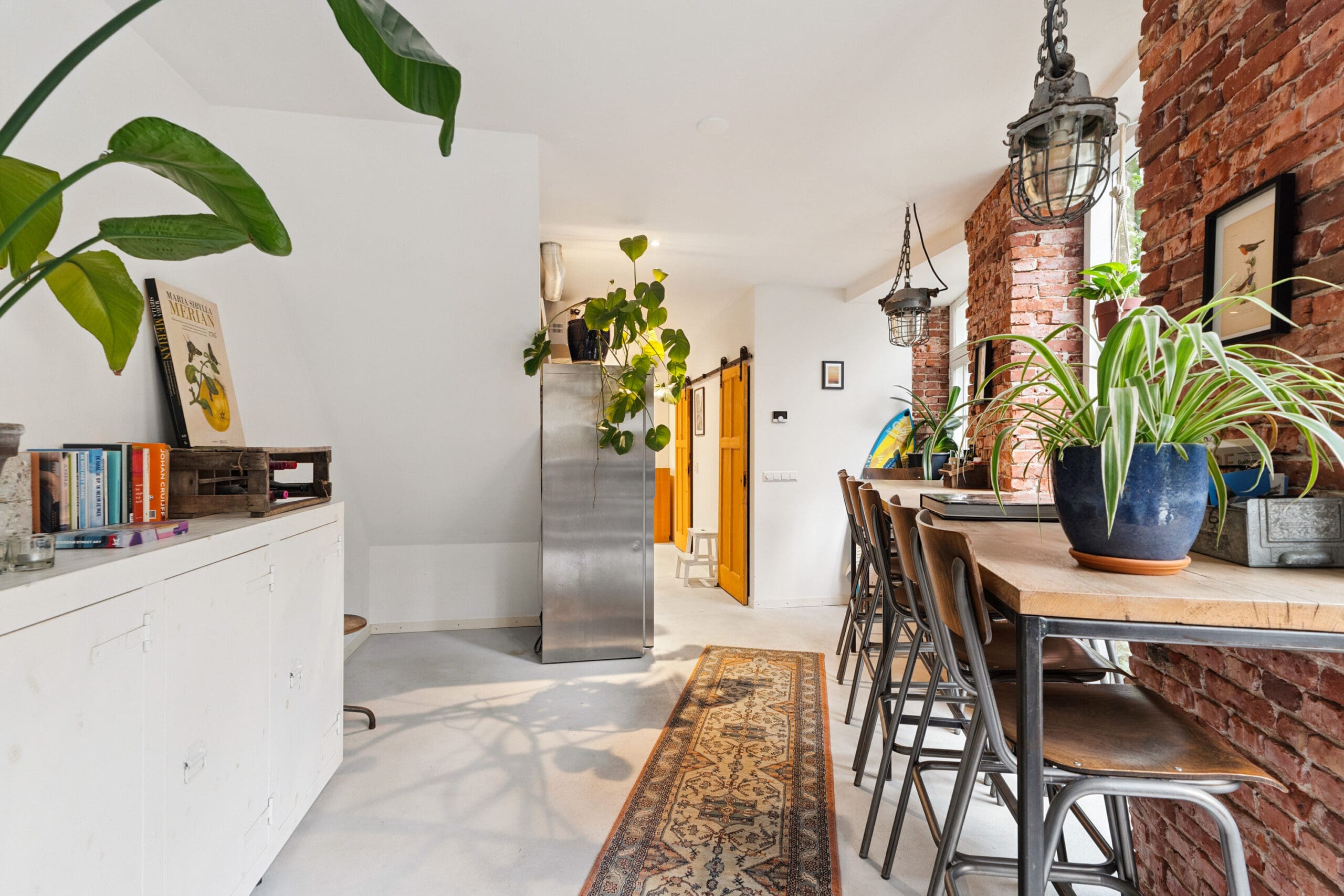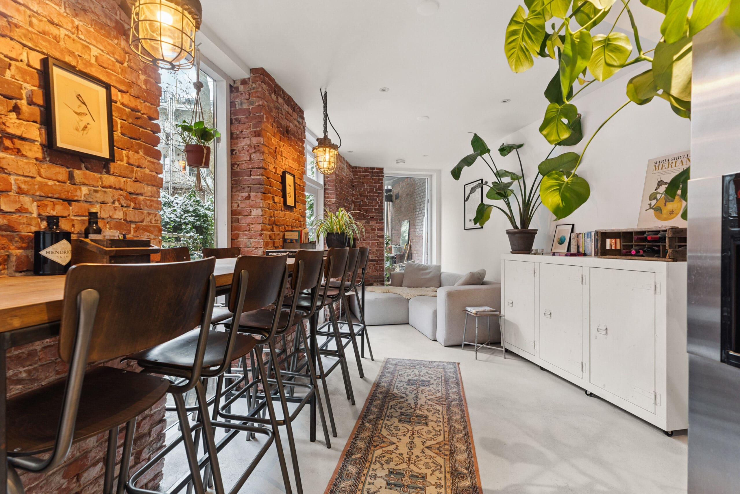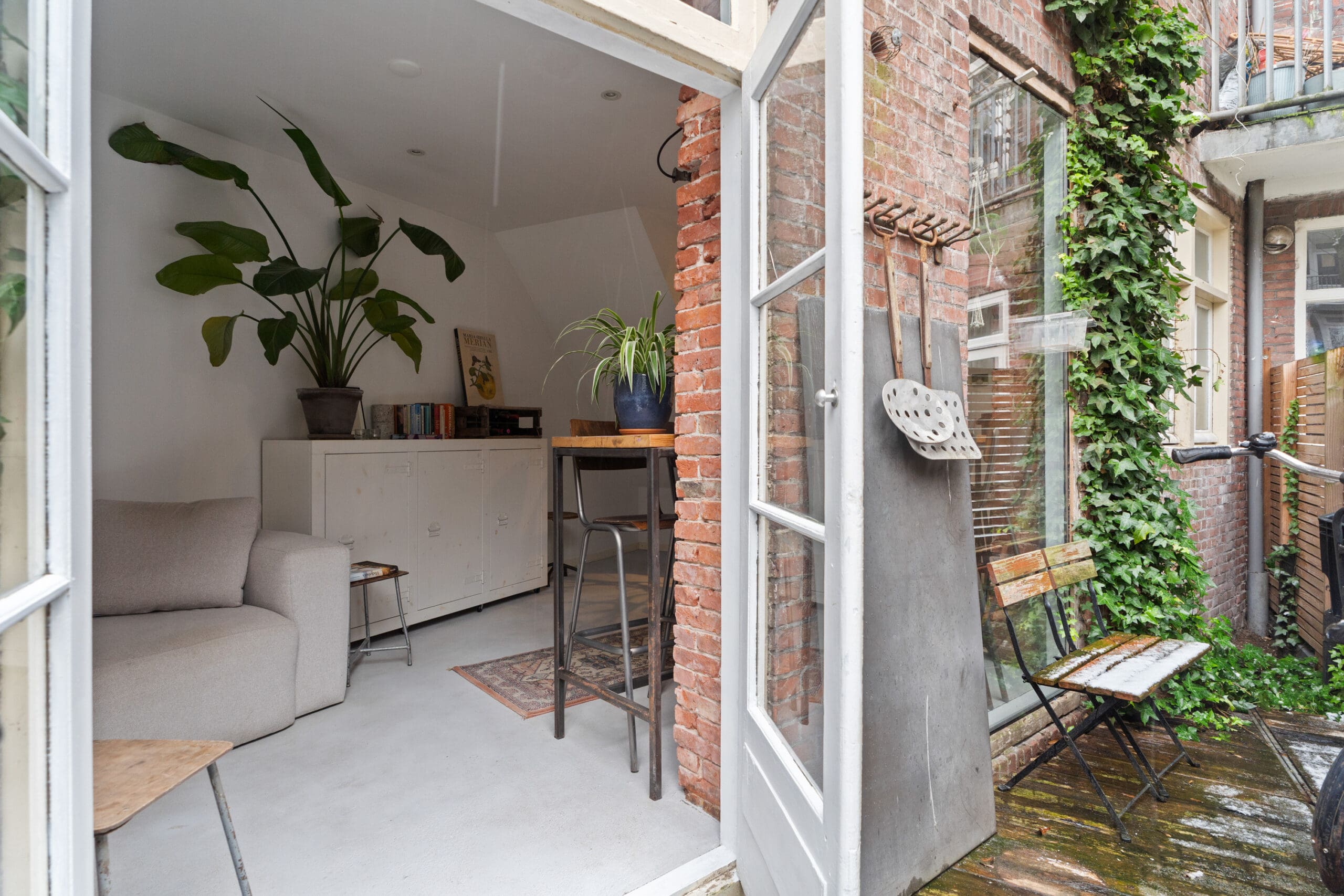 The living room is situated at the garden side, making it wonderfully quiet. This is an inviting and pleasant living space where indoor and outdoor living blend seamlessly; on sunny days, the garden becomes a natural extension of the living area.