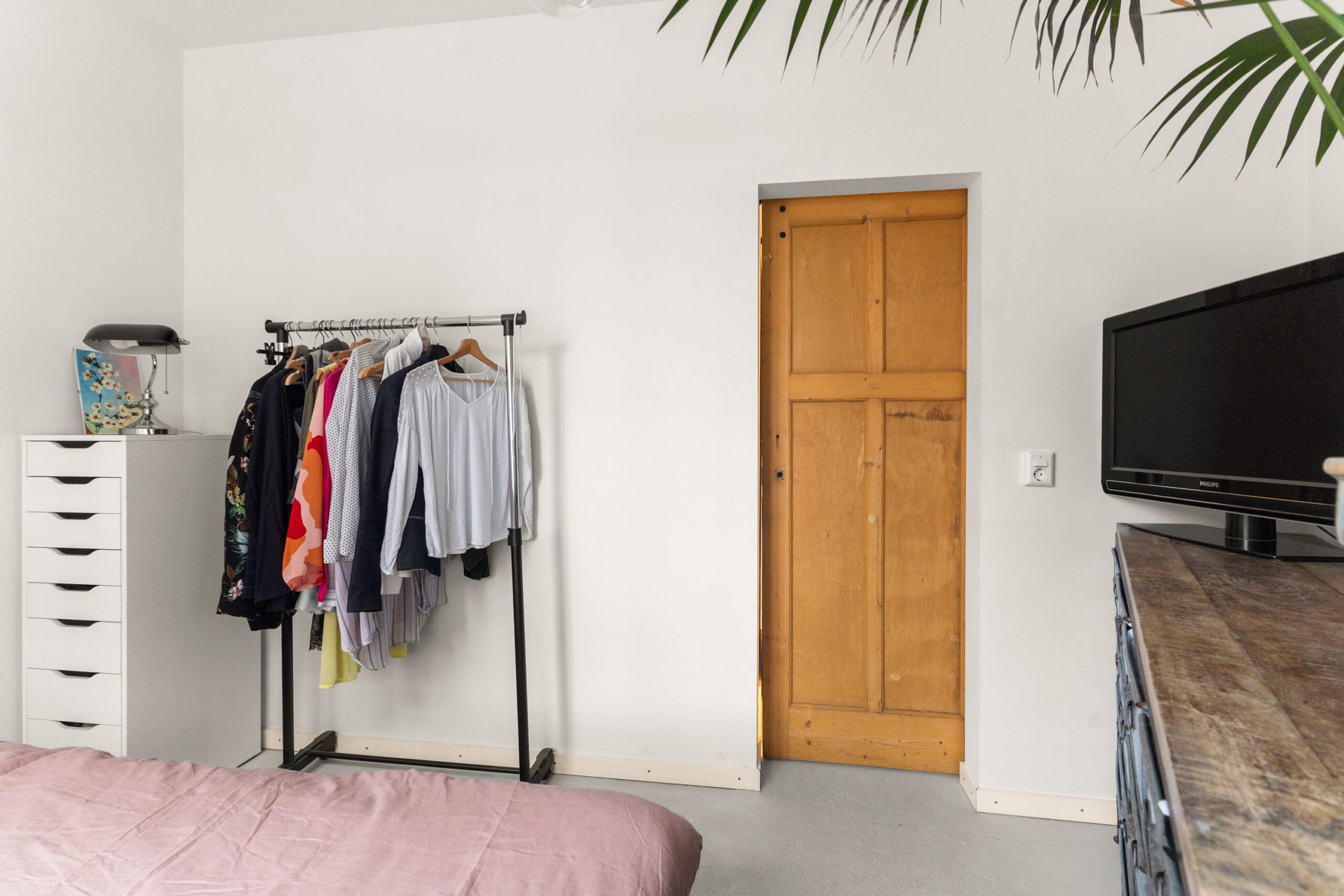De eerste slaapkamer ligt aan de straatzijde en heeft een goed formaat. De tweede slaapkamer is slim ingericht als bedstee, met een ingebouwd bed op hoogte waardoor er extra (berg)ruimte onder het bed is ontstaan.