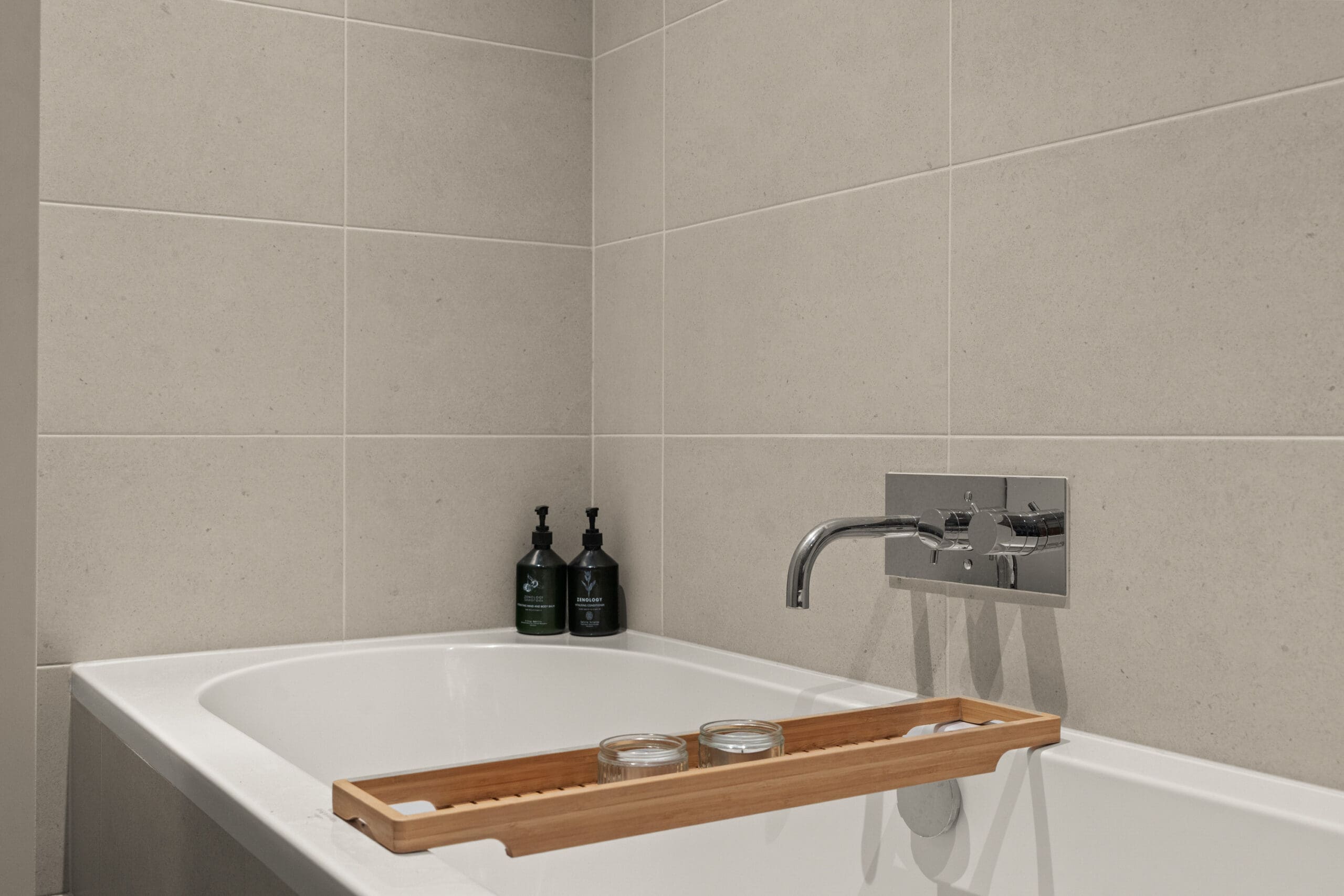 Throughout the entire apartment, underfloor heating combined with a concrete floor ensures optimal comfort and a clean, modern look.