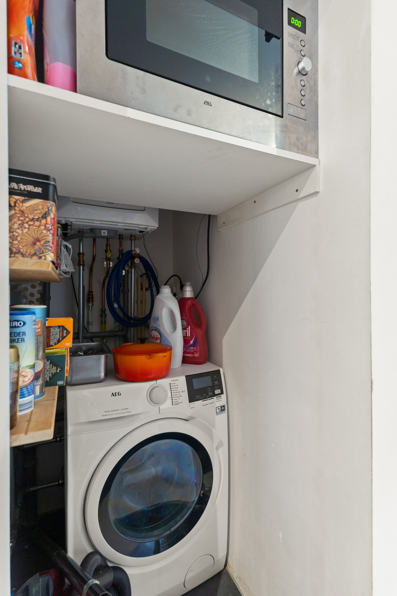Naast de badkamer bevindt zich een aparte wasruimte met aansluiting voor wasmachine en droger, tevens hangt hier de cv-installatie.