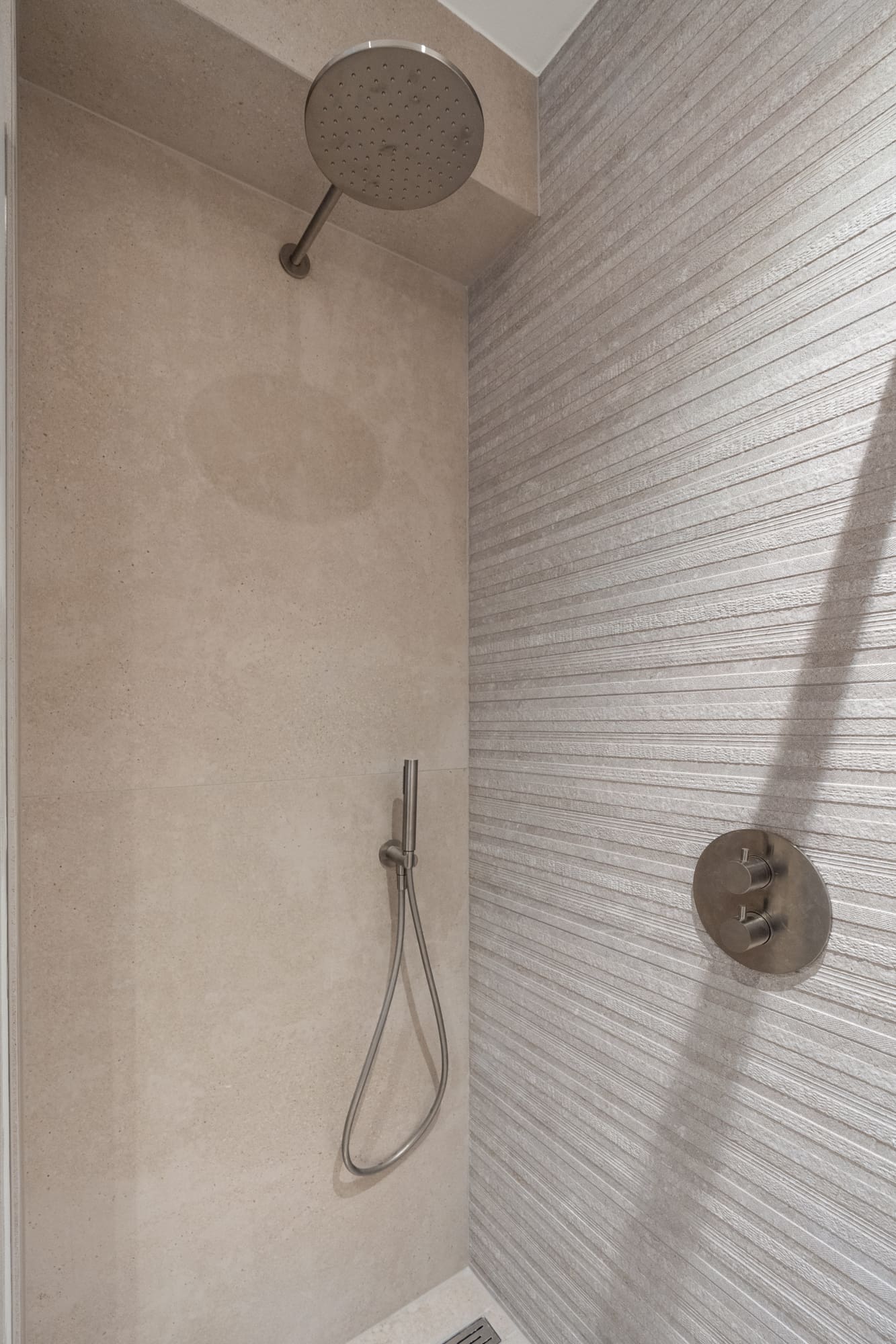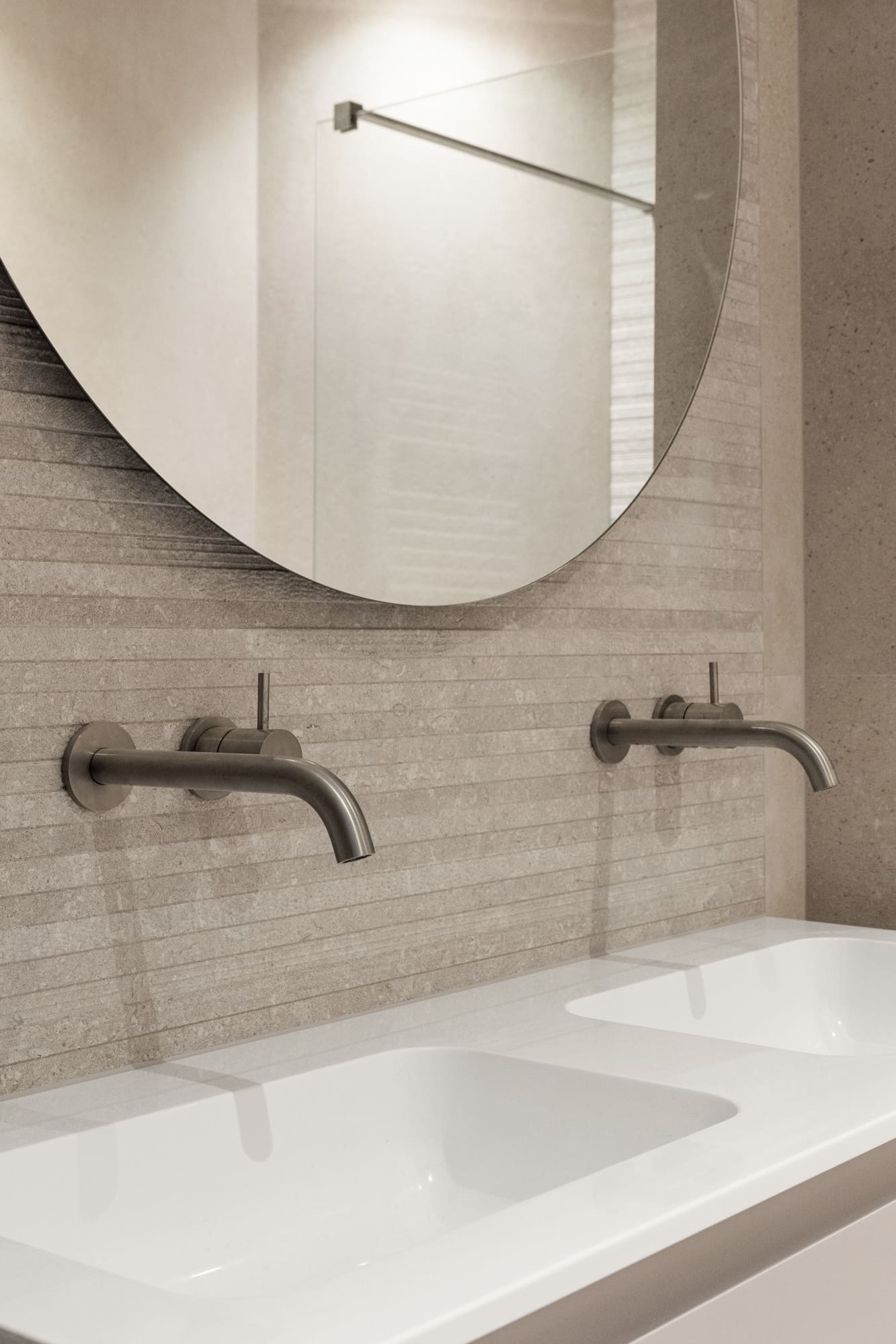 Underfloor heating runs throughout the apartment, finished with a stunning wide herringbone floor. The ceilings feature integrated recessed spotlights and all windows are fitted with double glazing.