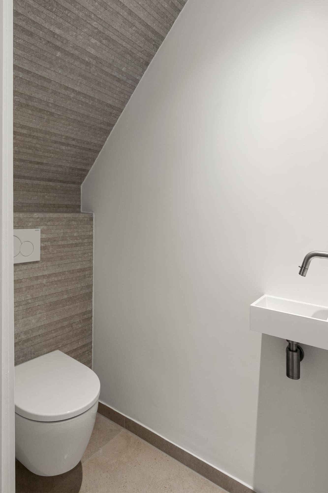 Door de gehele woning ligt vloerverwarming en een prachtig brede visgraatvloer. In de plafonds zijn inbouwspots geplaatst en alle kozijnen zijn voorzien van dubbel glas.