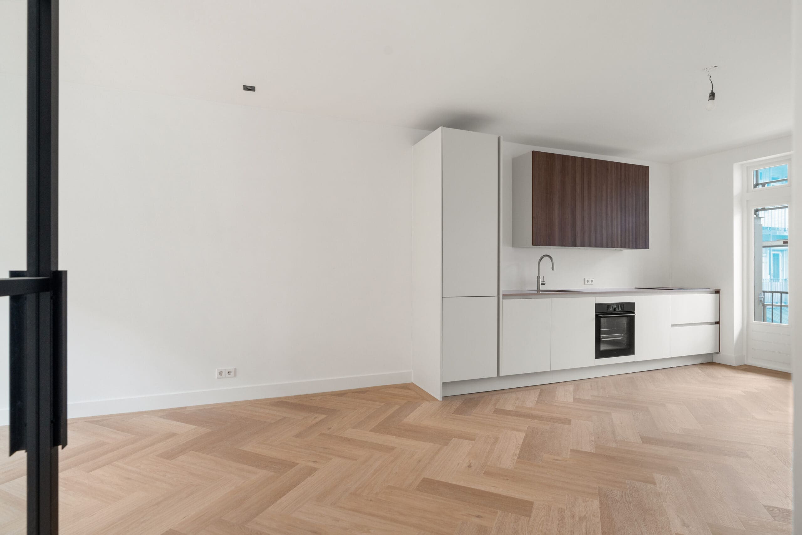The entire apartment has underfloor heating and a beautiful wide herringbone floor. Recessed spotlights have been placed in the ceilings and all frames have double glazing.