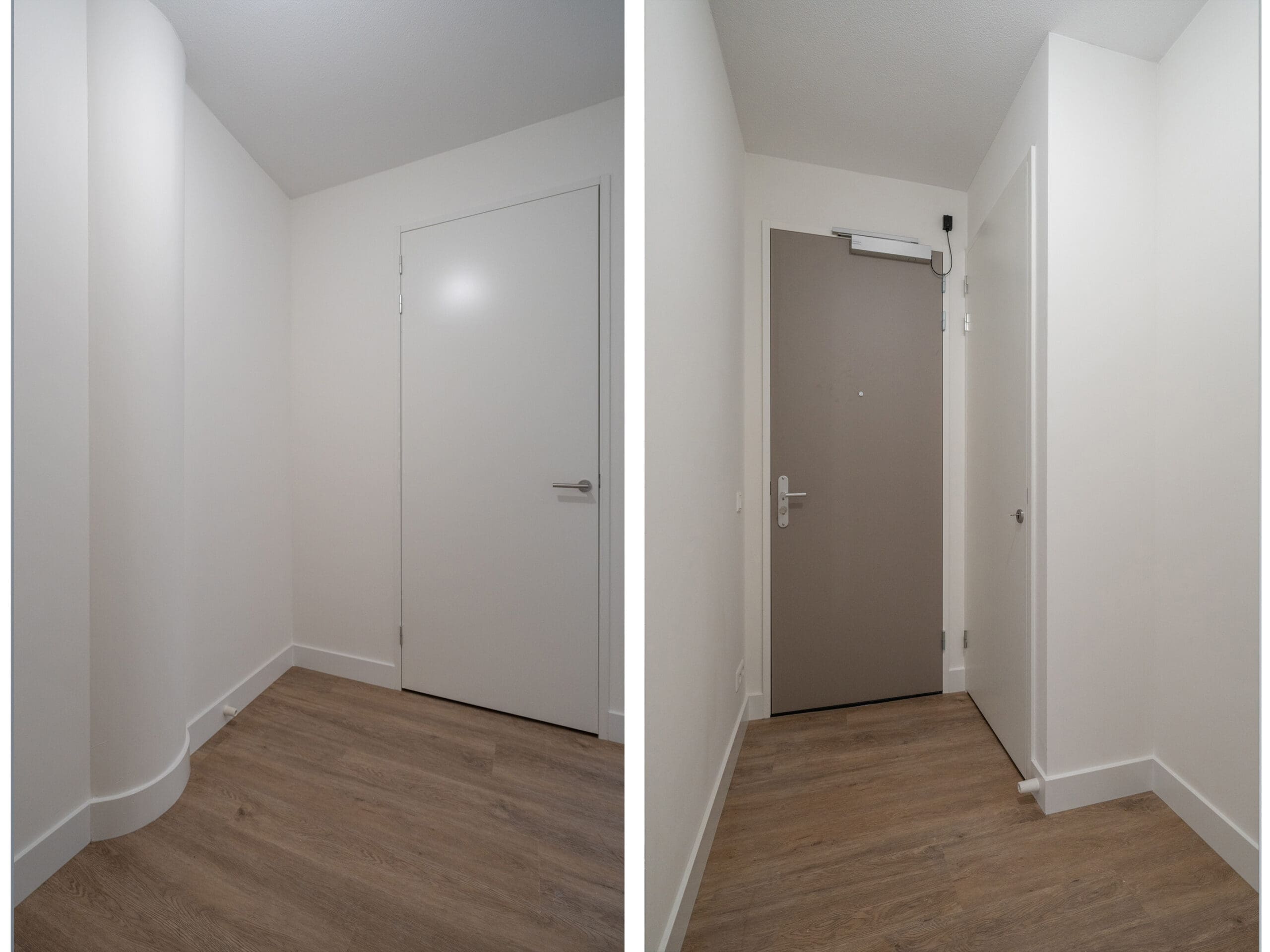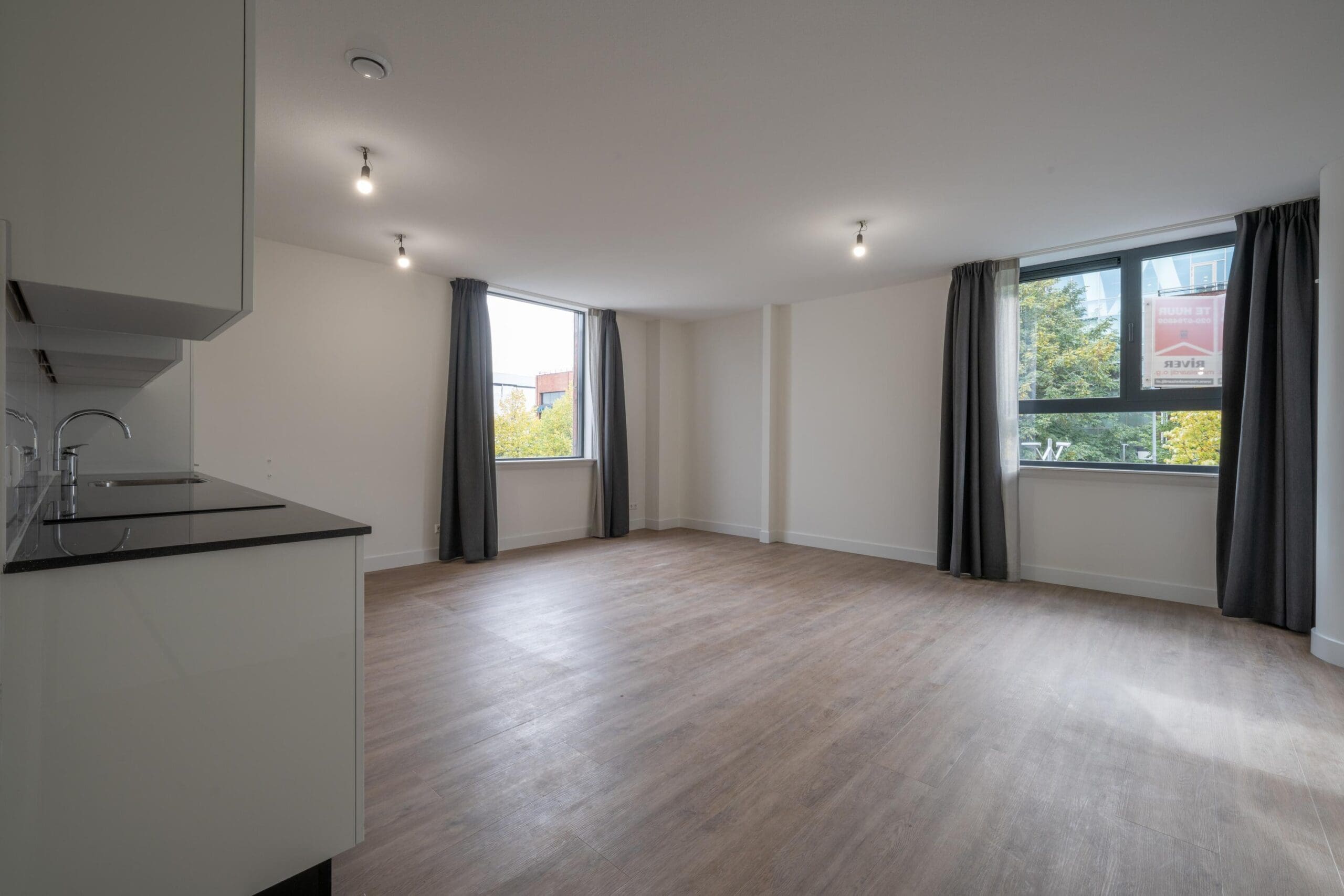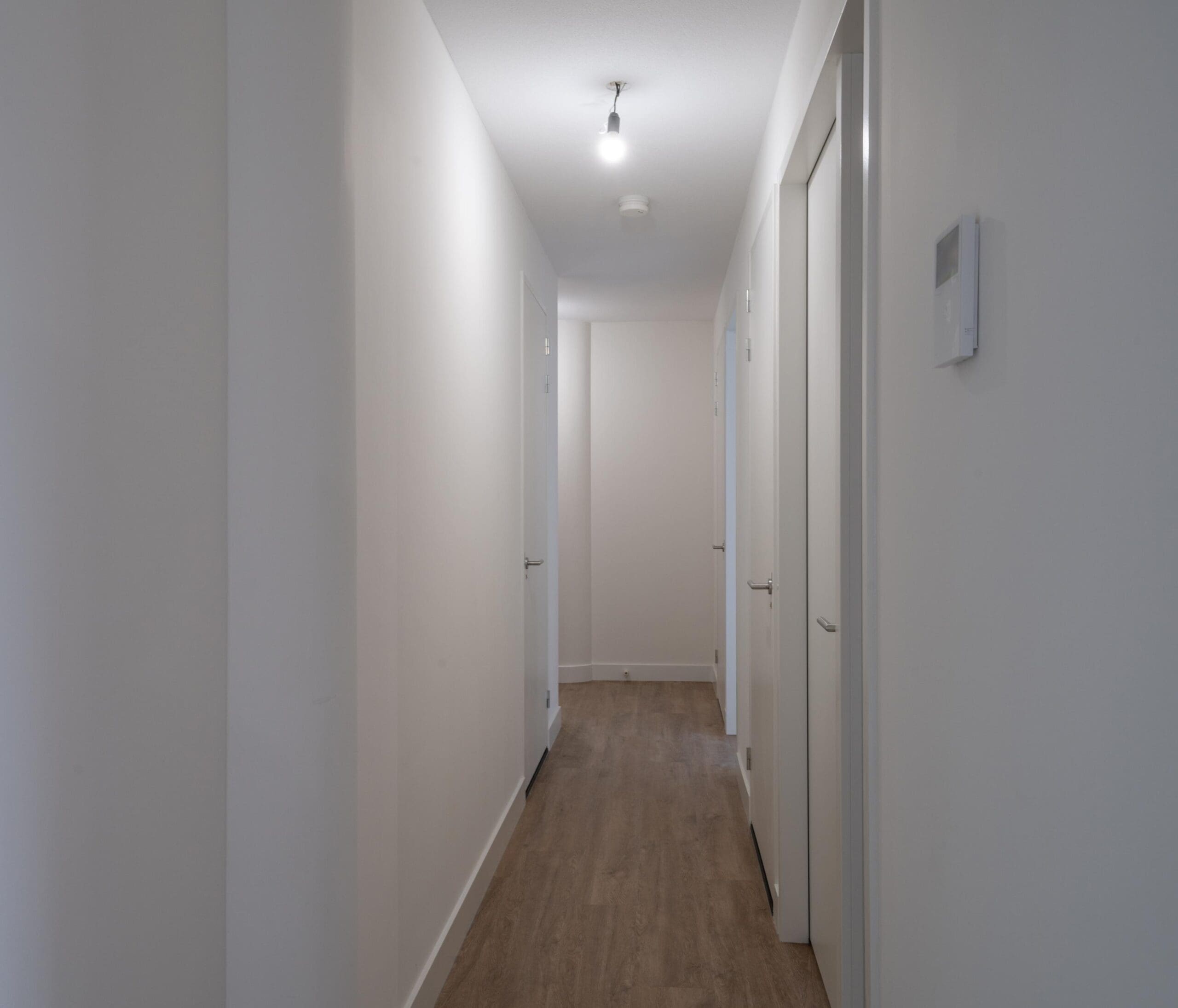 Het appartement is luxe afgewerkt met een pvc-vloer (houtlook) en vitrages met verduisterende overgordijnen