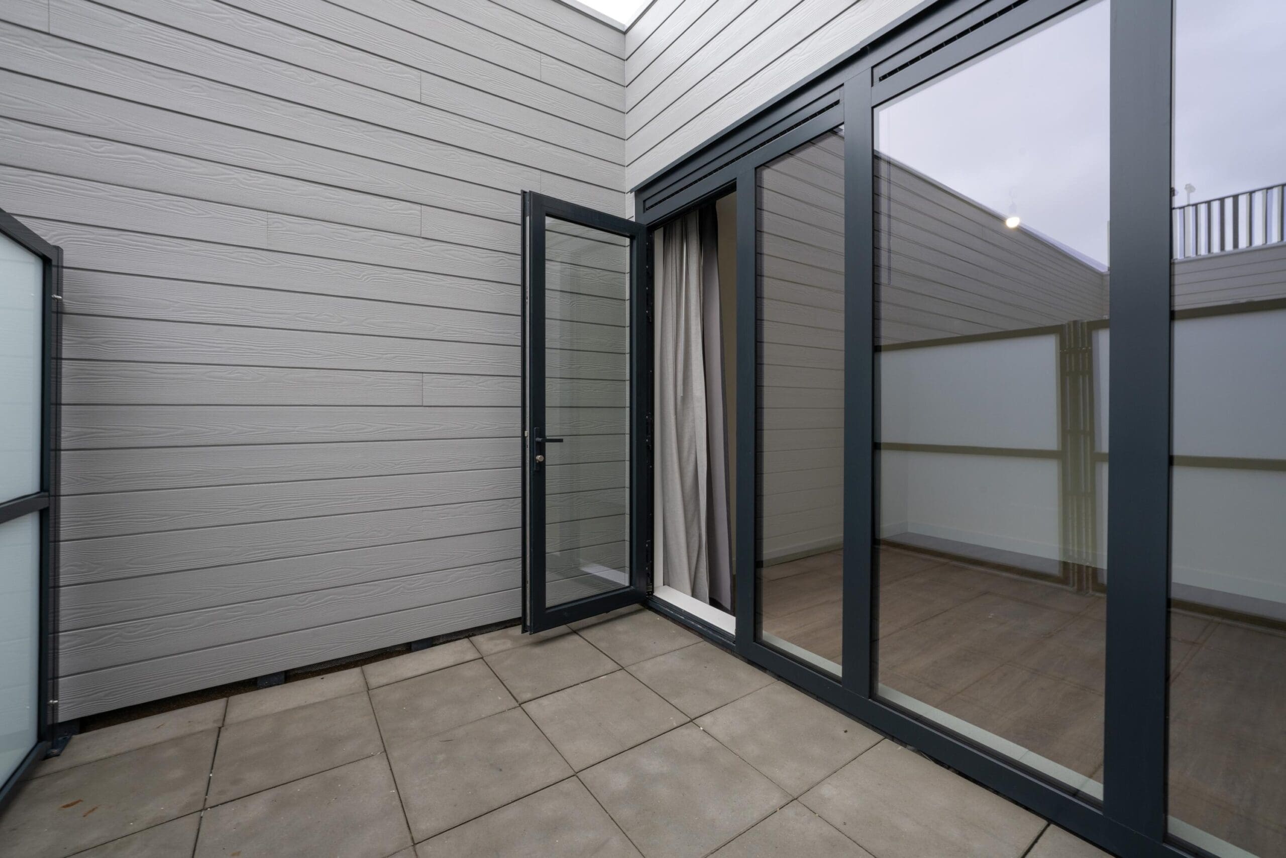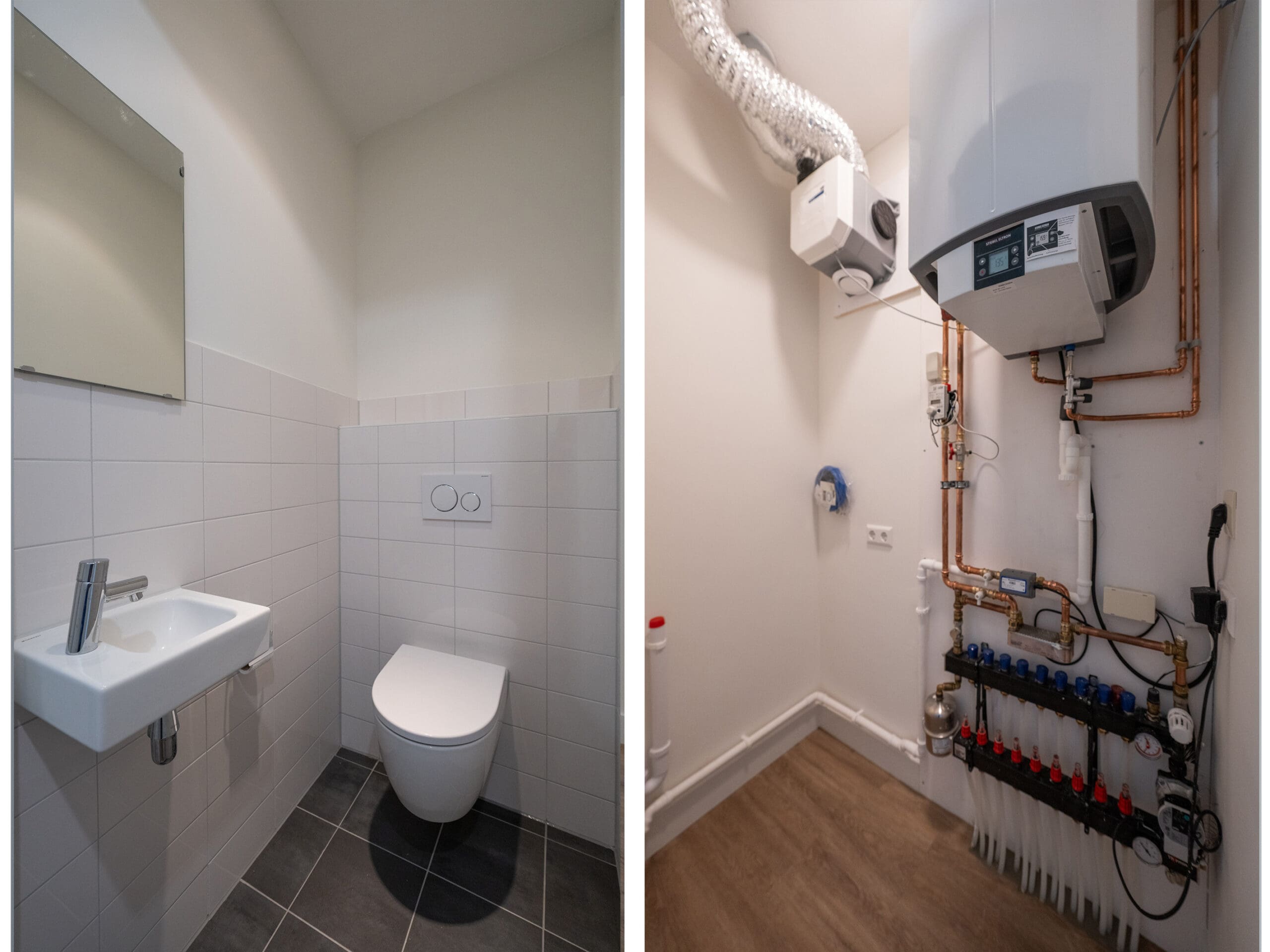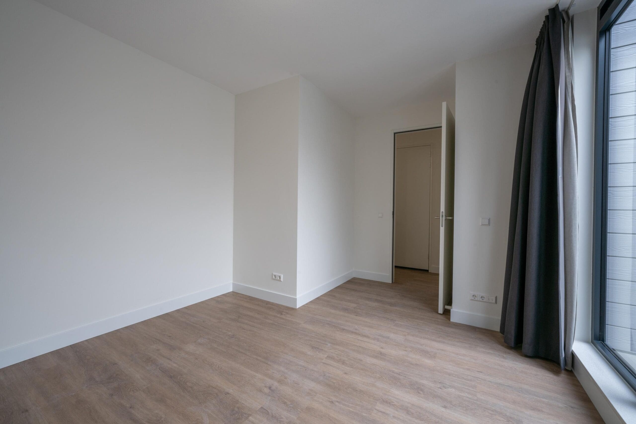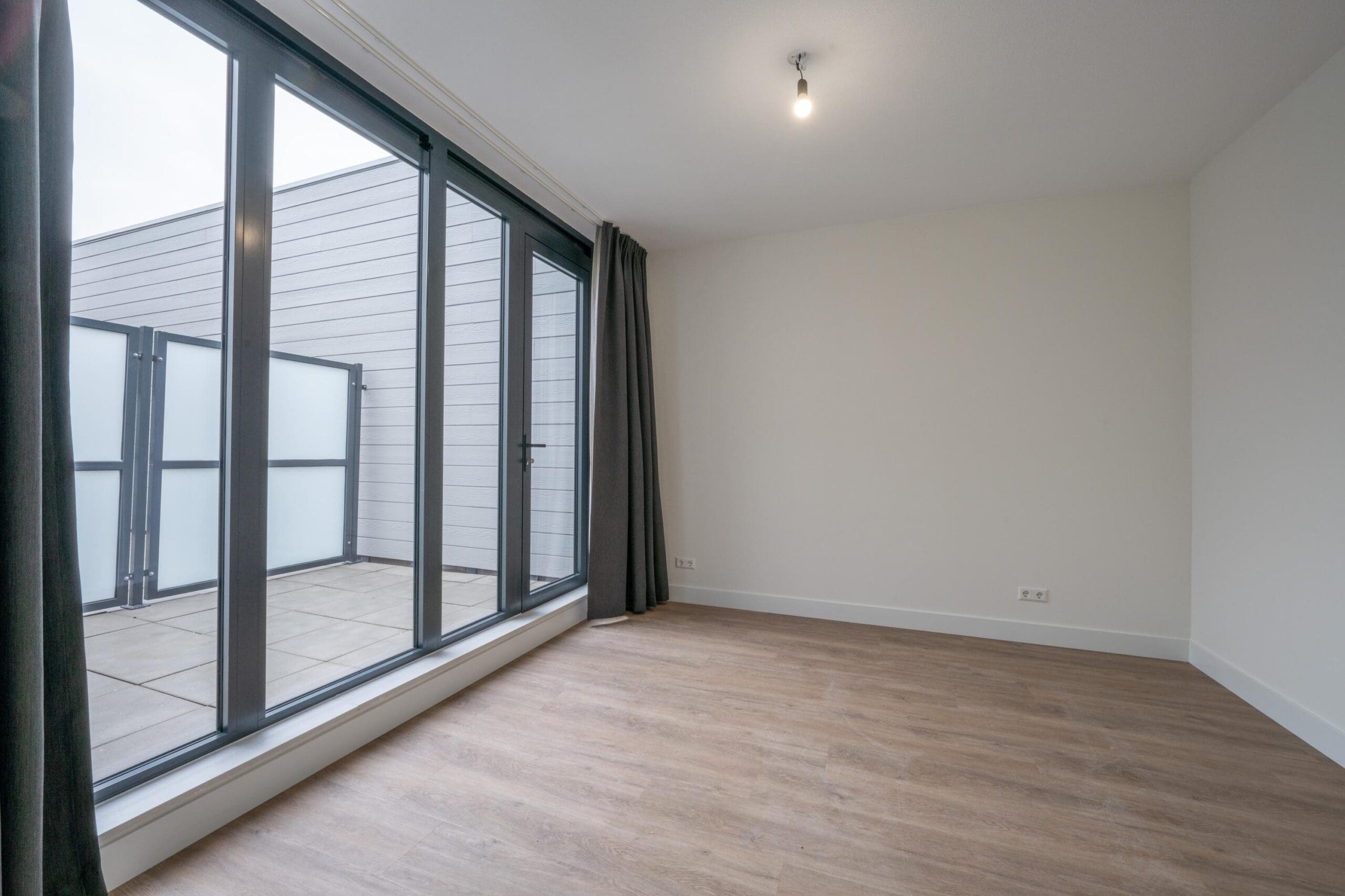Upon entering, the hallway provides access to all rooms. The spacious living room features a modern high-gloss white kitchen equipped with a composite worktop and various built-in (Siemens) appliances. From the hallway you can also reach the study and the bedroom, which gives access to the roof terrace. Additionally, the apartment offers a separate toilet, a laundryroom with connections for a washing machine and/or dryer, and a large bathroom with a walk-in shower, double washbasin and a second toilet.