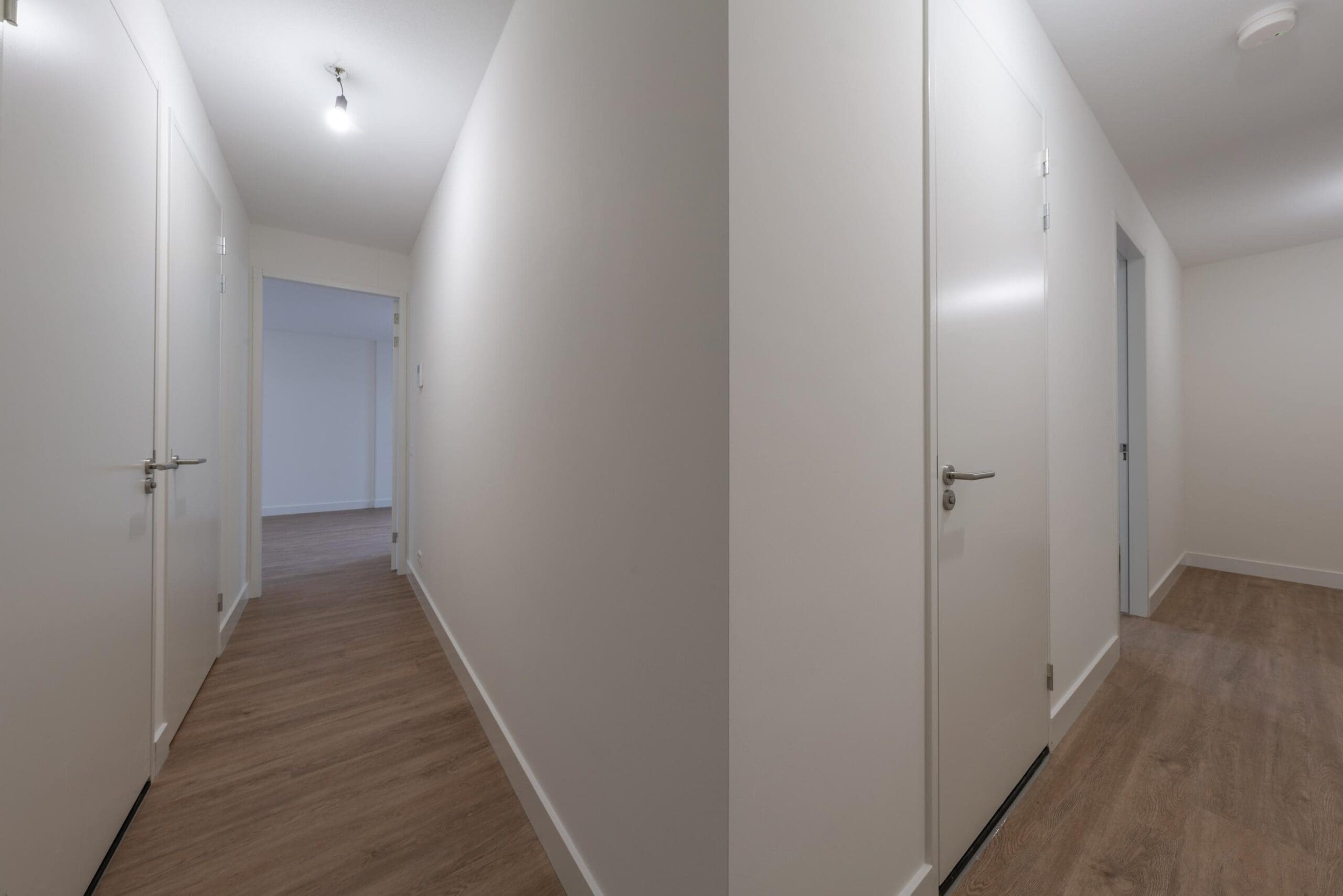 Het appartement is luxe afgewerkt met een pvc-vloer (houtlook) en vitrages met verduisterende overgordijnen