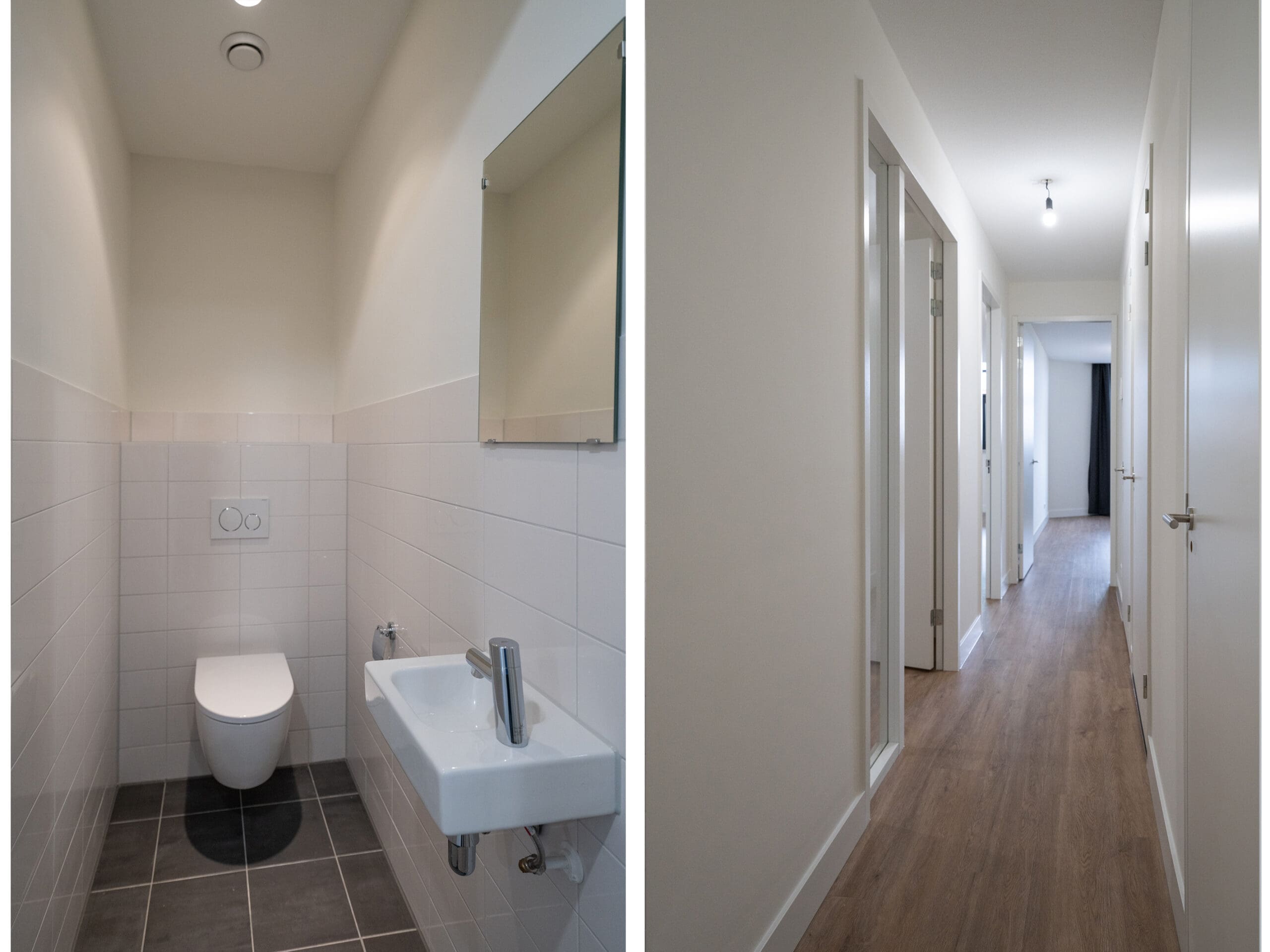 Bij binnenkomst in het appartement geeft de hal u toegang tot alle vertrekken. De ruime woonkamer met open keuken grenst aan de afsluitbare ruime werkkamer. De moderne, witte hoogglans keuken is voorzien van een composiet werkblad en diverse (Siemens) inbouwapparatuur. Vanuit de hal is ook de slaapkamer te bereiken, net als het separate toilet, de aparte wasruimte met aansluiting voor een wasmachine en/of droger en de ruime badkamer welke is voorzien van een inloopdouche, dubbele wastafel en een tweede toilet.