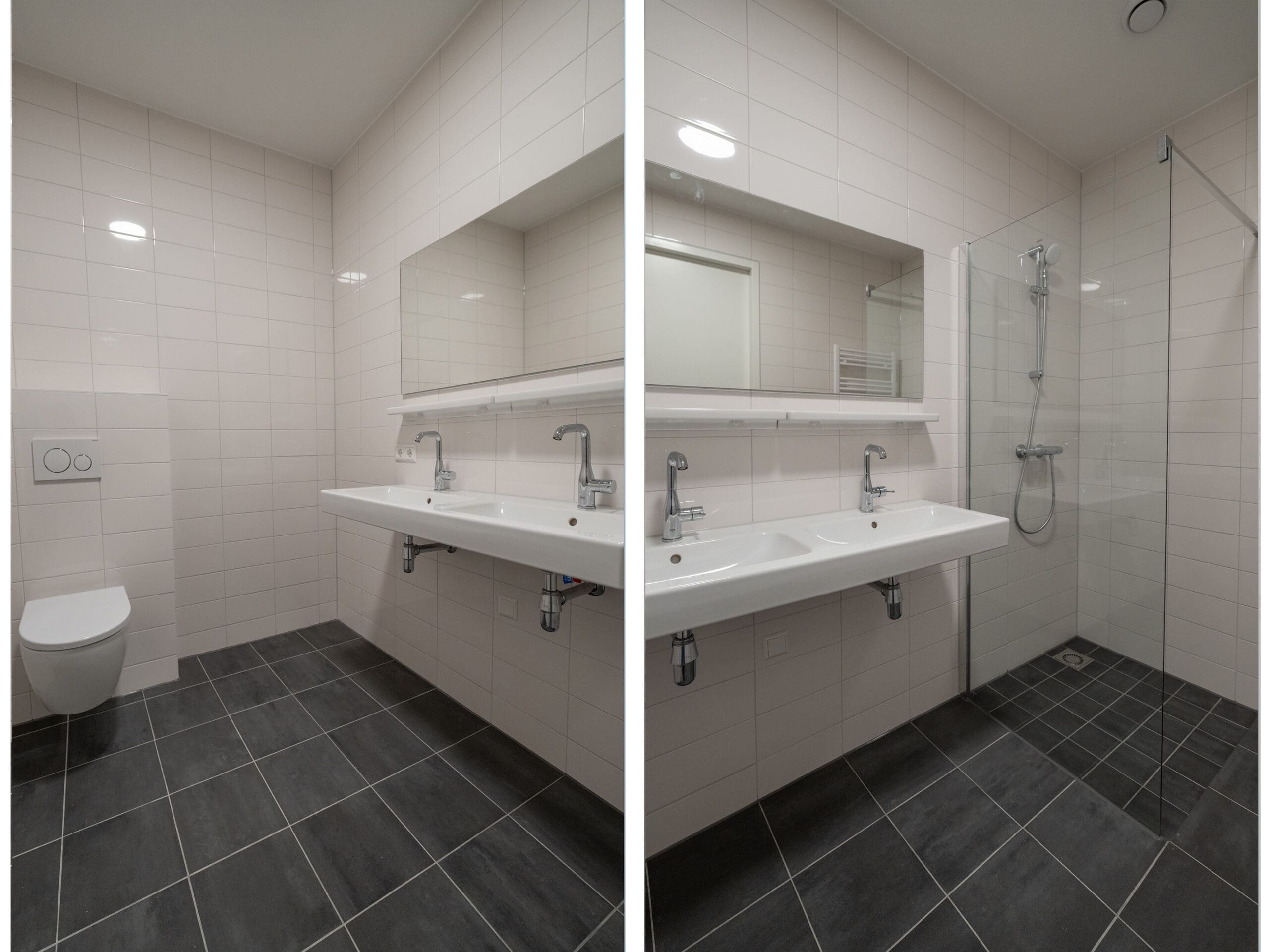 Upon entering the apartment, the hall gives you access to all rooms. The spacious living room with open kitchen is next to the lockable spacious study. The modern, white high-gloss kitchen is equipped with a composite worktop and various (Siemens) built-in appliances. The bedroom can also be reached from the hall, as well as the separate toilet, the separate laundry room with connection for a washing machine and/or dryer and the spacious bathroom which is equipped with a walk-in shower, double sink and a second toilet.
