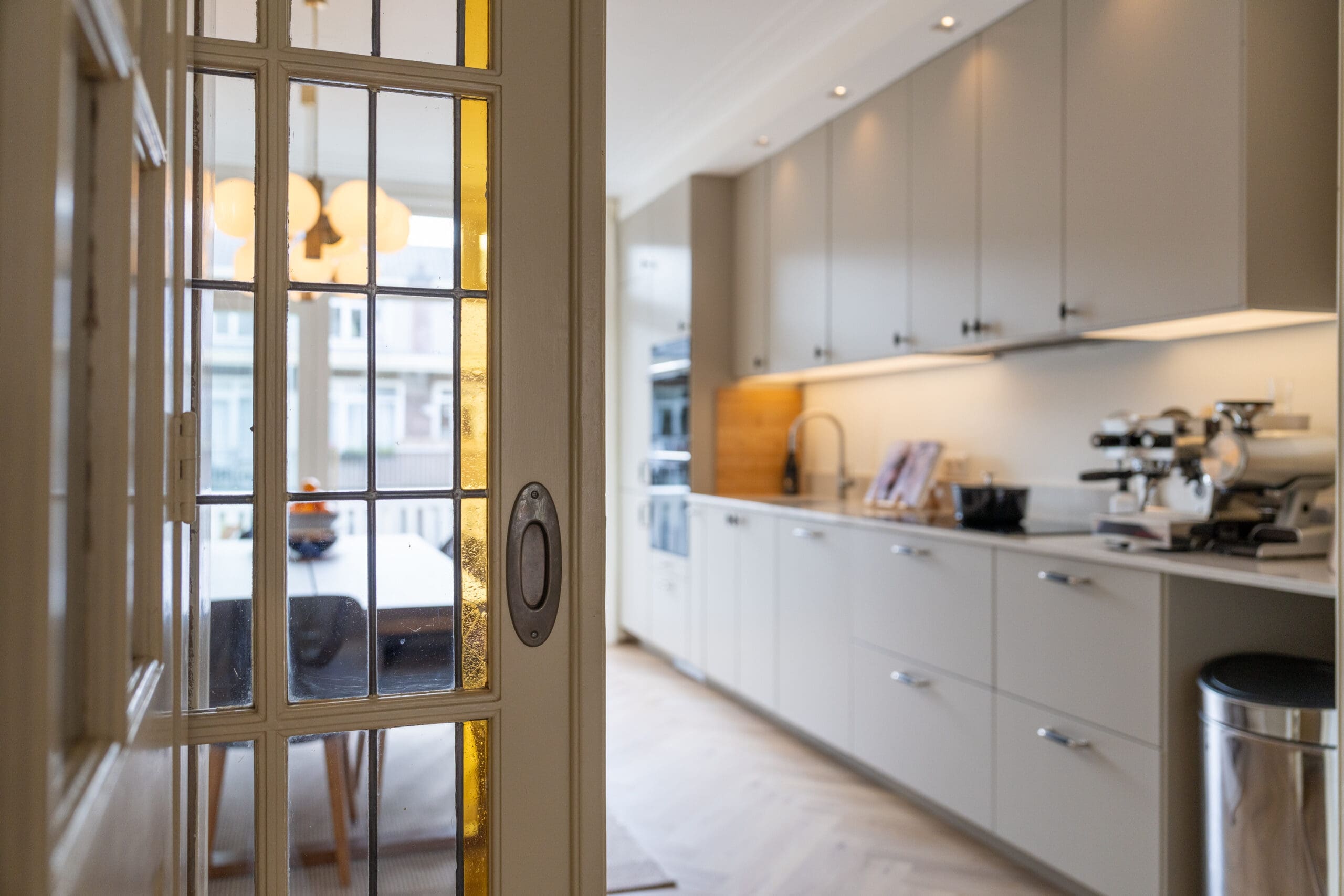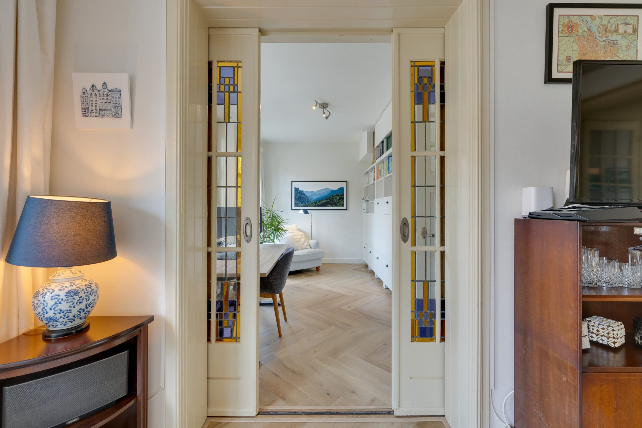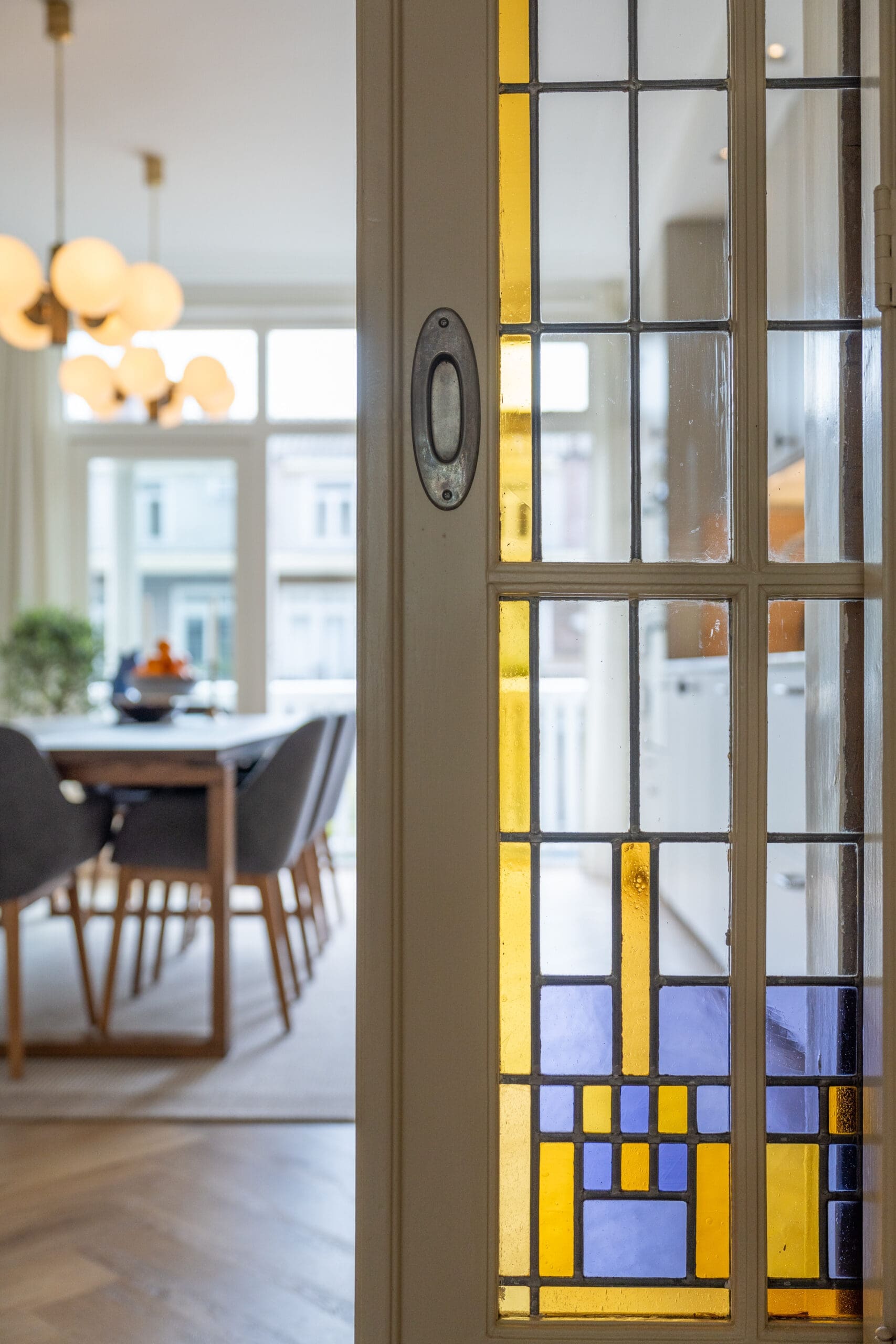 - Vele originele details zoals paneeldeuren en glas-in-lood schuifdeuren;