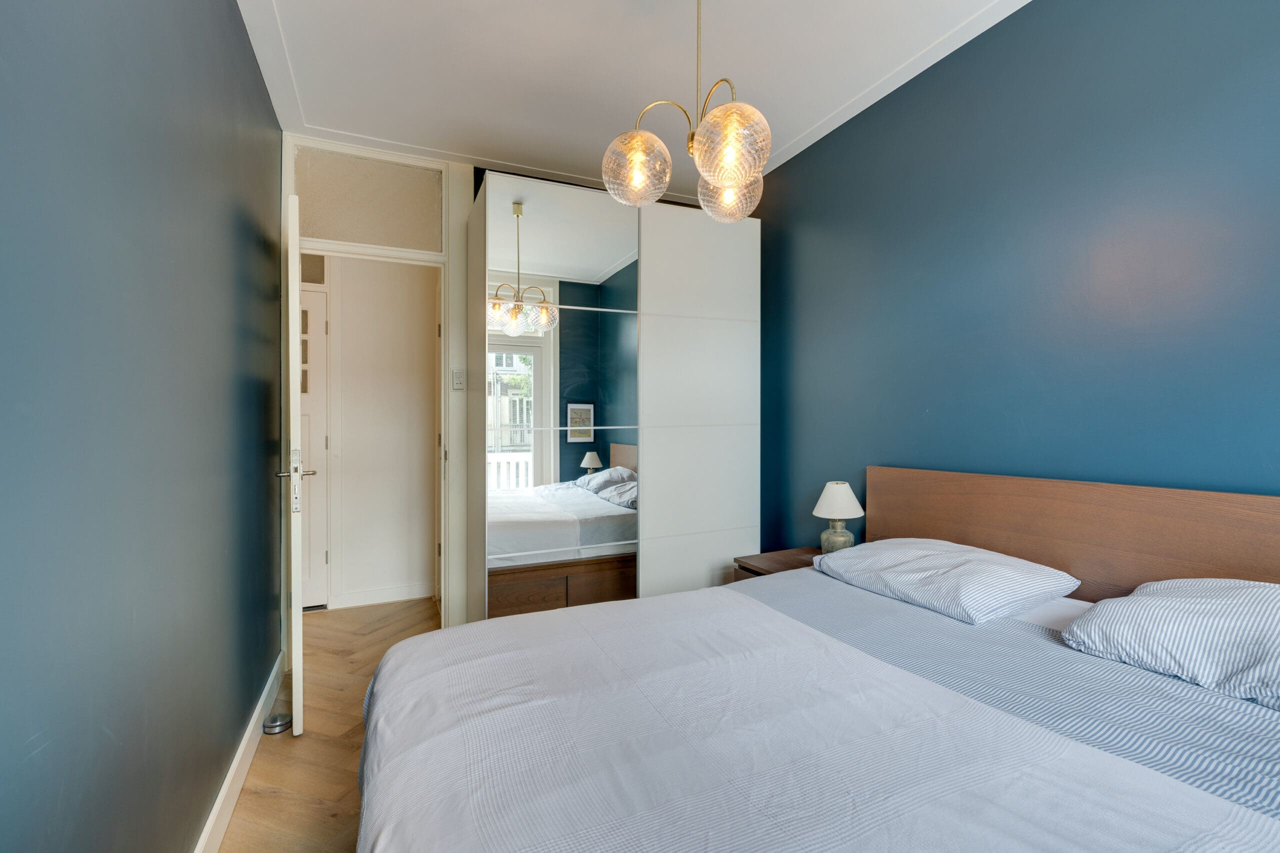 Twee slaapkamers aan de achterzijde waarvan 1 de ouderslaapkamer is. Alle vertrekken aan de achterzijde hebben toegang tot een appartement breed zonnig balkon op het zuiden. De moderne badkamer (2023) is voorzien van een inloopdouche, een wastafel met meubelwastafel en een design radiator. Ook het separate toilet is tegelijk met de badkamer vernieuwd.