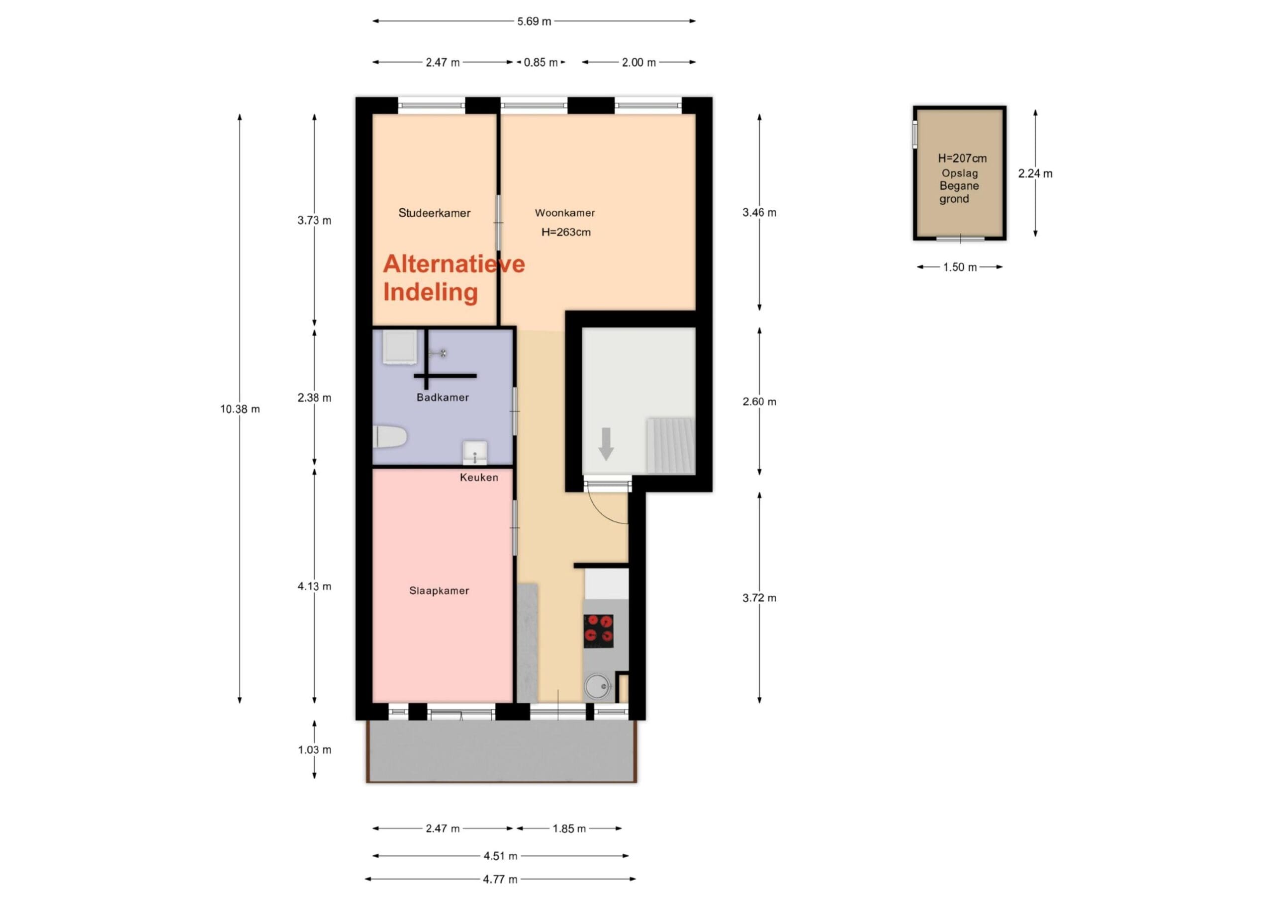 - Extra bergruimte op de gang;