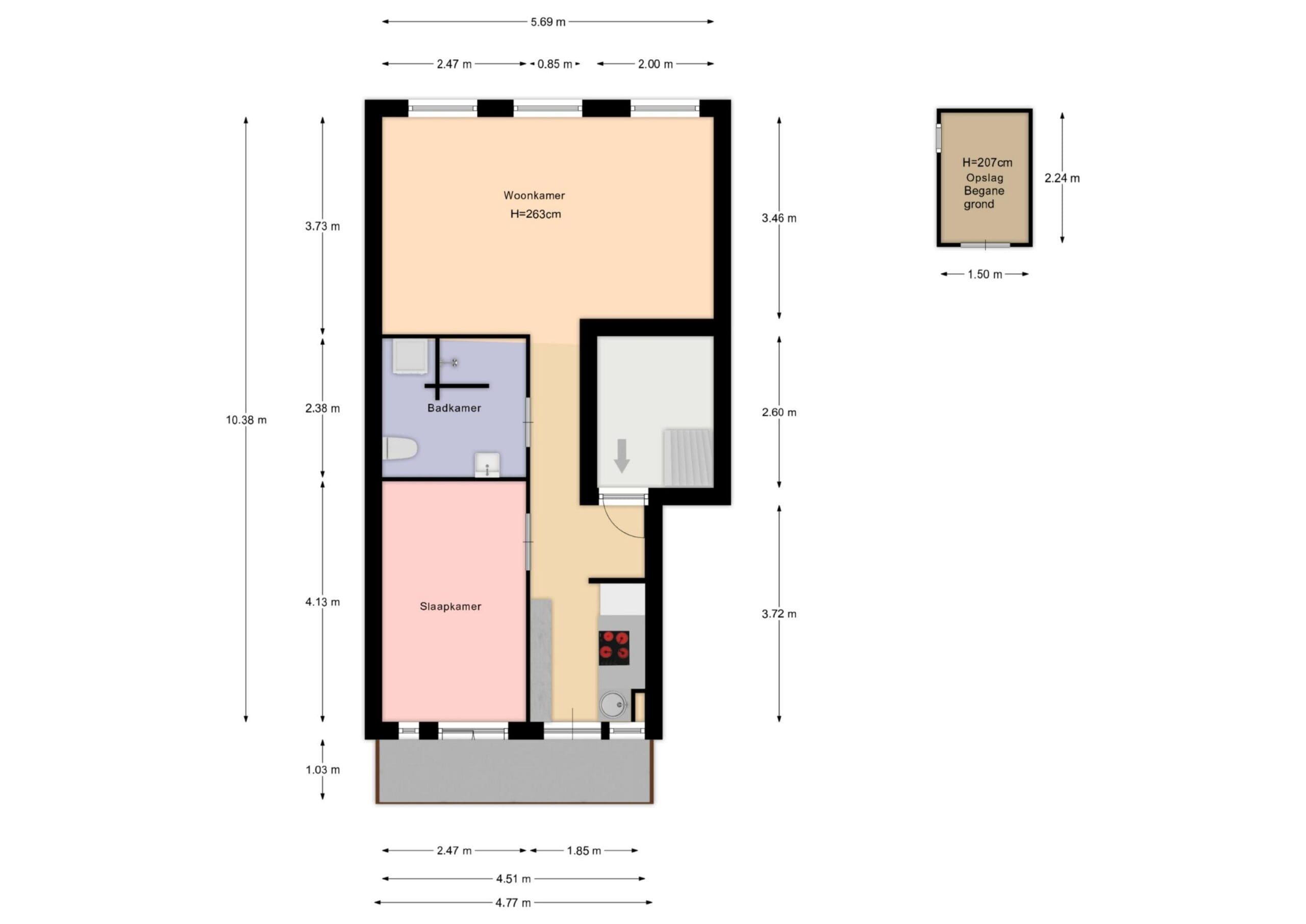 Should the measurements not (fully) comply with the standard, the buyer accepts this. The buyer has been given ample opportunity to independently verify the measurements. Differences in the stated size and dimensions do not grant either party any rights, including the right to adjust the purchase price. The seller and their agent accept no liability in this regard.
