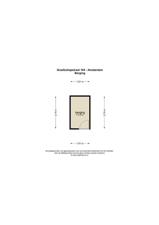 De gebruiksoppervlakte is berekend conform de branche vastgestelde BBMI/NEN 2580- norm. De oppervlakte kan derhalve afwijken van vergelijkbare panden en/of oude referenties. Dit heeft vooral te maken met deze (nieuwe) rekenmethode. Huurder verklaart voldoende te zijn geïnformeerd over de hiervoor bedoelde normering. Verhuurder en diens makelaar doen hun uiterste best de juiste oppervlakte en inhoud te berekenen aan de hand van eigen metingen en dit zoveel mogelijk te ondersteunen door het plaatsen van plattegronden met maatvoering. Mocht de maatvoering onverhoopt niet (volledig) overeenkomstig de normering zijn vastgesteld, wordt dit door huurder aanvaard. Huurder is voldoende in de gelegenheid gesteld de maatvoering zelf te (laten) controleren. Verschillen in de opgegeven maat en grootte geven geen der partijen enig recht, zo ook niet op aanpassing van de huurprijs. Verhuurder en diens makelaar aanvaarden geen enkele aansprakelijkheid in deze.