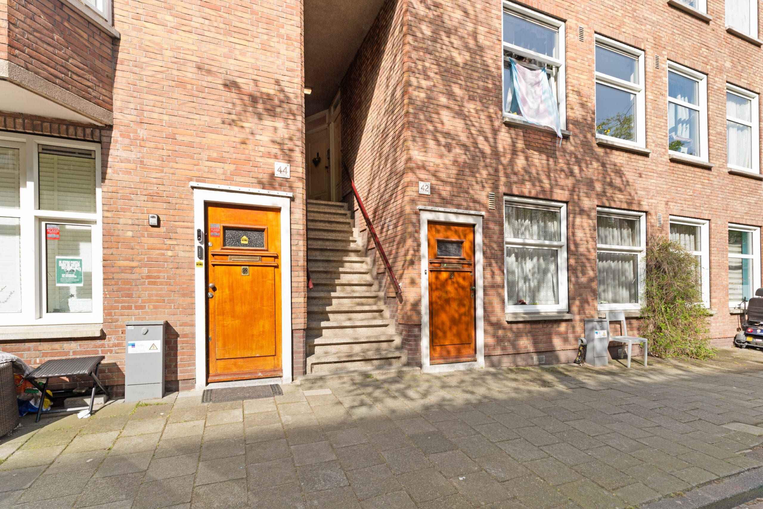 Via het portiek met trap bereik je het ruime en verzorgde trappenhuis, dat toegang geeft tot de woning op de tweede verdieping.