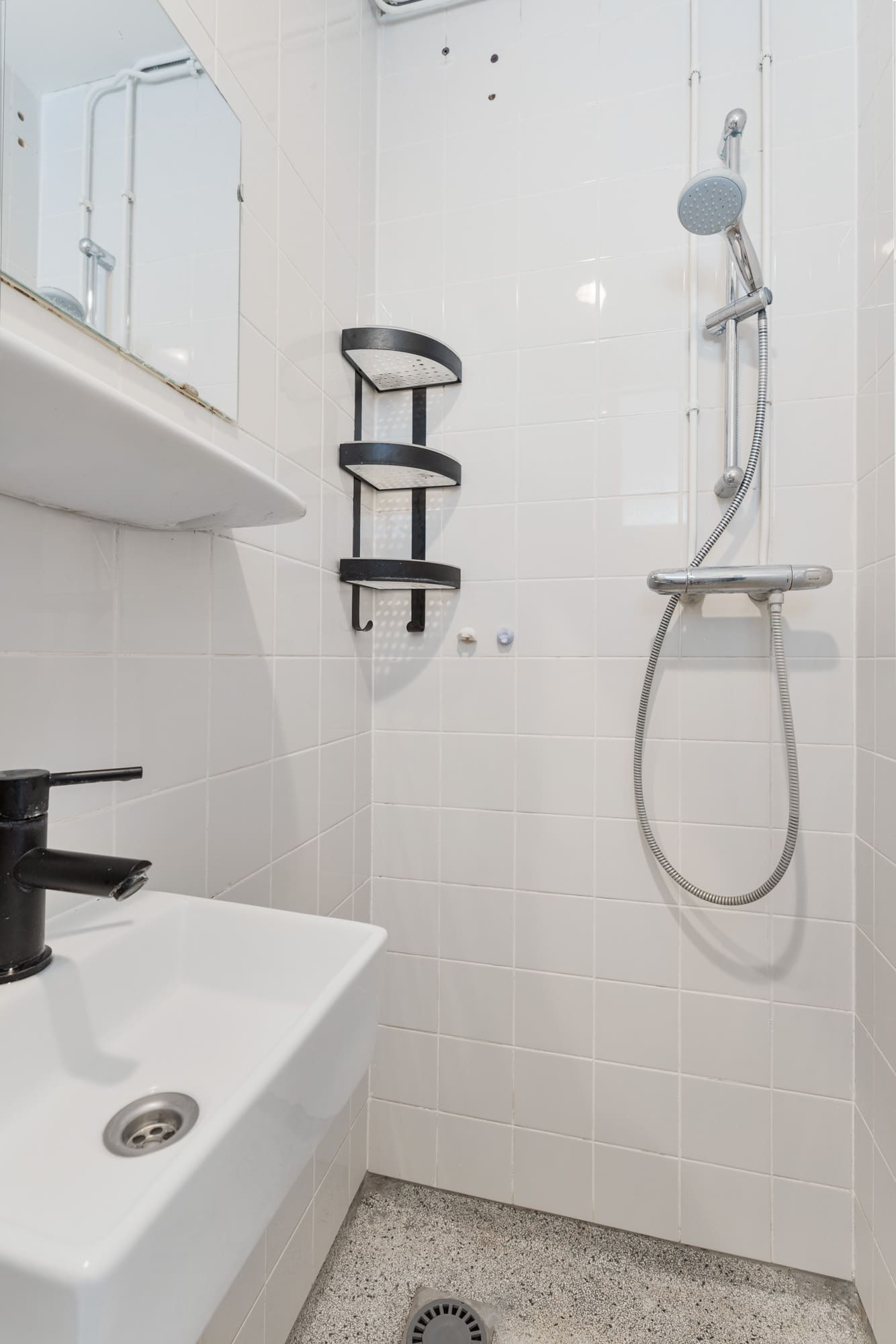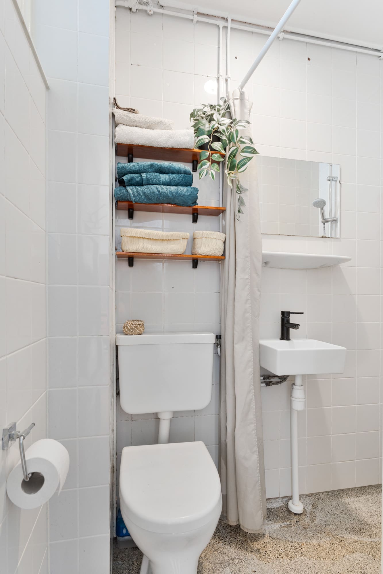 De centraal gelegen badkamer is uitgerust met een toilet, wastafel en douche.