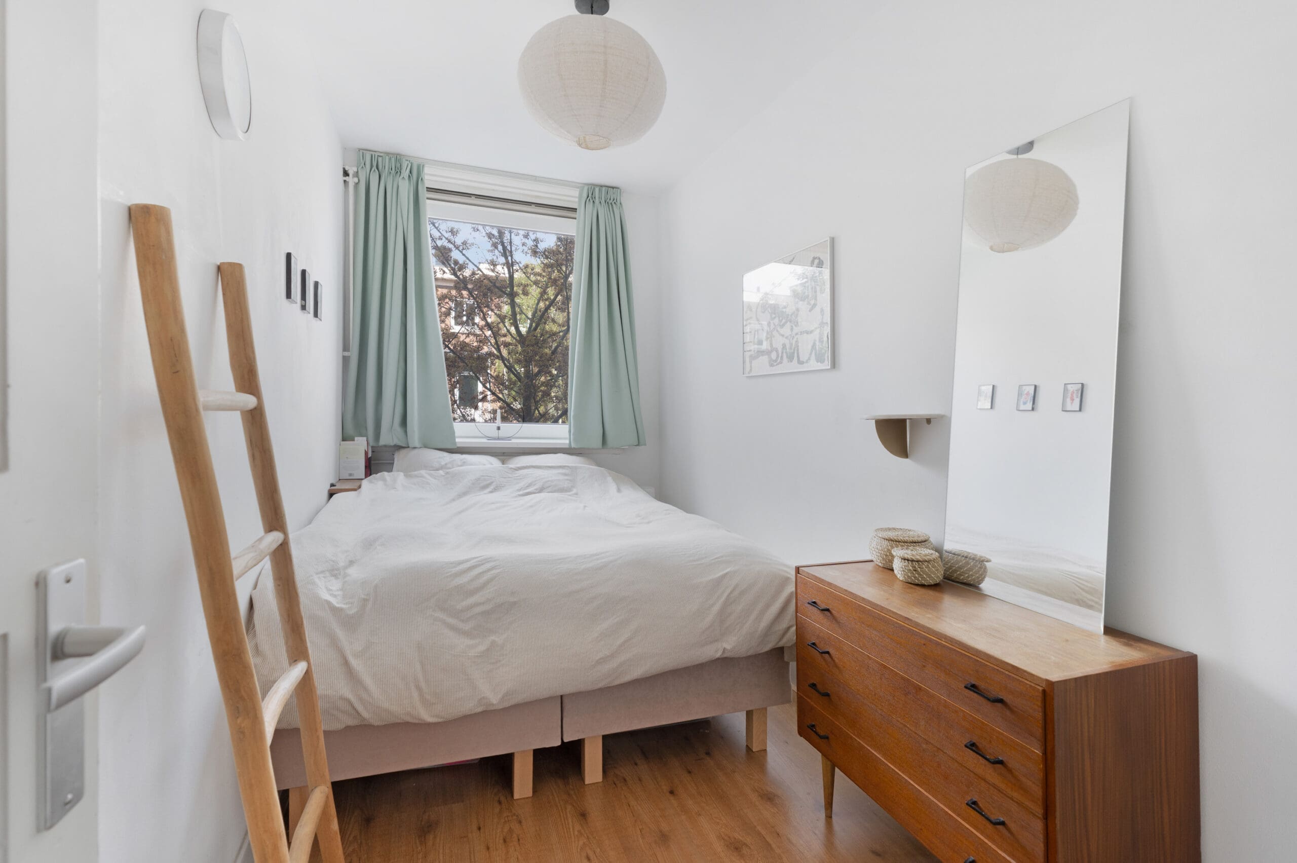 Vanuit deze kamer geven openslaande deuren toegang tot het balkon op het westen, waar je heerlijk kunt genieten van de avondzon. De ruimte beschikt daarnaast over inbouwkasten en een aparte deur naar de hal.