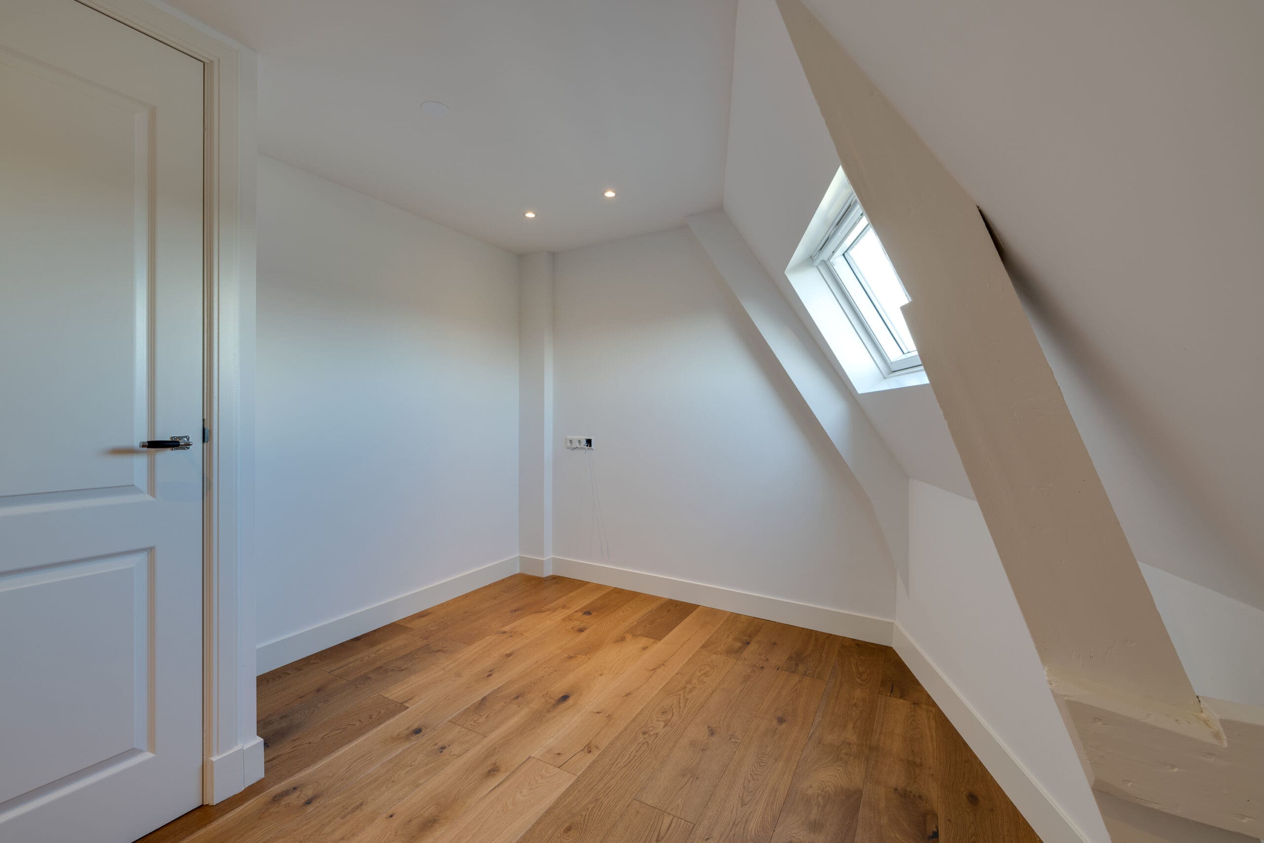 Elke ruimte is voorzien van dimbare inbouwspots. Door het gehele appartement ligt een fraaie, brede eikenhouten parketvloer met vloerverwarming en alle ramen zijn voorzien van dubbel glas.