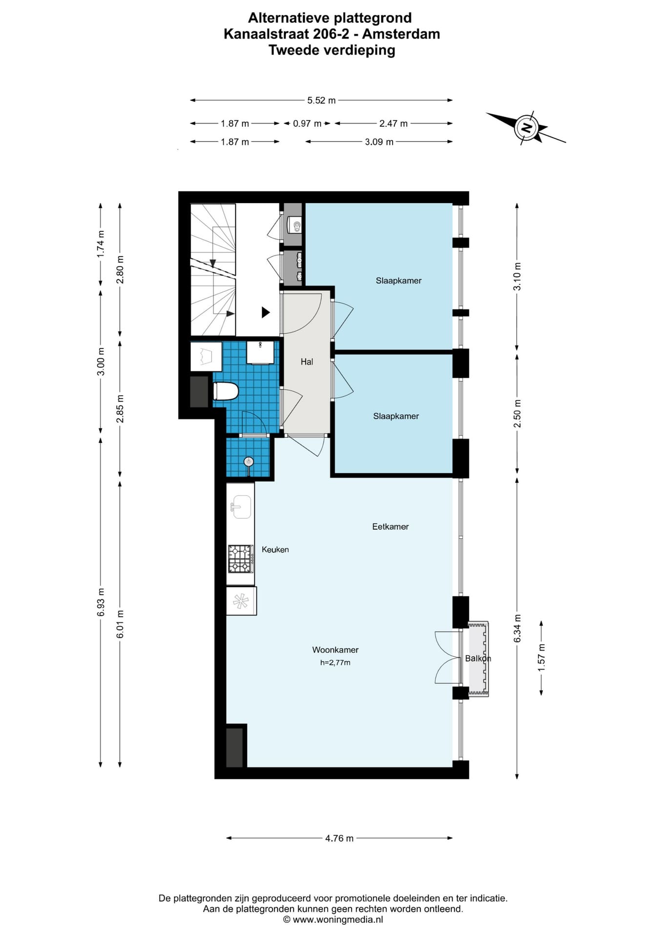 Oorspronkelijk is de woning ontworpen als 3-kamerappartement en deze indeling is eenvoudig te realiseren (zie optie plattegrond).