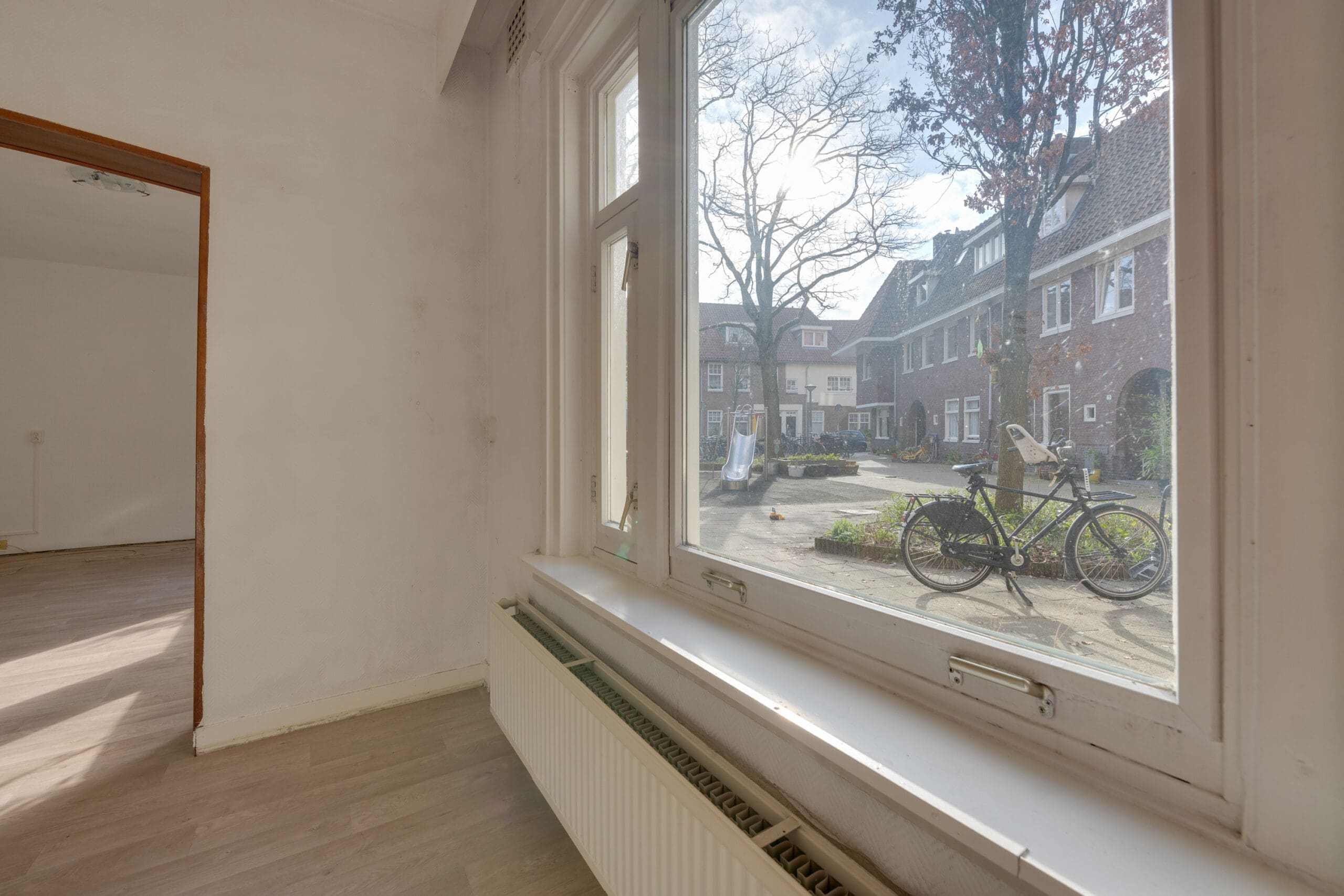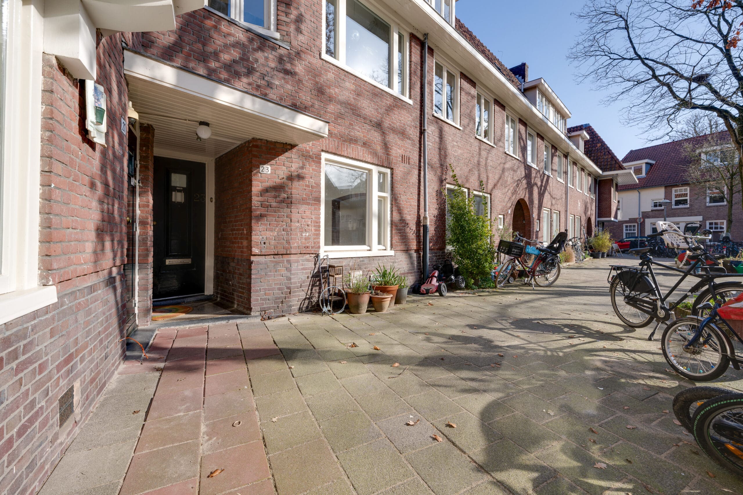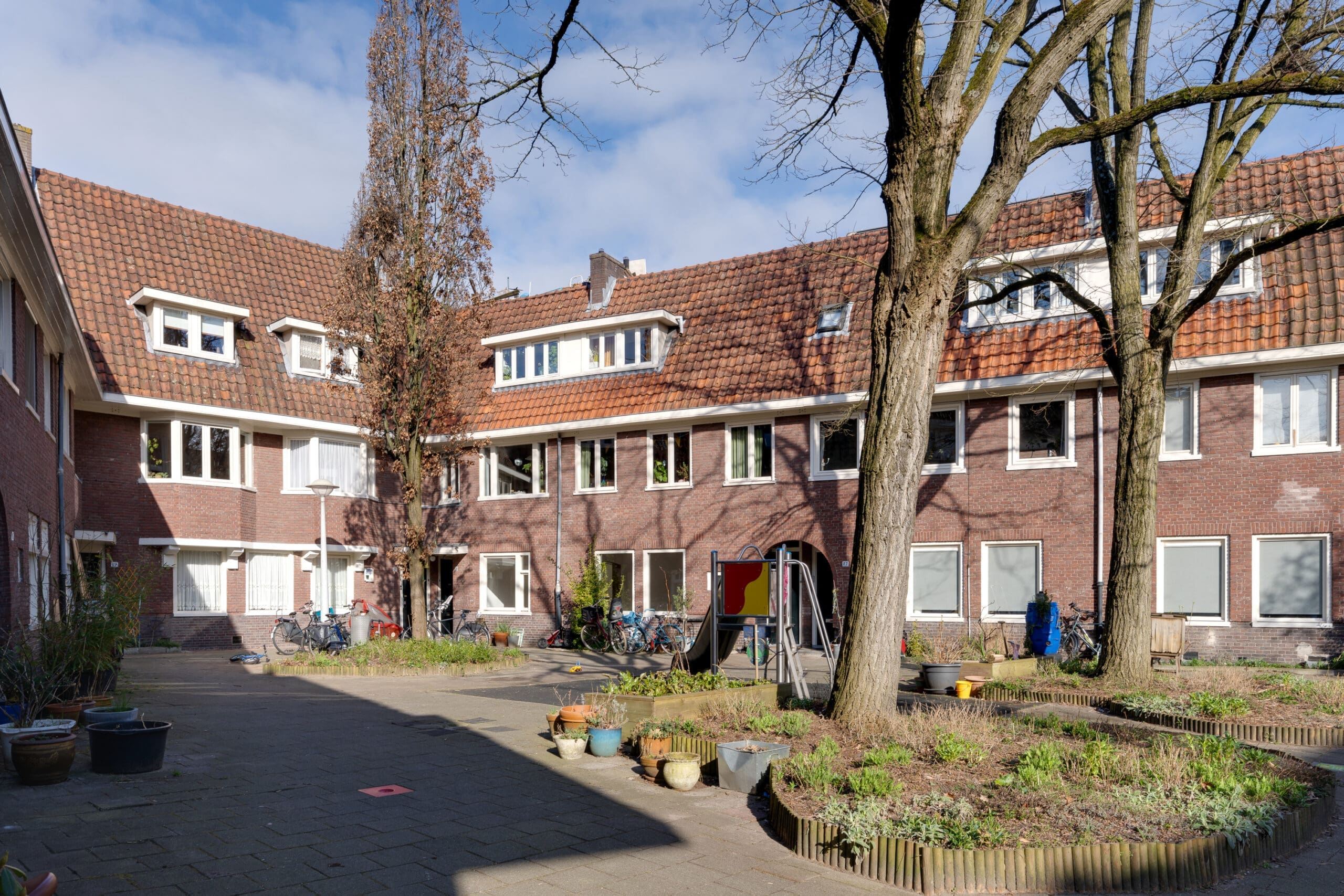De woning ligt in een gezellig hofje met groen, speeltoestellen en plek waar de fietsen kunnen worden geplaatst met fietsnietjes.