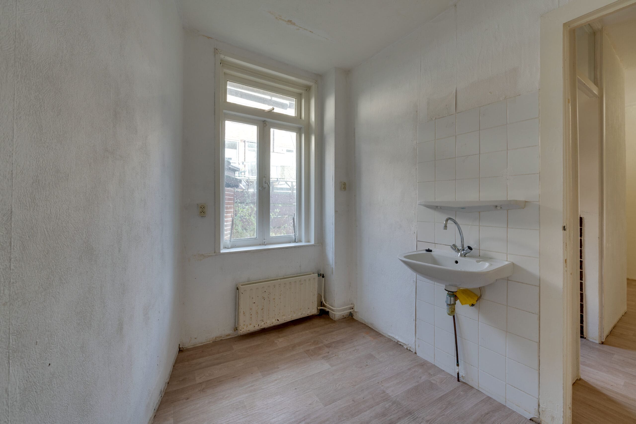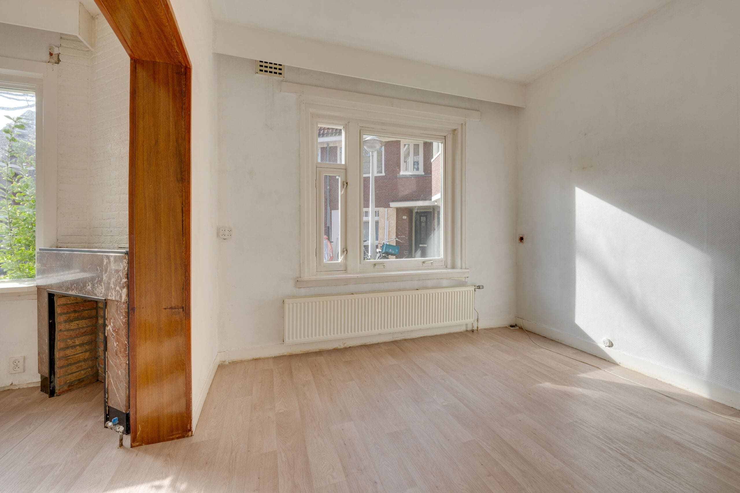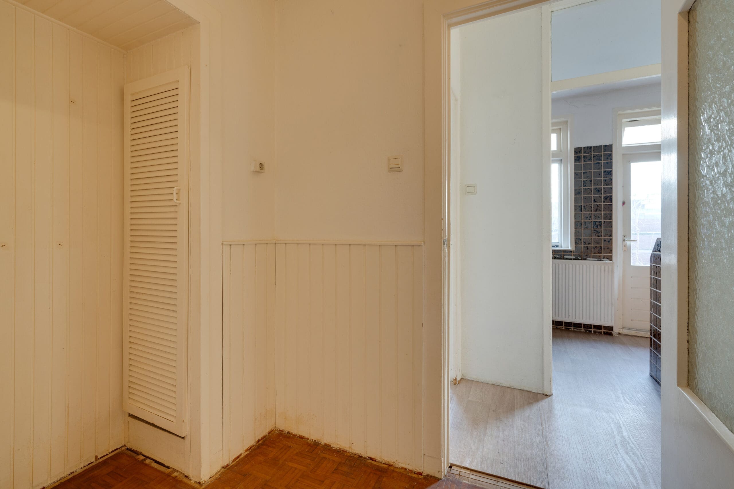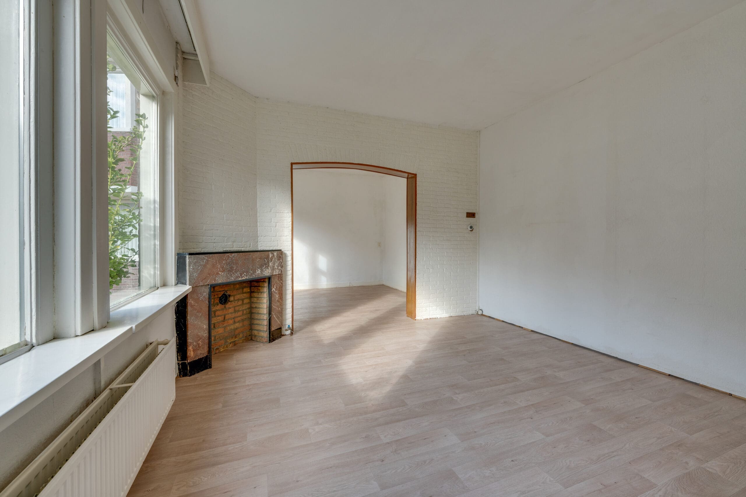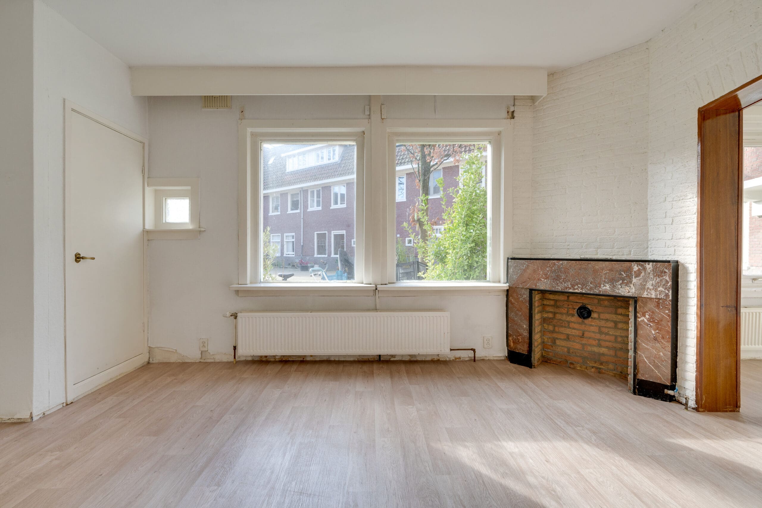Entrance in the hall with the meter cupboard, from which the corridor gives access to all rooms in the apartment. At the front is the spacious and bright living room with en suite dining room. With a view of the cozy courtyard, this is a perfect space to relax and create cozy living room.