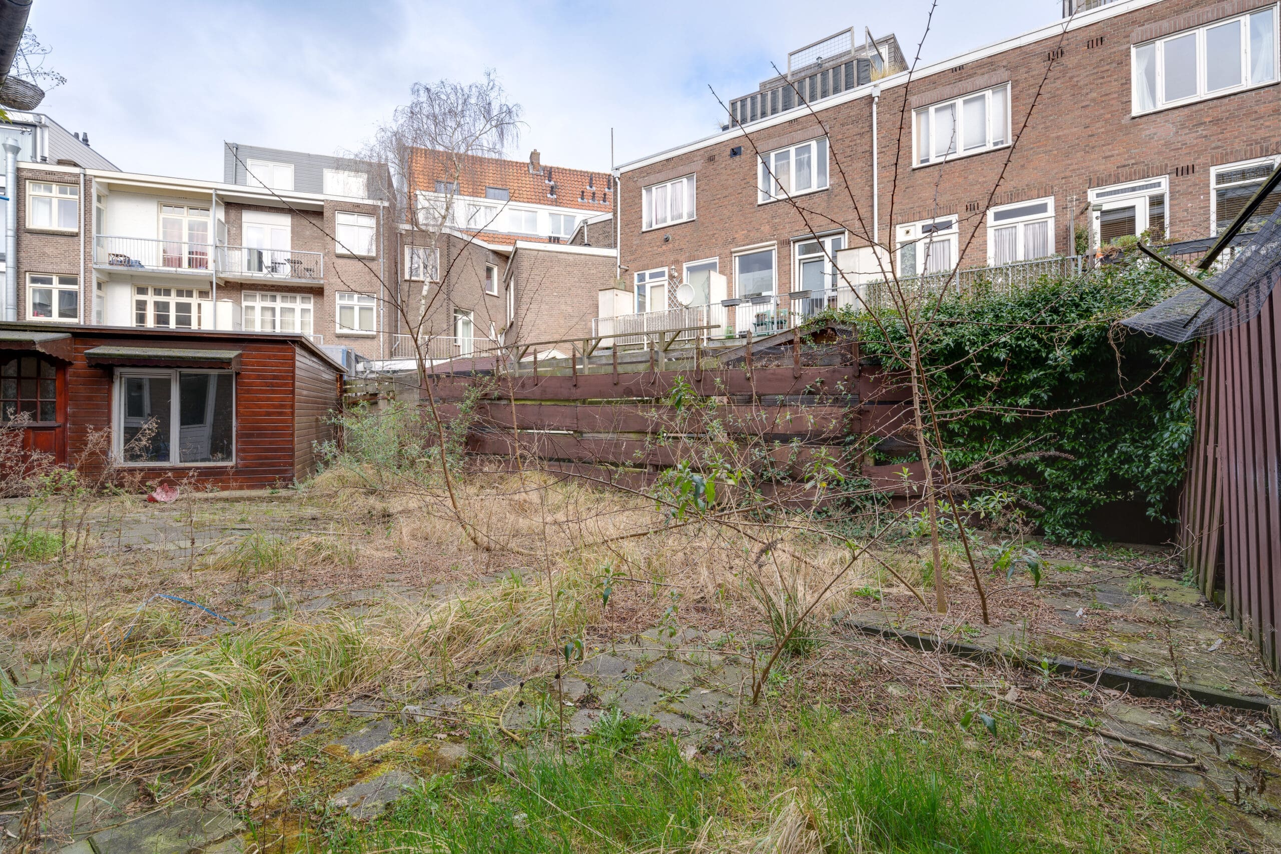 De grote tuin ligt op het noorden maar aan zon geen gebrek door de lage bouw eromheen en de grote oppervlakte.