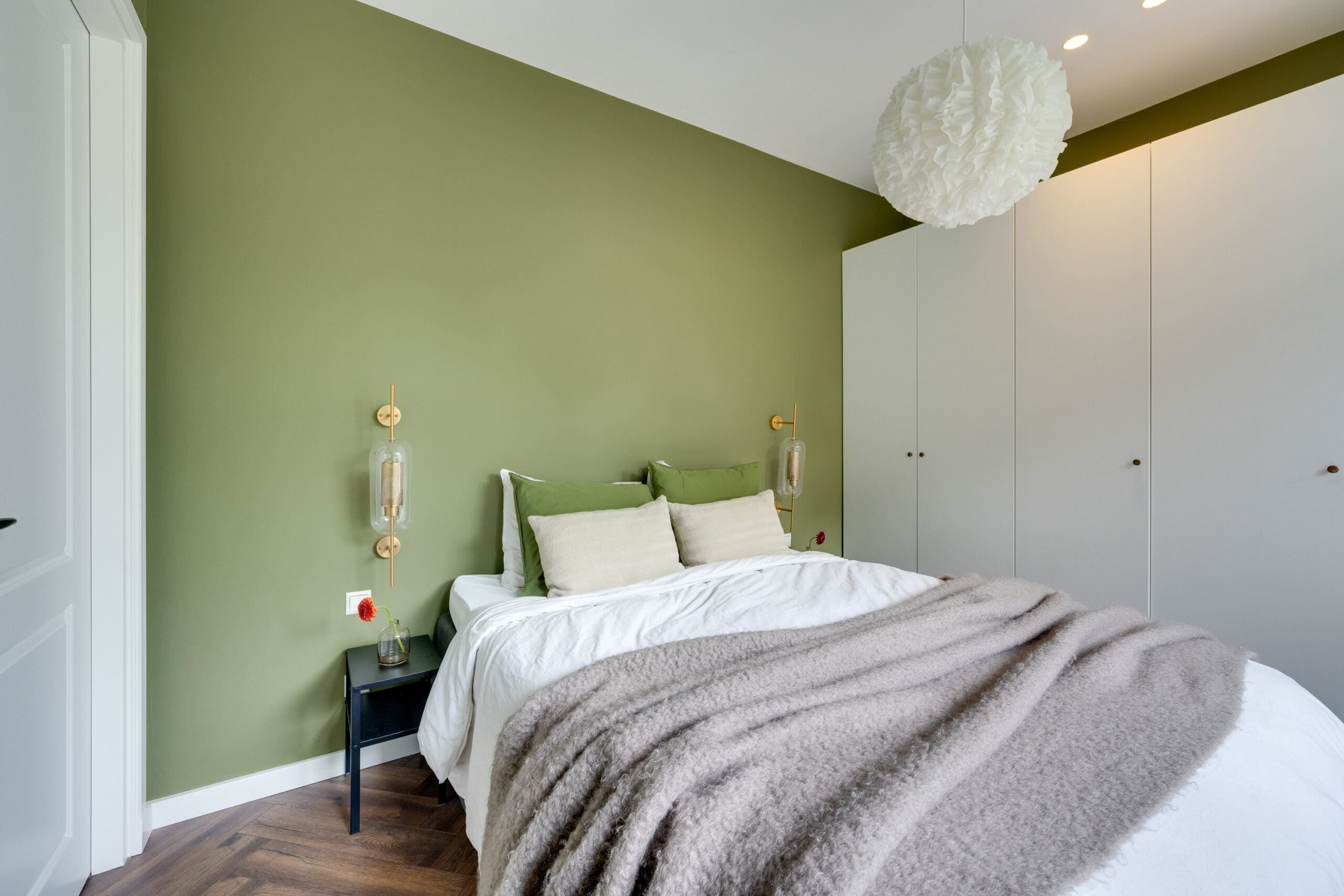 A beautiful herringbone laminate floor with underfloor heating runs throughout the entire apartment.The