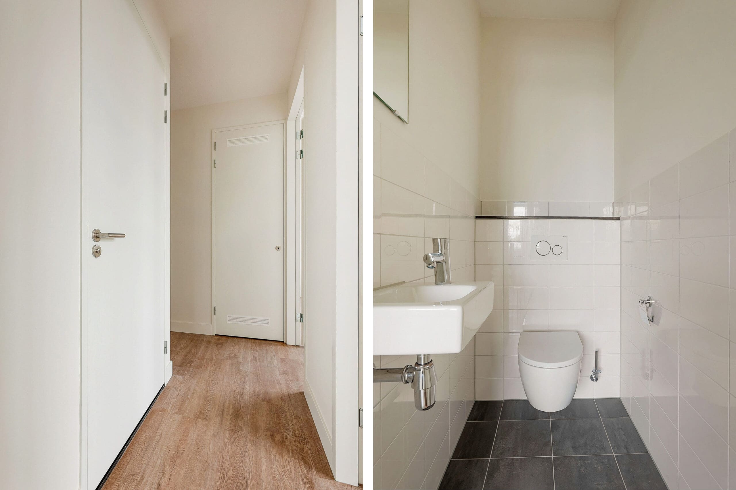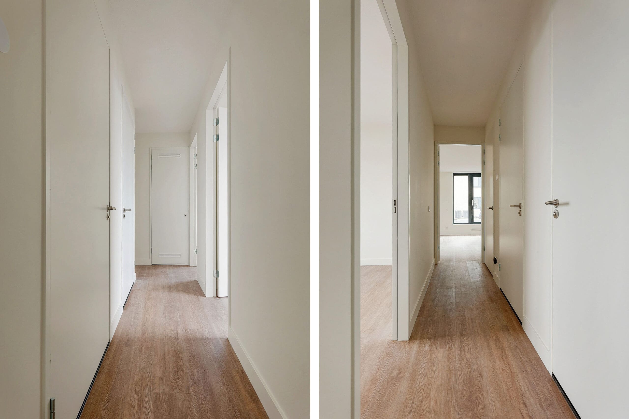 Via de gedeelde entree op de begane grond bereikt u met een trap de centrale hal op de tweede verdieping, waar de toegang tot de appartementen zich bevindt.