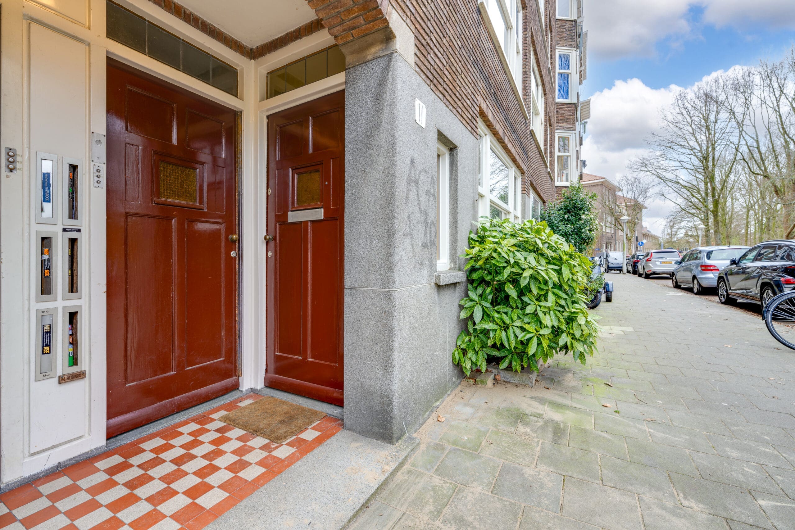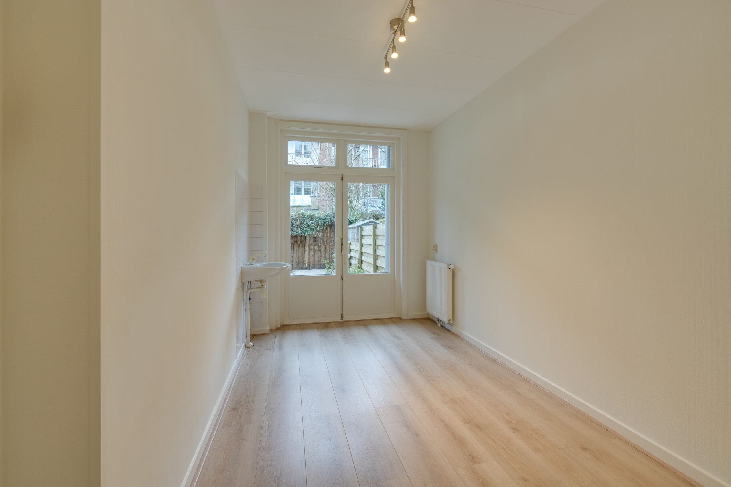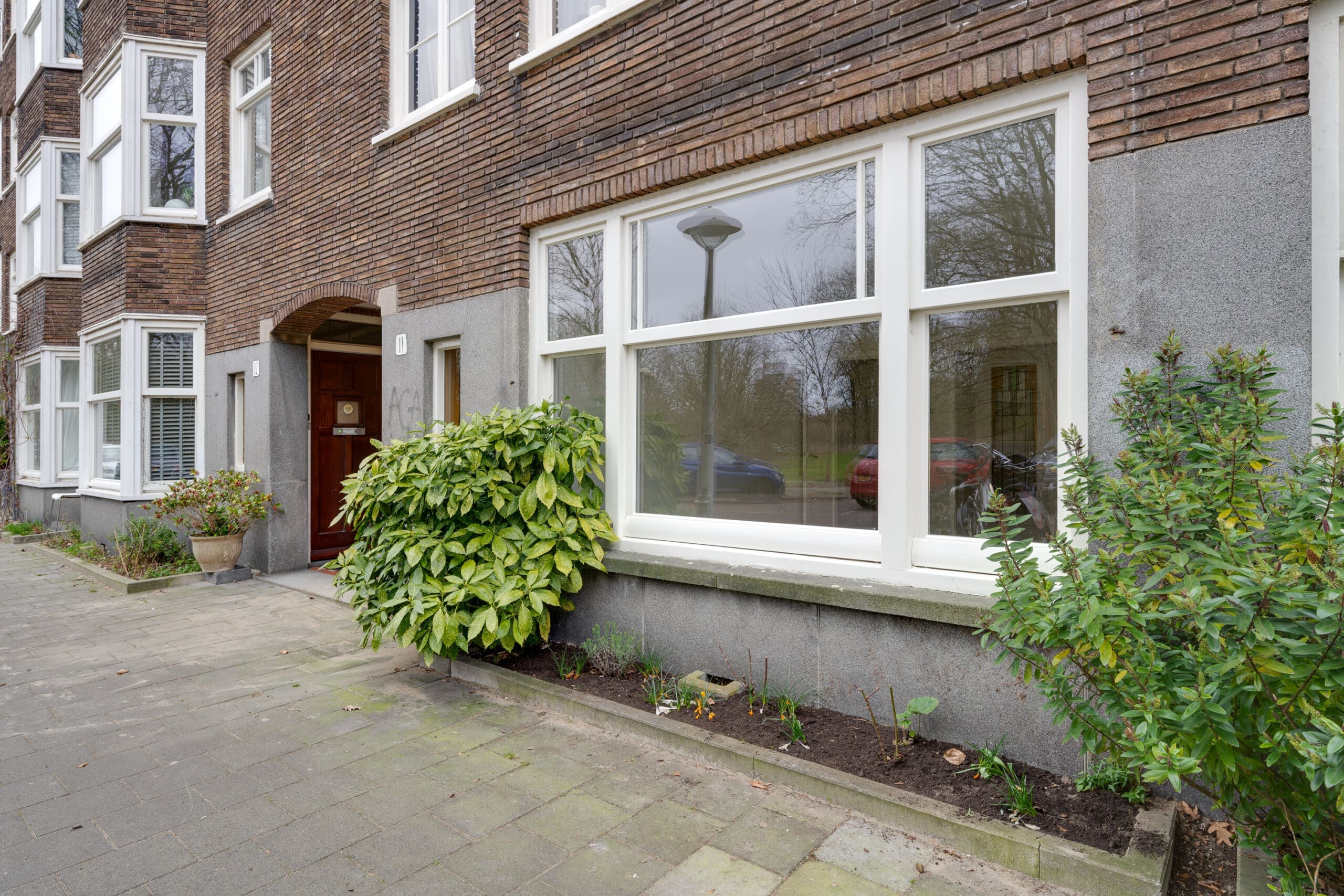 Through the private entrance with vestibule you reach the hall, which provides access to all rooms of the apartment. At the front is the living room, which offers a beautiful and unobstructed view of Rembrandtpark. The bathroom is centrally located in the apartment and at the rear are the two bedrooms and the kitchen. Both bedrooms have access to the garden facing east through French doors.