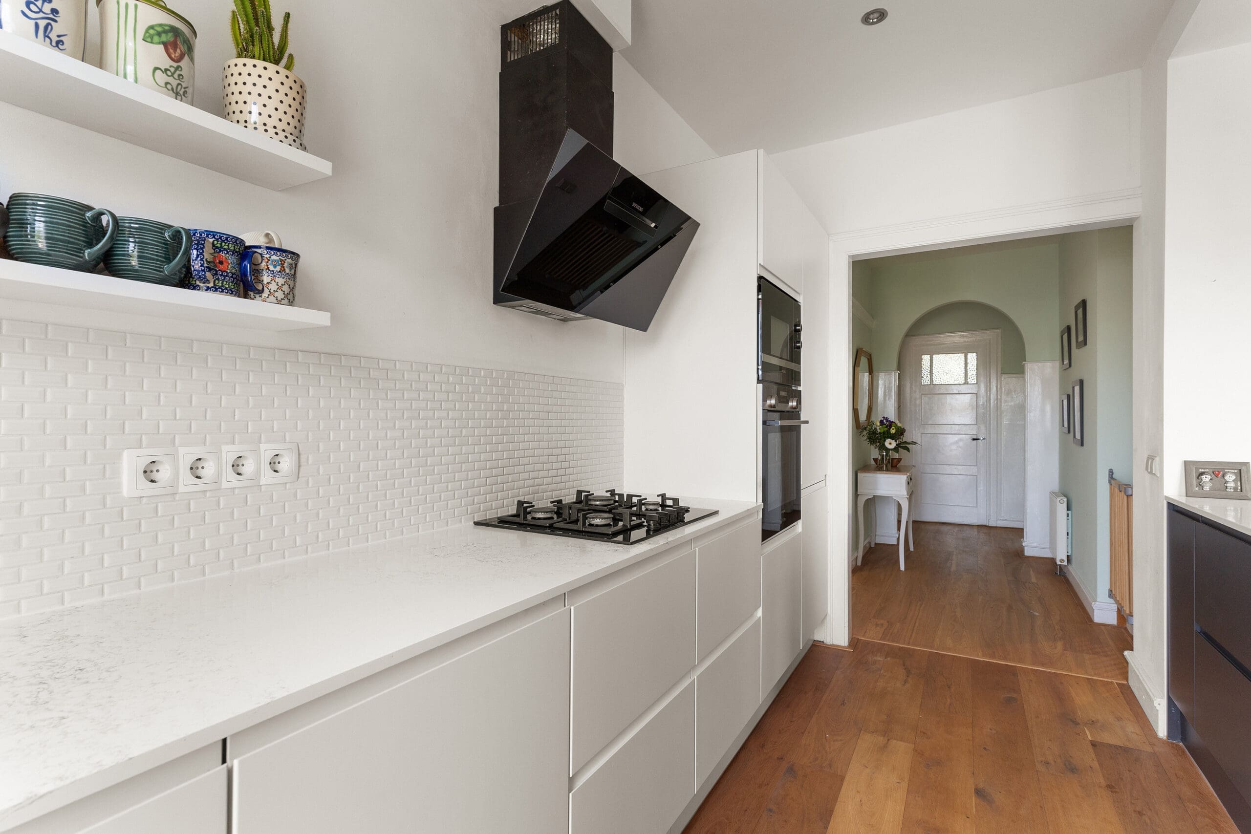 Via het gemeenschappelijke trappenhuis kom je binnen in een ruime hal met toegang tot alle vertrekken. De woonkamer is licht en ruim, met sfeervolle en suite deuren die de woonkamer en eetkamer van elkaar scheiden. De open keuken is compleet uitgerust met een oven, magnetron, koelkast, vriezer, kookplaat en vaatwasser, en geeft toegang tot een zonnig balkon aan de achterzijde. Op deze verdieping bevinden zich 3 slaapkamers: 2 aan de voorzijde (waarvan één momenteel in gebruik als inloopkast) en een ruime derde slaapkamer aan de achterzijde met toegang tot het balkon. Verder is er een badkamer met ligbad en een apart toilet in de hal.