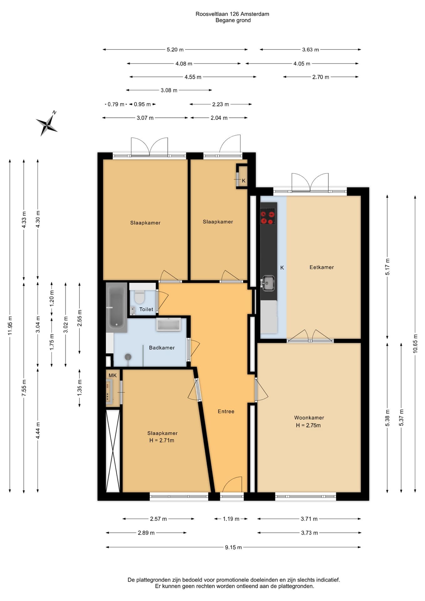 De gebruiksoppervlakte is berekend conform de branche vastgestelde BBMI/NEN 2580- norm. De oppervlakte kan derhalve afwijken van vergelijkbare panden en/of oude referenties. Dit heeft vooral te maken met deze (nieuwe) rekenmethode. Koper verklaart voldoende te zijn geïnformeerd over de hiervoor bedoelde normering. Verkoper en diens makelaar doen hun uiterste best de juiste oppervlakte en inhoud te berekenen aan de hand van eigen metingen en dit zoveel mogelijk te ondersteunen door het plaatsen van plattegronden met maatvoering. Mocht de maatvoering onverhoopt niet (volledig) overeenkomstig de normering zijn vastgesteld, wordt dit door koper aanvaard. Koper is voldoende in de gelegenheid gesteld de maatvoering zelf te (laten) controleren. Verschillen in de opgegeven maat en grootte geven geen der partijen enig recht, zo ook niet op aanpassing van de koopsom. Verkoper en diens makelaar aanvaarden geen enkele aansprakelijkheid in deze.