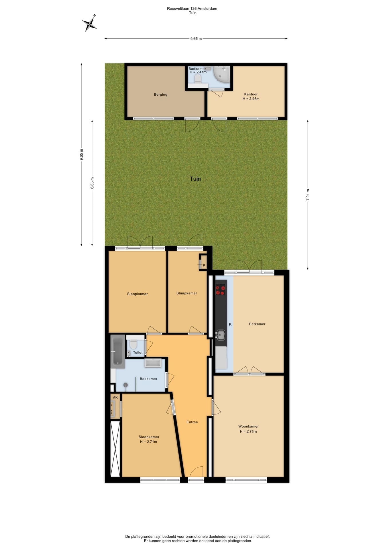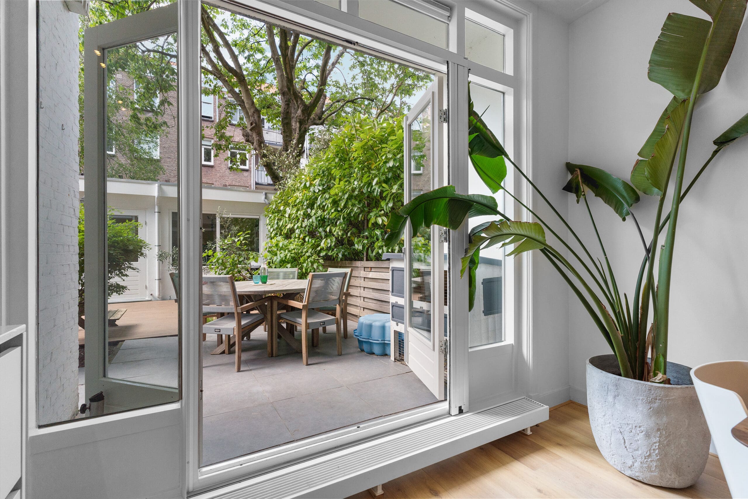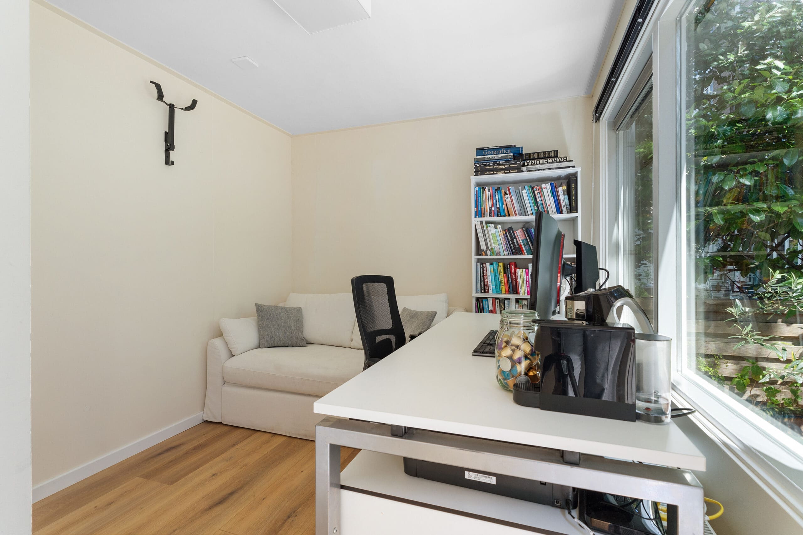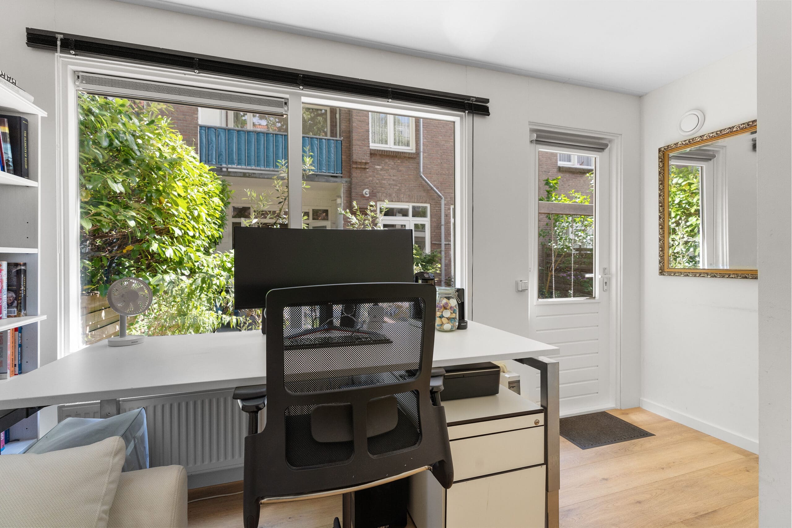 Lovely modern ground-floor apartment (100m² plus 23m² garden house) with large, sunny garden (65m²), 4 bedrooms, 2 bathrooms, and a cozy kitchen, perfectly suited for families, with adjoining living room. The garden house offers extra space and tranquility, with a second bathroom and two rooms—one currently used as a home office/guest room and one as a storage room—both suitable as bedrooms. The leasehold has been bought off until July 31, 2063, and then fixed under perpetual conditions.