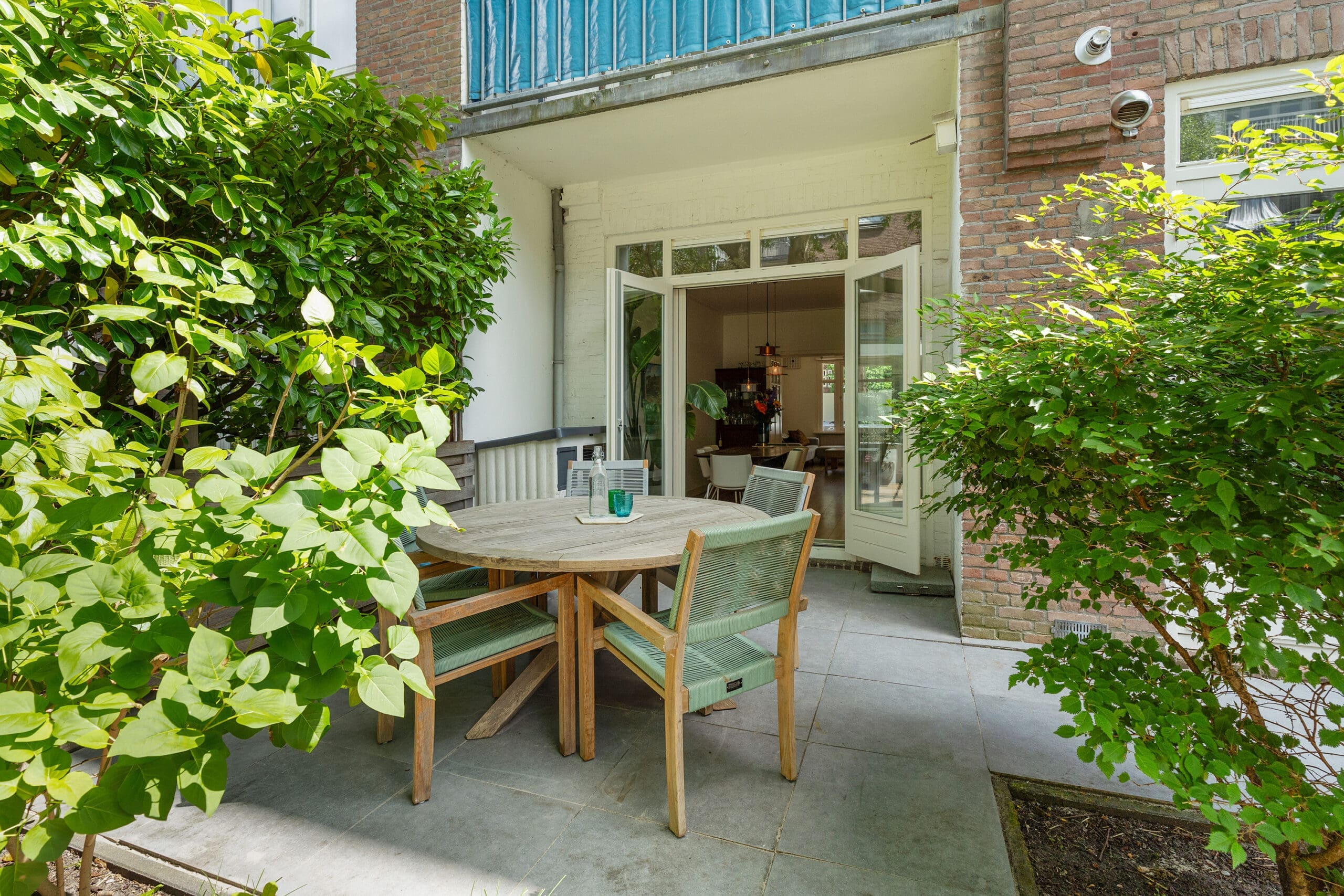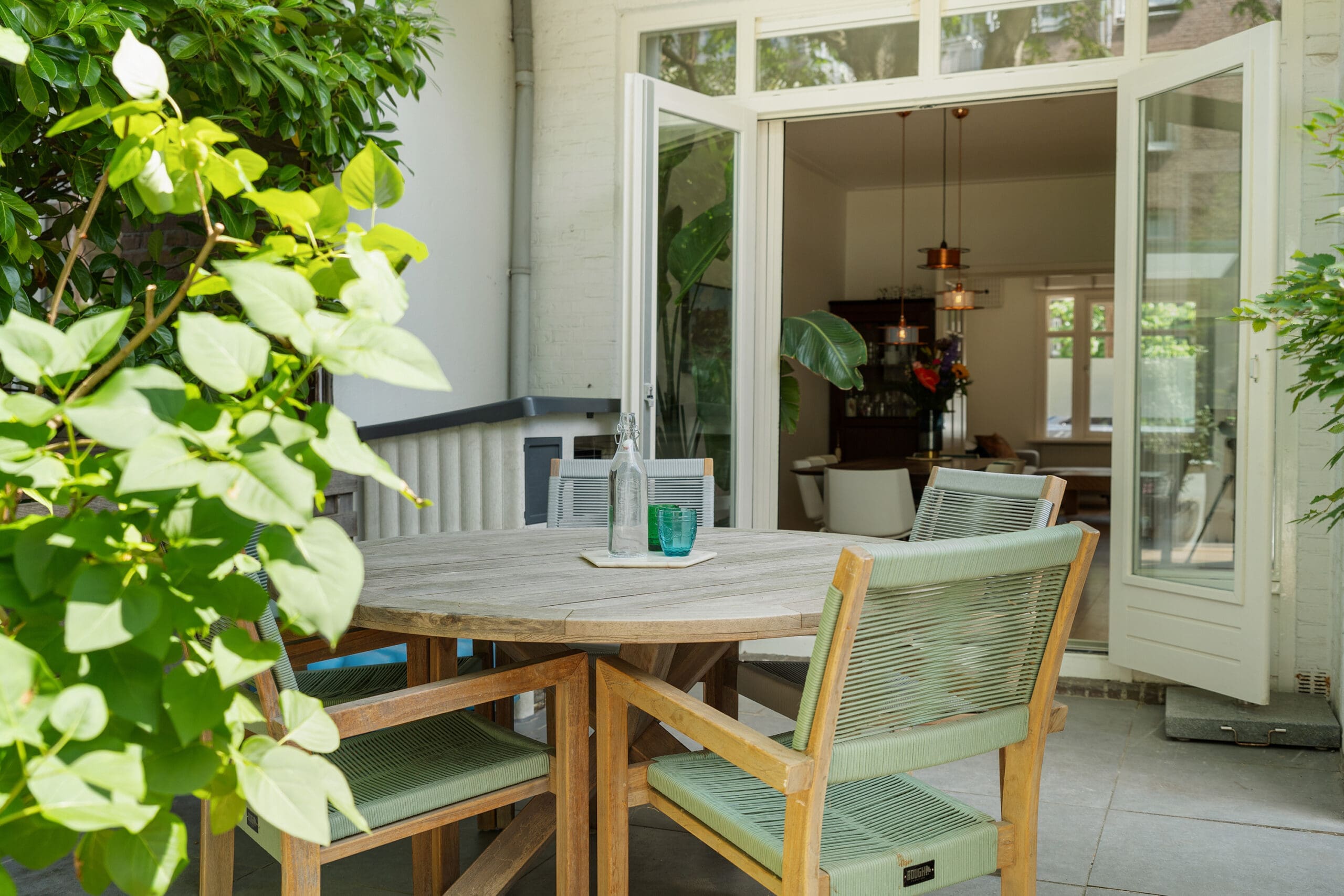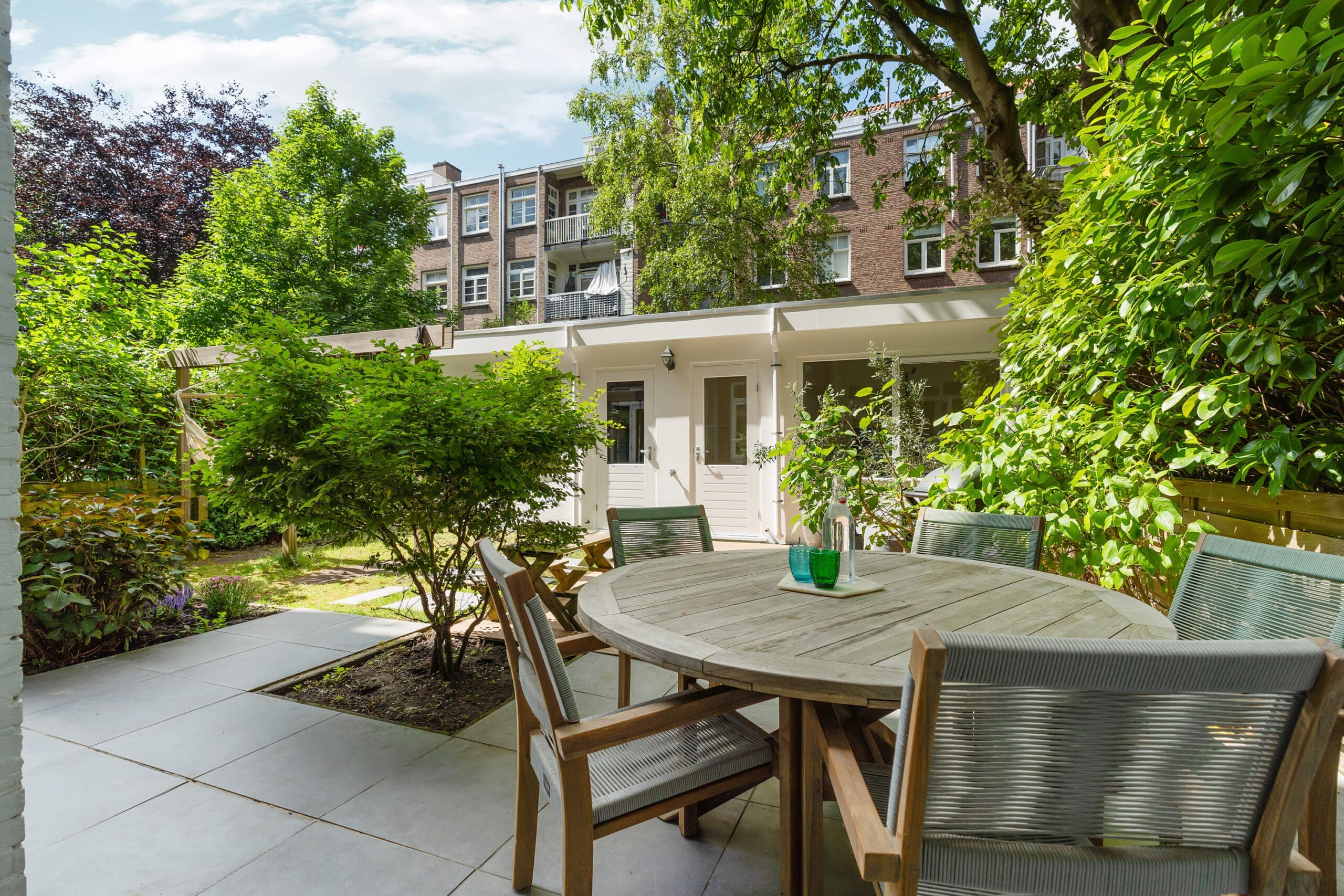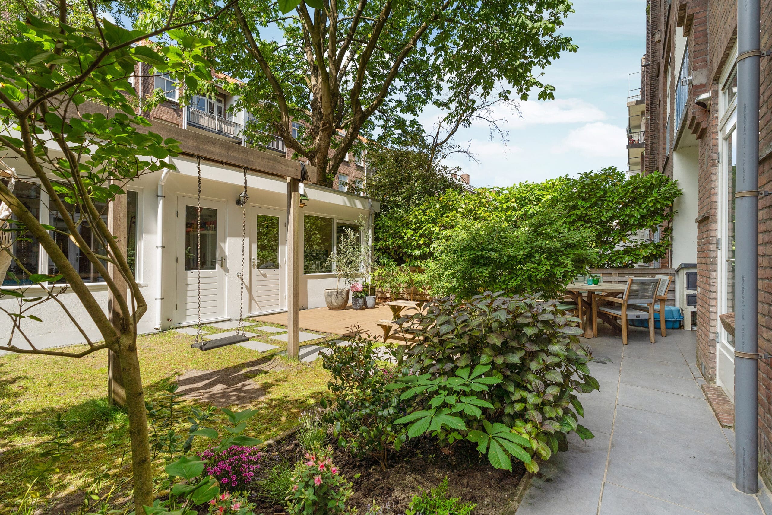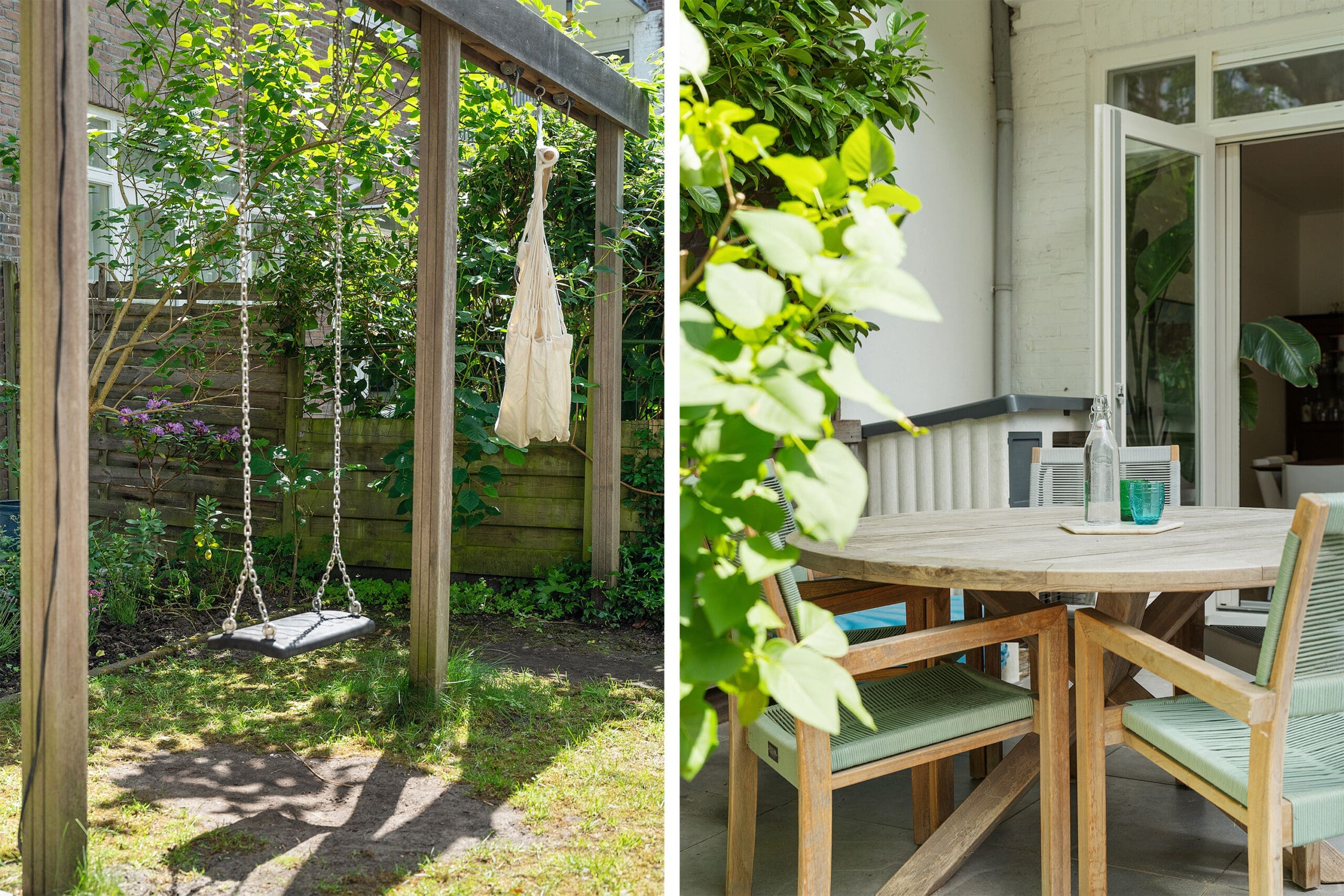 The garden has been professionally landscaped and includes a wooden pergola with two swings. From the terrace, you can enjoy the sun from mid-afternoon until the evening.