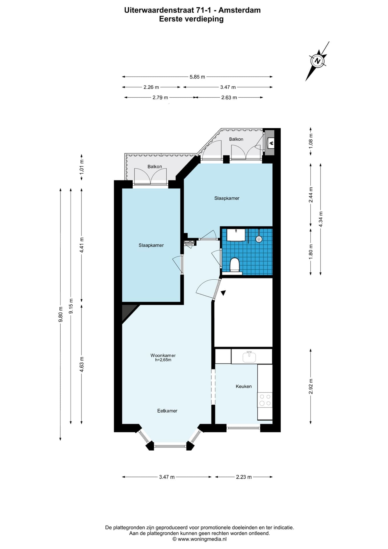 De gebruiksoppervlakte is berekend conform de branche vastgestelde BBMI/NEN 2580- norm. De oppervlakte kan derhalve afwijken van vergelijkbare panden en/of oude referenties. Dit heeft vooral te maken met deze (nieuwe) rekenmethode. Koper verklaart voldoende te zijn geïnformeerd over de hiervoor bedoelde normering. Verkoper en diens makelaar doen hun uiterste best de juiste oppervlakte en inhoud te berekenen aan de hand van eigen metingen en dit zoveel mogelijk te ondersteunen door het plaatsen van plattegronden met maatvoering. Mocht de maatvoering onverhoopt niet (volledig) overeenkomstig de normering zijn vastgesteld, wordt dit door koper aanvaard. Koper is voldoende in de gelegenheid gesteld de maatvoering zelf te (laten) controleren. Verschillen in de opgegeven maat en grootte geven geen der partijen enig recht, zo ook niet op aanpassing van de koopsom. Verkoper en diens makelaar aanvaarden geen enkele aansprakelijkheid in deze.