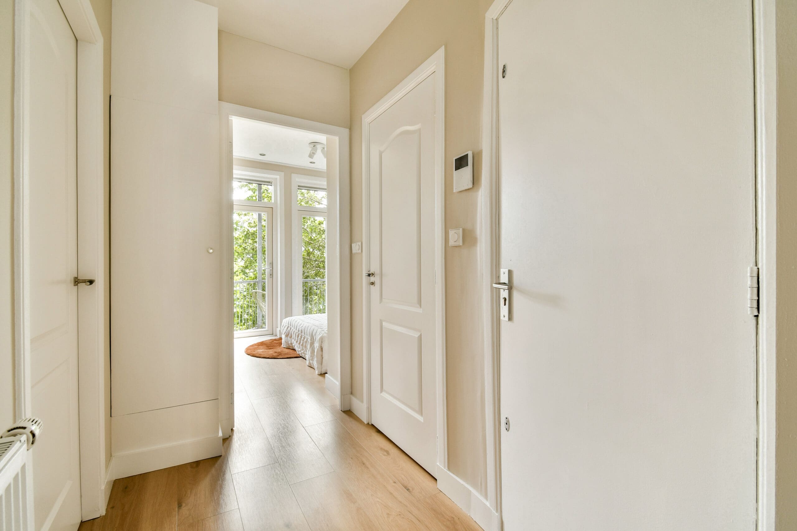 Via het gemeenschappelijk trappenhuis bereikt u de entree van het appartement op de eerste verdieping.