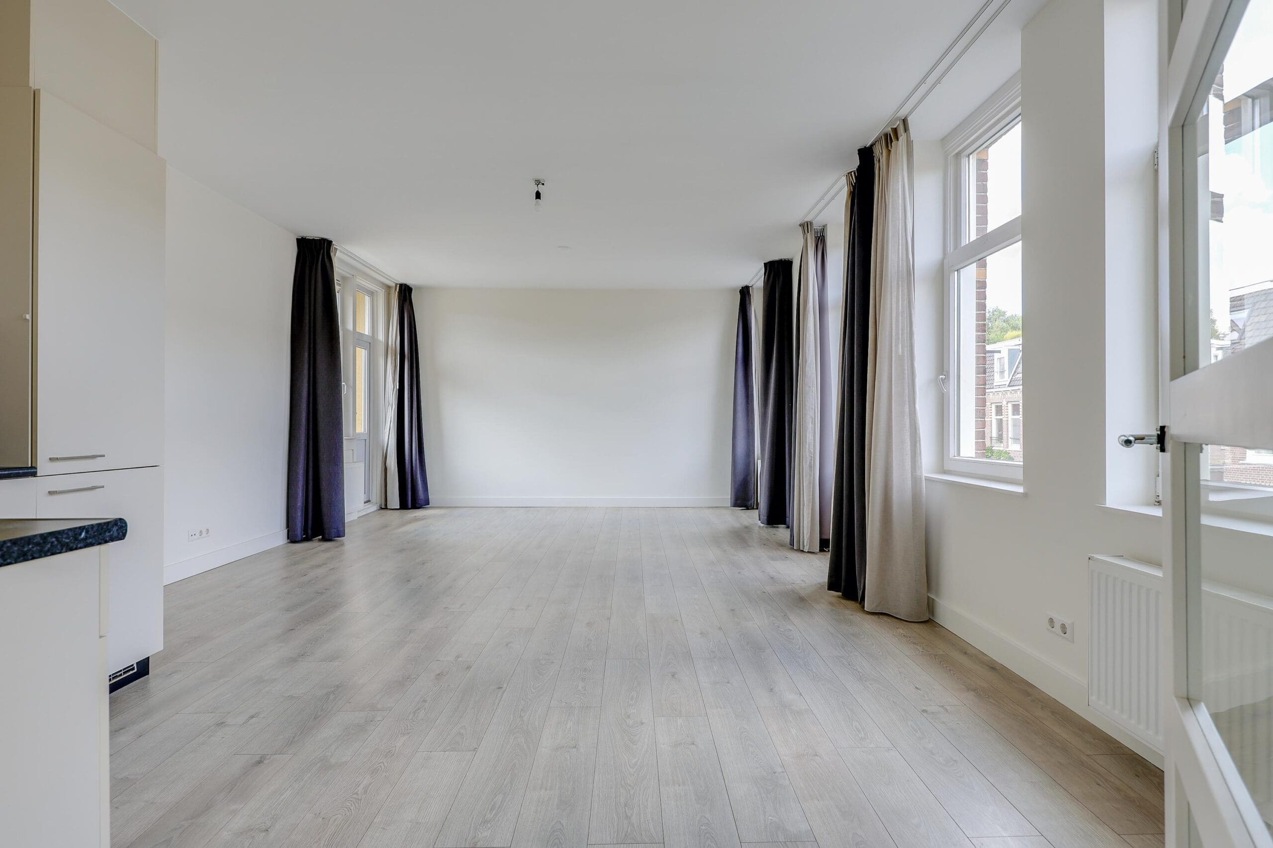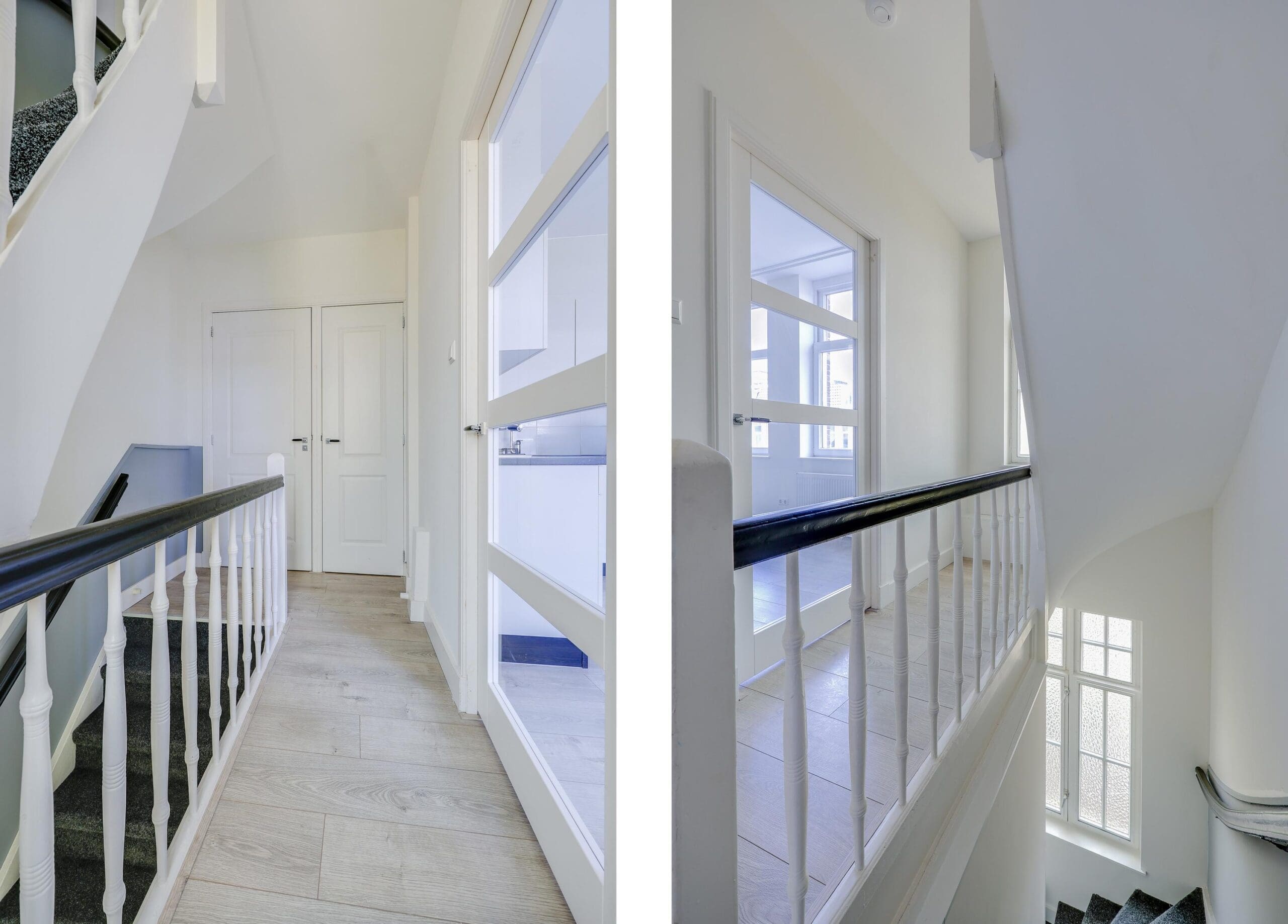Ruime woonkamer met open keuken. Deze leefruimte wordt ruimschoots verlicht door de grote raampartijen aan de voorzijde en geeft aan de achterzijde toegang tot het zonnige balkon op het zuiden. De keuken is voorzien van alle gewenste inbouwapparatuur, te verstaan; combi-oven, koel-/vriescombinatie, vaatwasmachine en vierpits-gaskookplaat. In de hal is tevens een separaat toilet en wasruimte te vinden. Vanuit hier leidt het trappenhuis u verder naar de vierde en tevens bovenste verdieping.