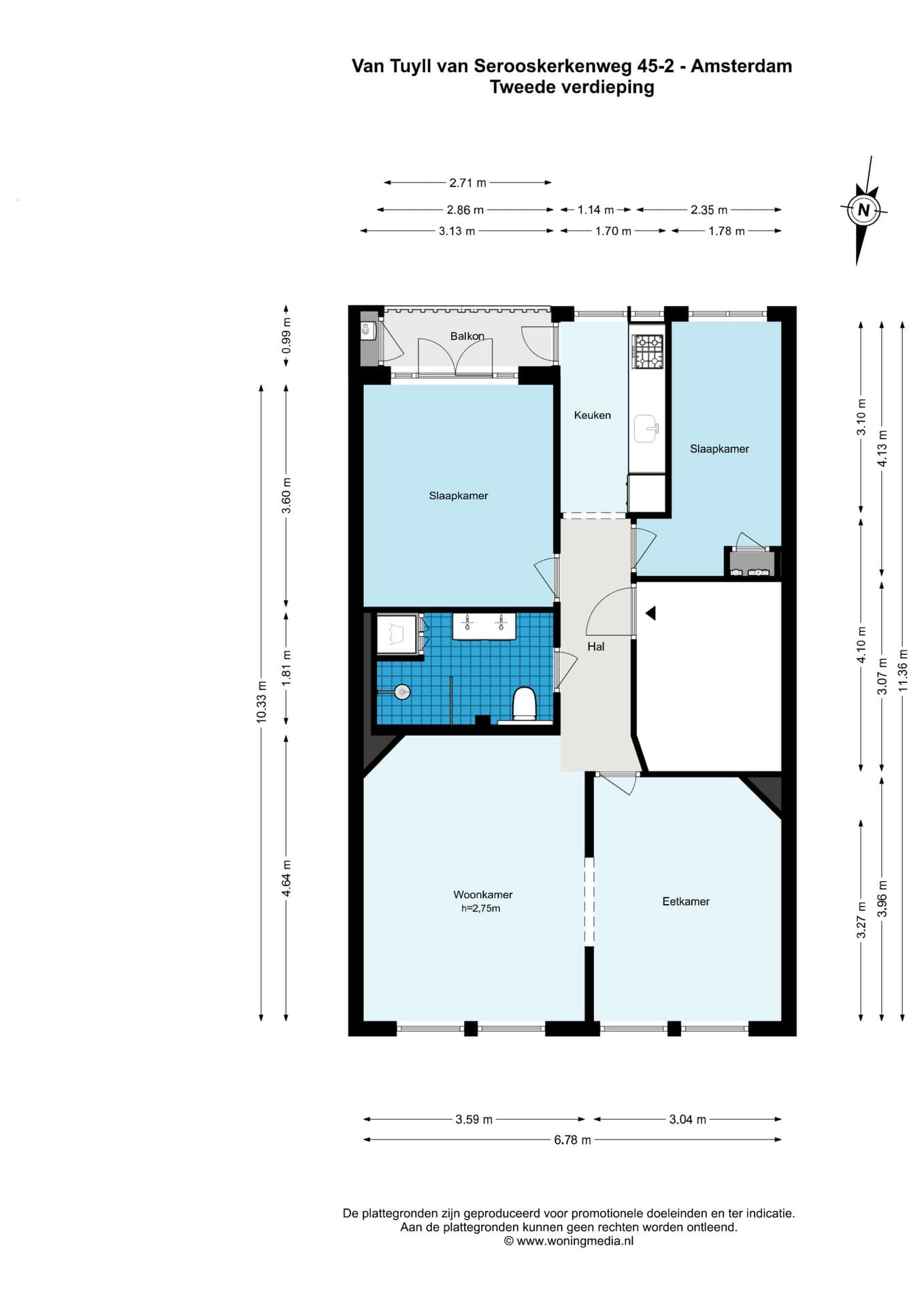 Entree, hal met toegang tot alle vertrekken. Aan de voorzijde van de woning bevindt zich de royale en lichte woonkamer met aansluitend de eetkamer. Aan de achterzijde zijn de moderne keuken en de twee ruime slaapkamers te vinden. Zowel de keuken als de master bedroom geven toegang tot een zonnig balkon op het zuidoosten. De keuken is voorzien van diverse inbouwapparatuur, waaronder een combi-oven, vaatwasser, koelkast met vriesvak en een 4-pits gaskookplaat. Centraal in het appartement bevindt zich de luxe badkamer, voorzien van een toilet, inloopdouche, dubbele wastafel met meubel en een aansluiting voor wasmachine en/of droger.