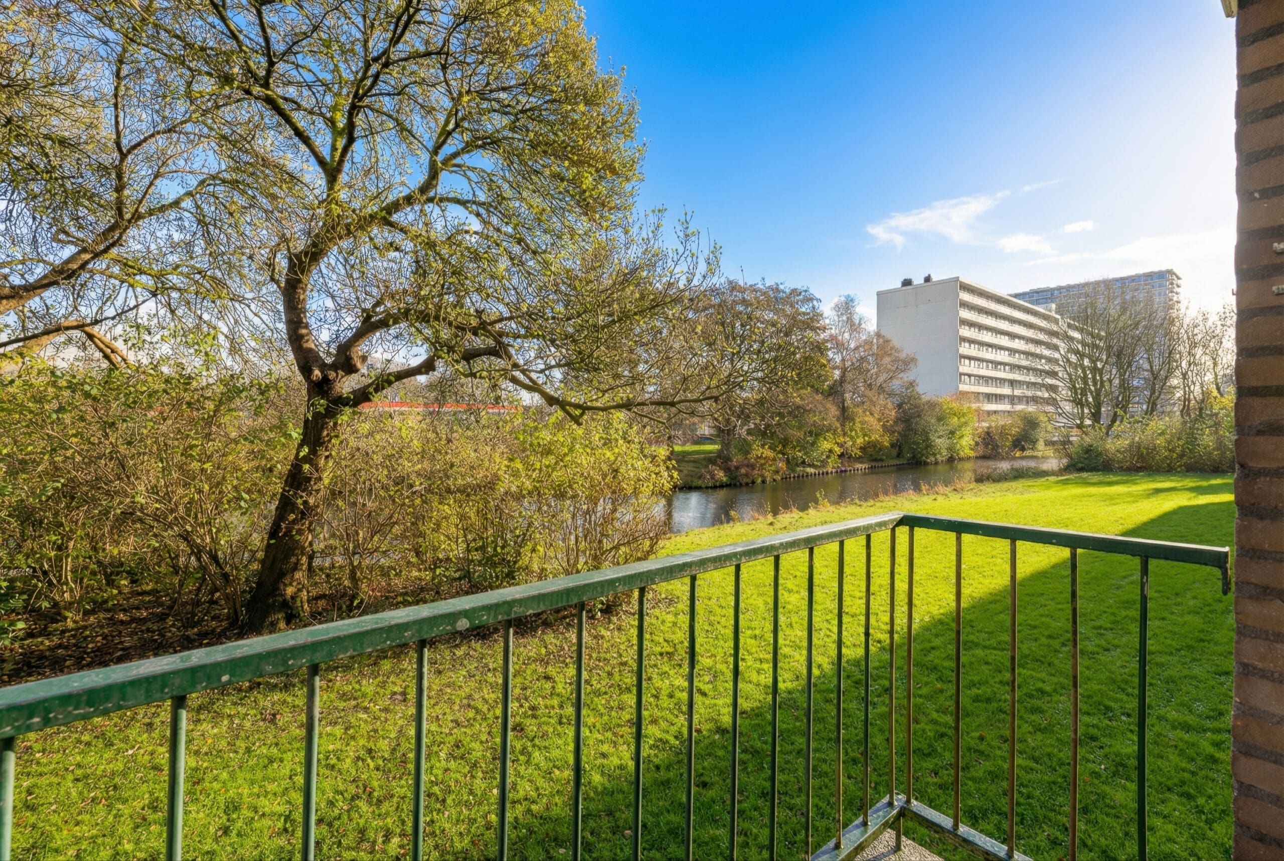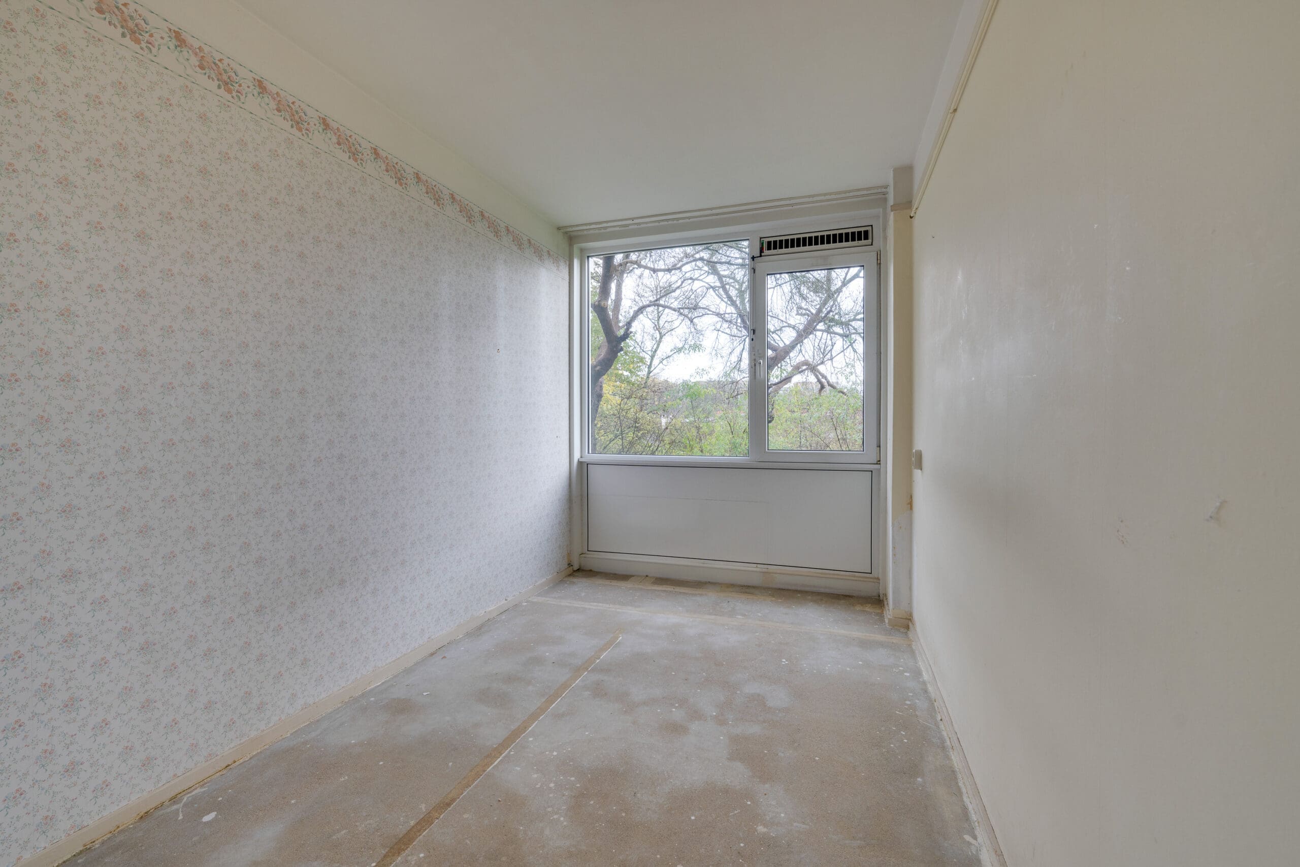 The central hallway provides access to all rooms. The bright and spacious living room with windows on both sides forms the heart of the apartment. Thanks to the large windows, you can enjoy beautiful natural light throughout the day and an open view of the greenery at the rear. The apartment has two bedrooms and no fewer than two balconies. The separate kitchen is situated at the front, as is the bathroom. The separate toilet is centrally located within the apartment.