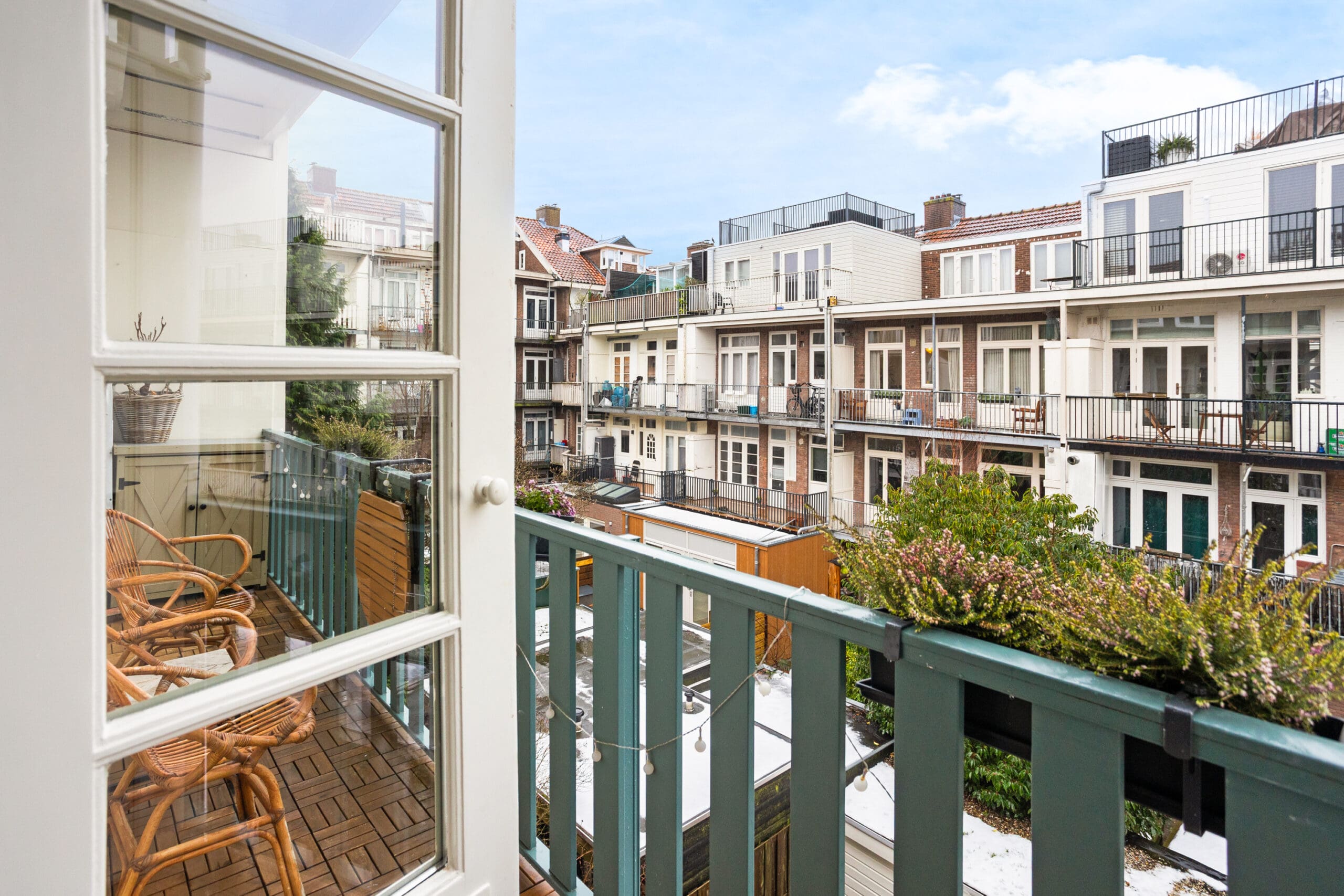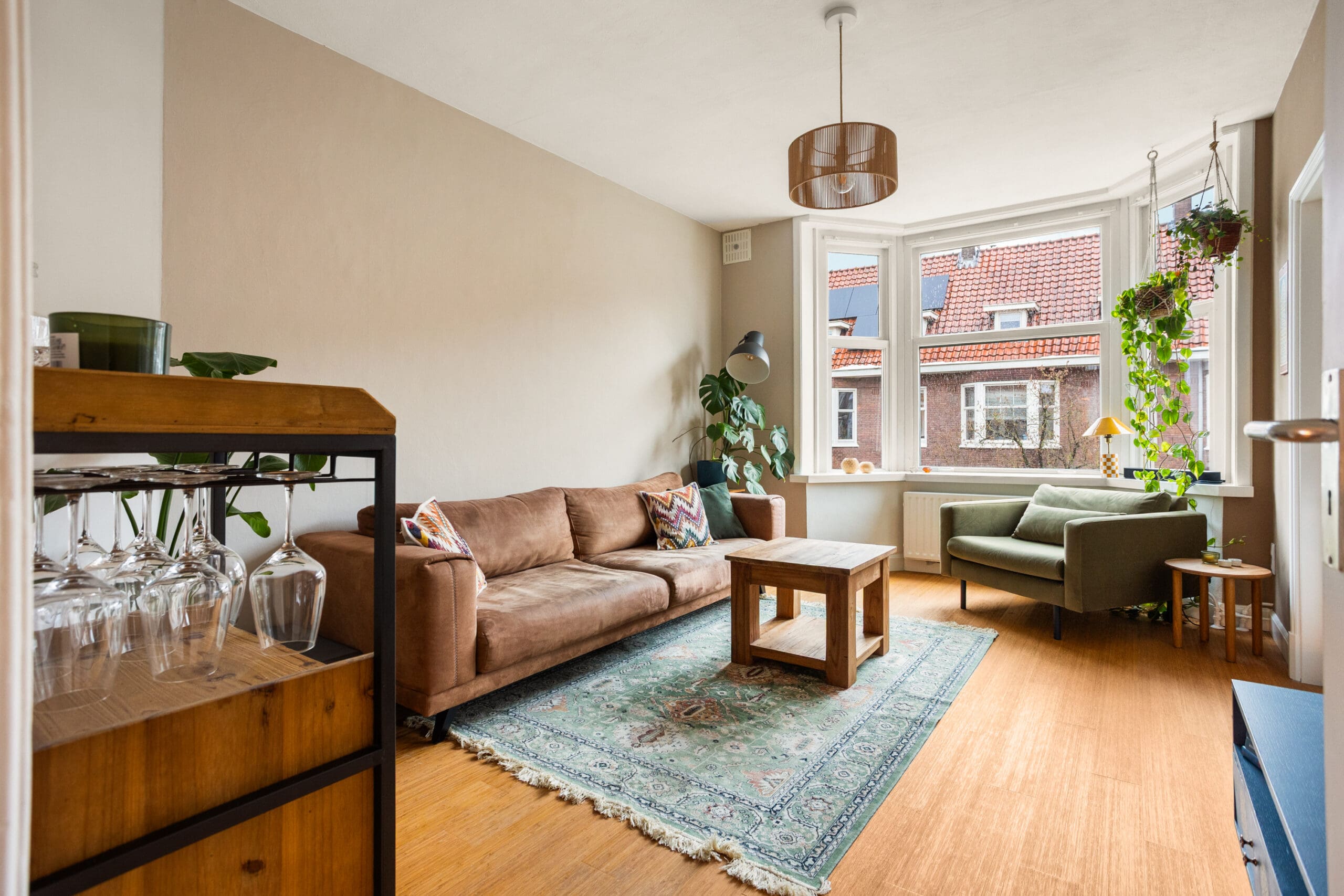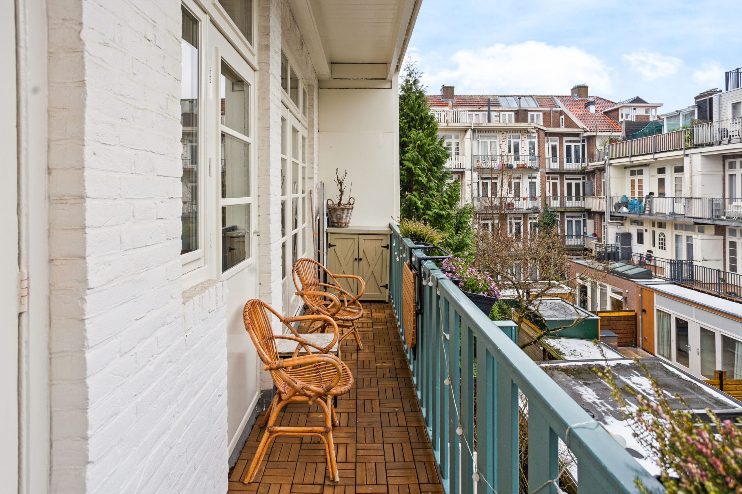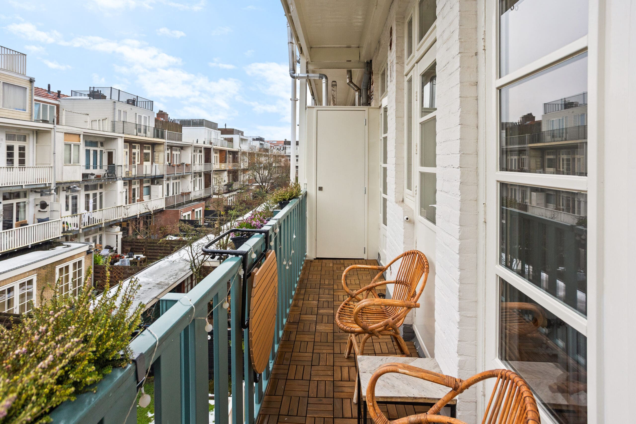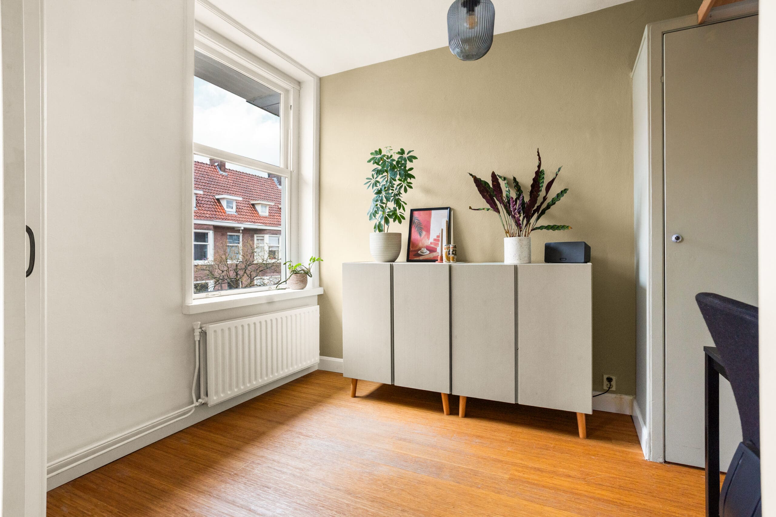 A beautiful bamboo floor runs throughout the apartment, and all window frames are fitted with HR++double glazing. The central heating boiler is neatly concealed in an insulated cabinet on the balcony. This cabinet is equipped with a frost protection heater.