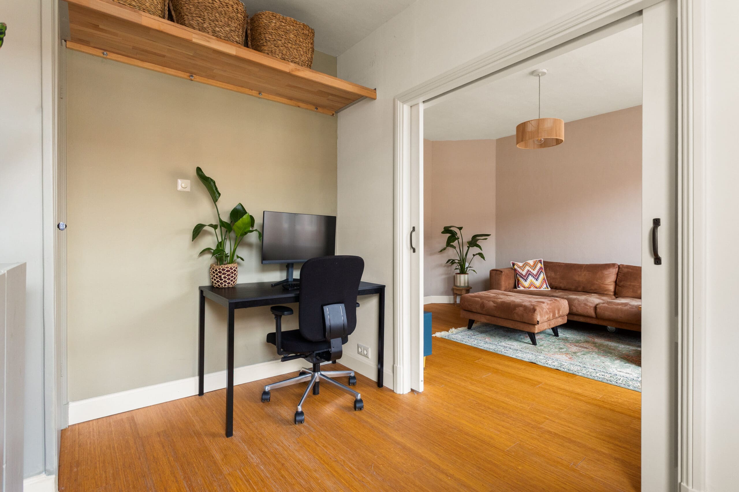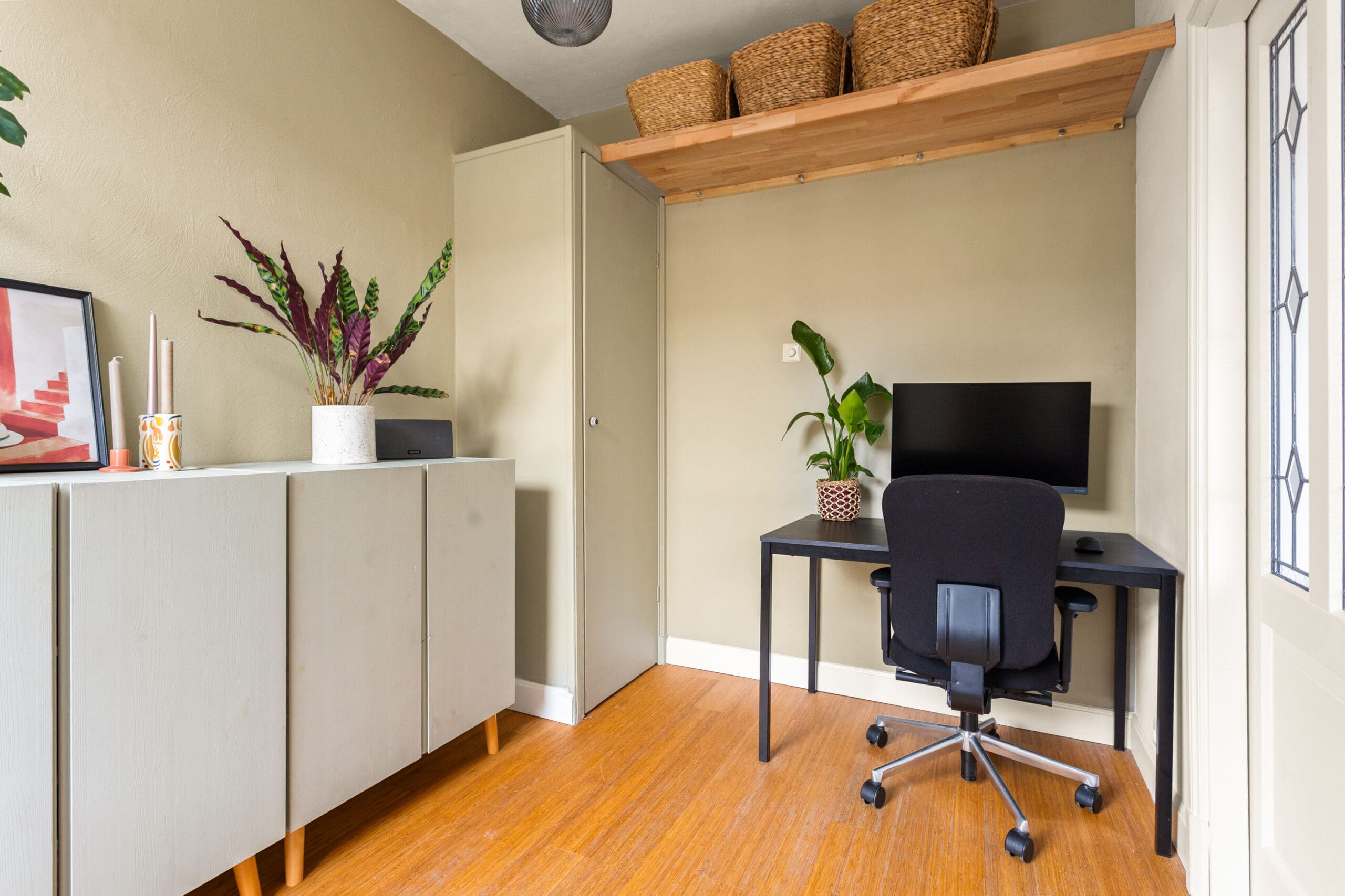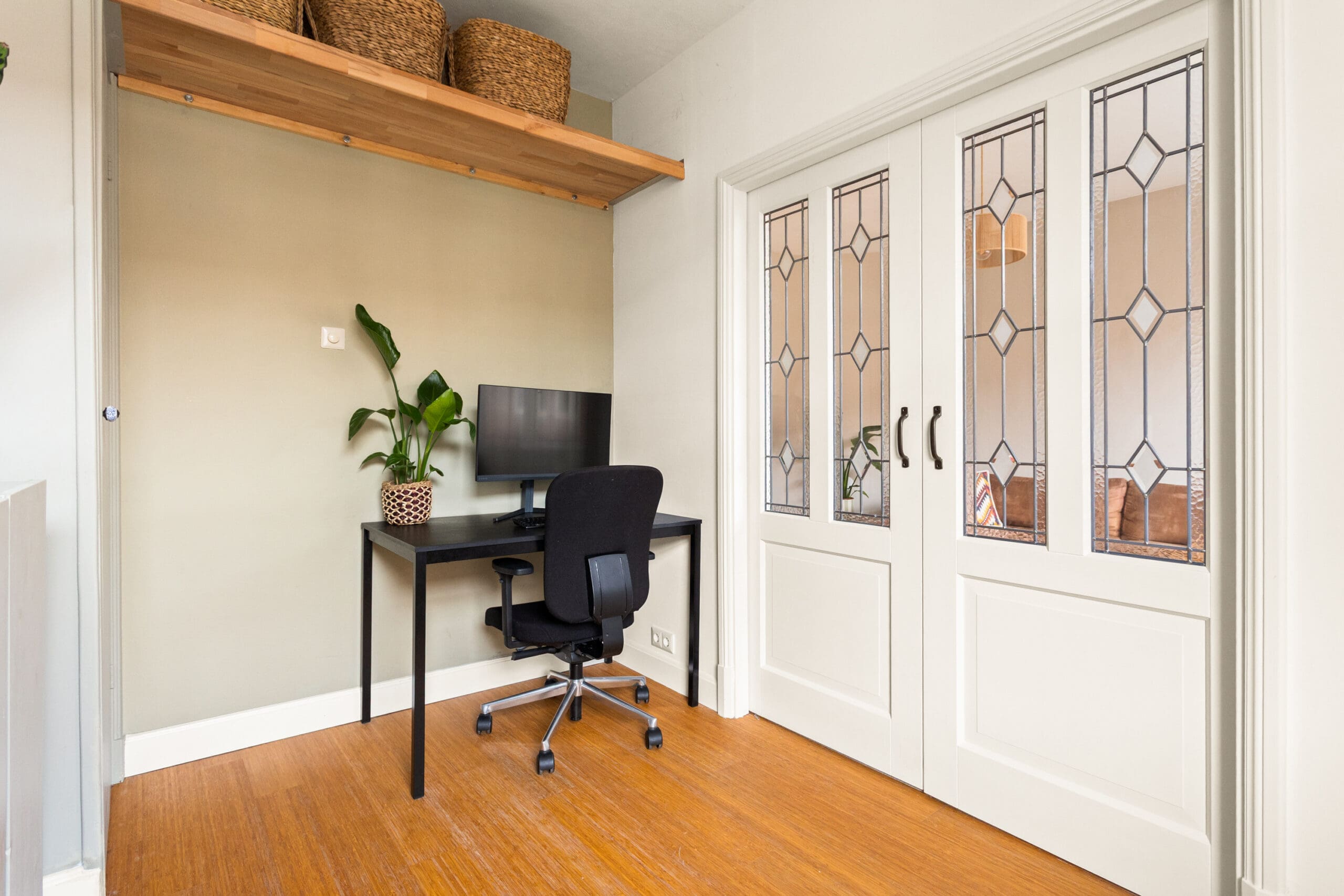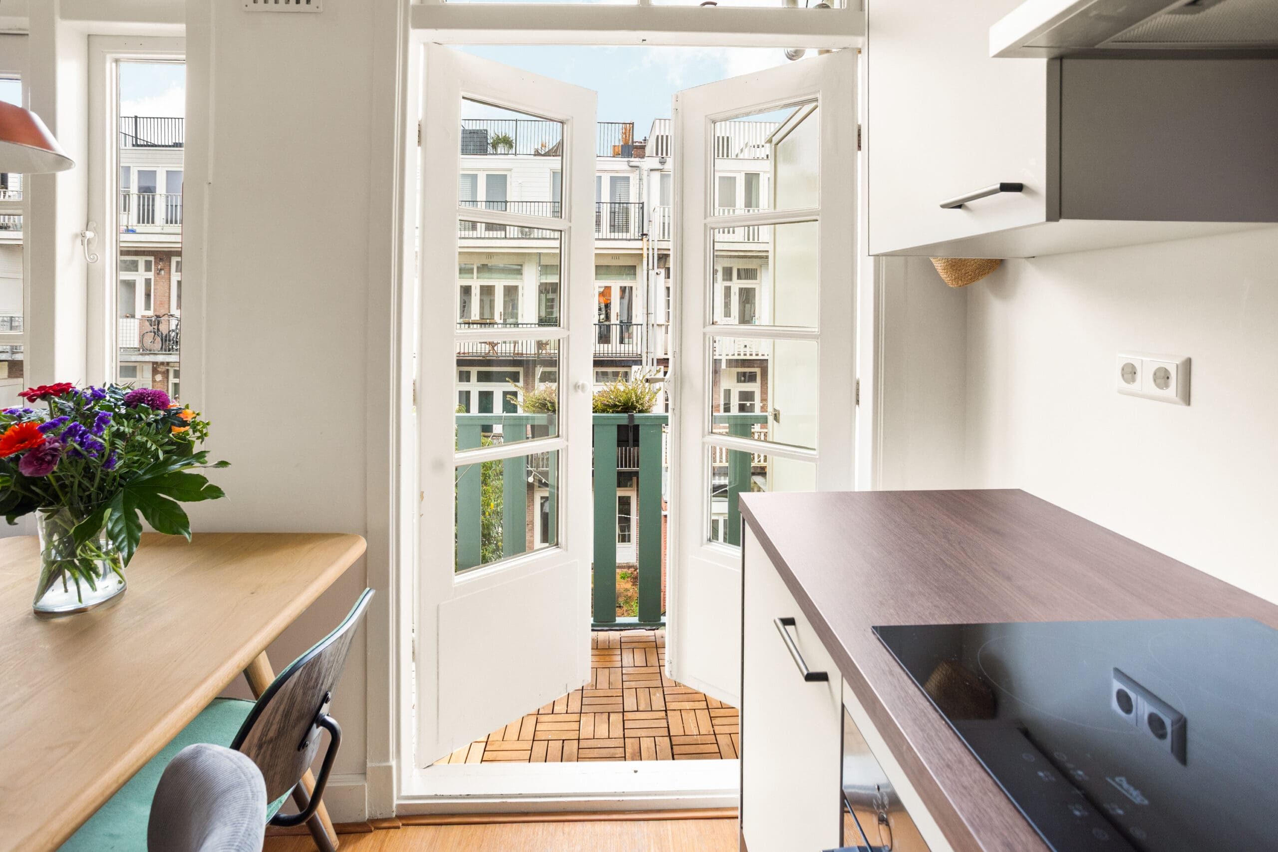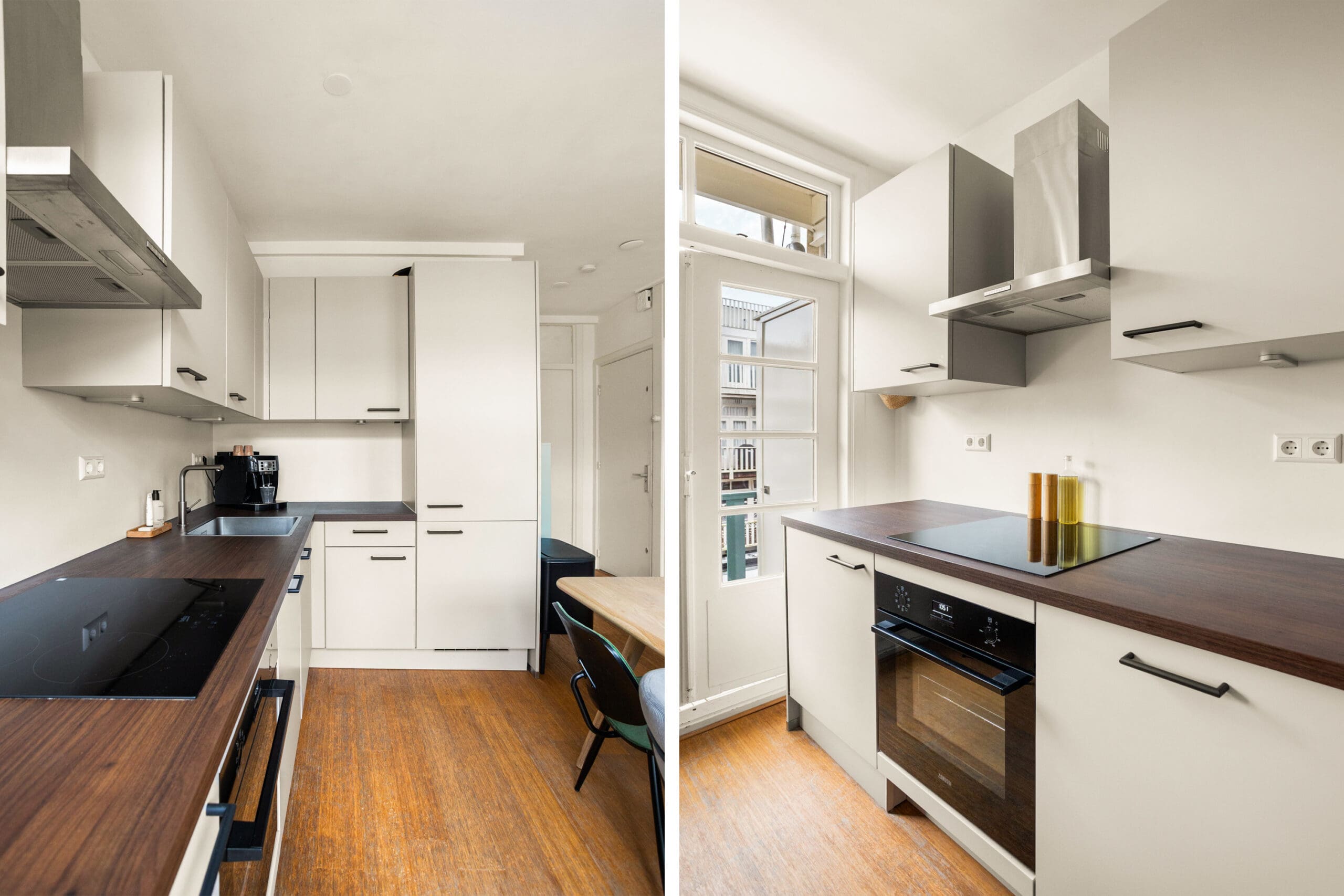 A beautiful bamboo floor runs throughout the apartment, and all window frames are fitted with HR++double glazing. The central heating boiler is neatly concealed in an insulated cabinet on the balcony. This cabinet is equipped with a frost protection heater.